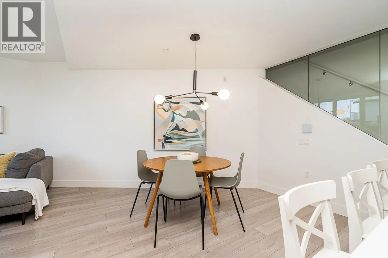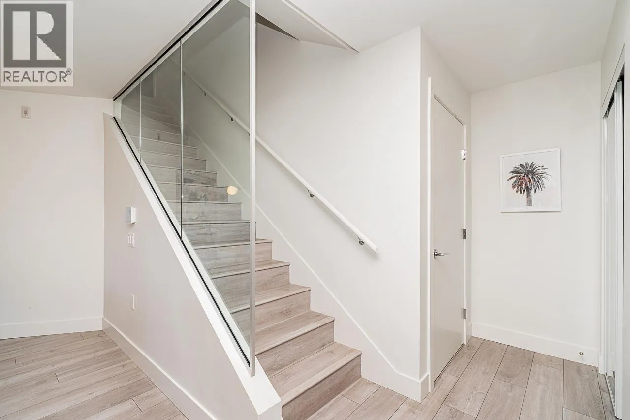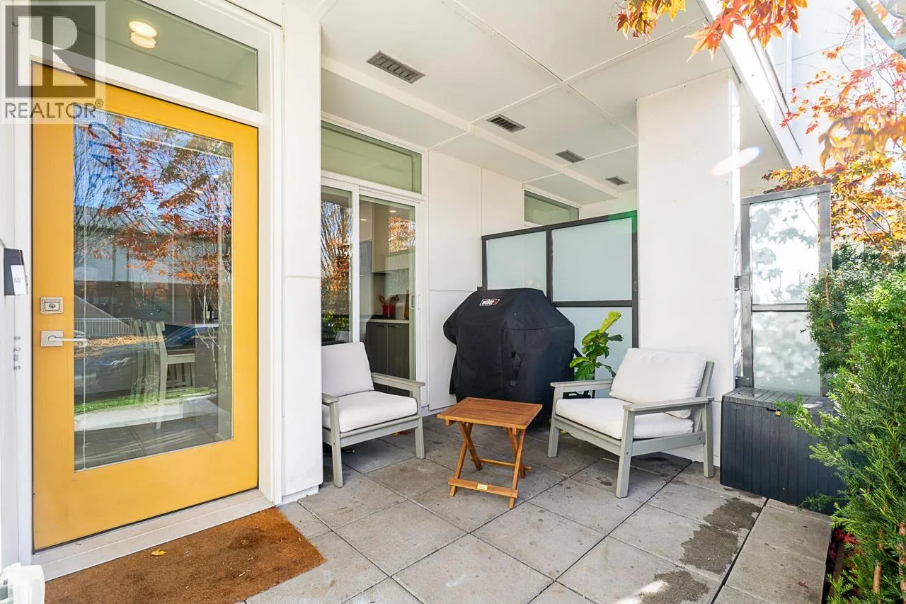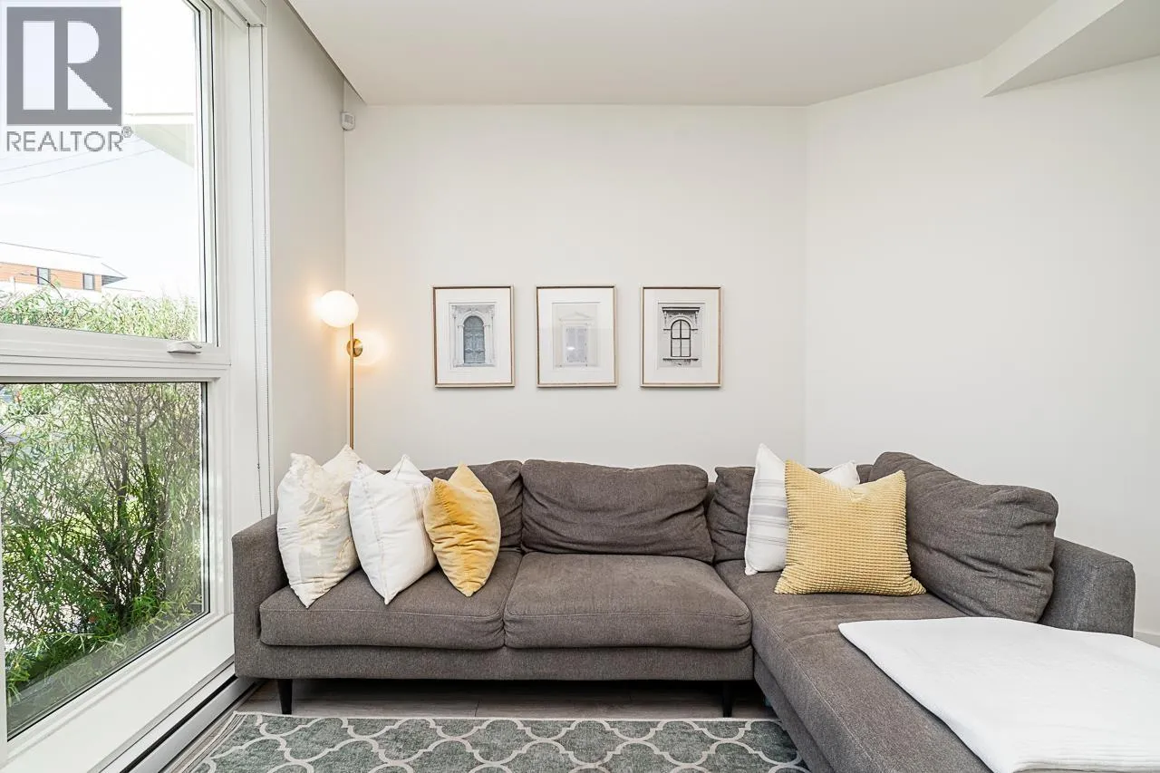 This gorgeous townhome offers a private walk-up entry, 2-beds + den, 3-baths, & 1,102 sqft of sophisticated interior space. Main level boasts a thoughtfully designed open-concept layout with wide-plank flooring throughout; powder rm; kitchen with luxury appliances, including gas range, excellent cabinet & counter space, island with breakfast bar, & sliding door access to the private covered front patio that offers year-round space for al-fresco entertaining. Floor-to-ceiling windows in the living rm offer W-exposure & welcome in abundant natural light. Upper level features primary bed with ensuite; secondary bed & bath; den/potential 3rd bed; &, conveniently located laundry. Includes U/G parking, storage locker, & balance of new home warranty. (id:27476)