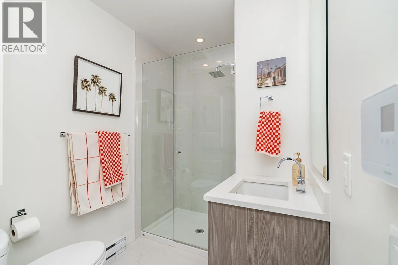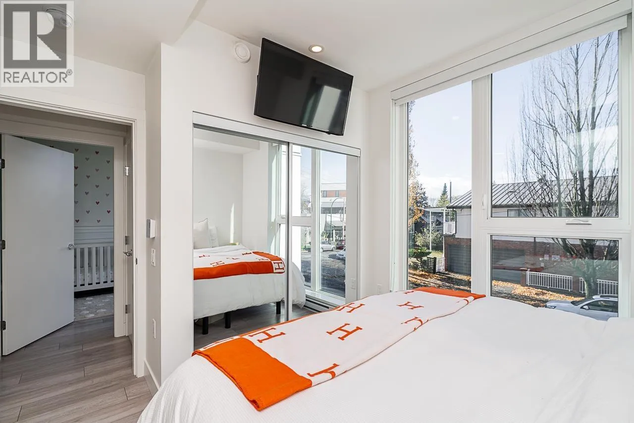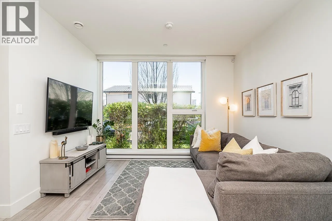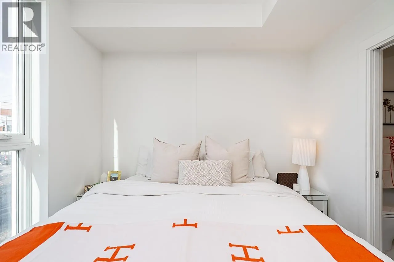 This gorgeous townhome offers a private walk-up entry, 2-beds + den, 3-baths, & 1,102 sqft of sophisticated interior space. Main level boasts a thoughtfully designed open-concept layout with wide-plank flooring throughout; powder rm; kitchen with luxury appliances, including gas range, excellent cabinet & counter space, island with breakfast bar, & sliding door access to the private covered front patio that offers year-round space for al-fresco entertaining. Floor-to-ceiling windows in the living rm offer W-exposure & welcome in abundant natural light. Upper level features primary bed with ensuite; secondary bed & bath; den/potential 3rd bed; &, conveniently located laundry. Includes U/G parking, storage locker, & balance of new home warranty. (id:27476)