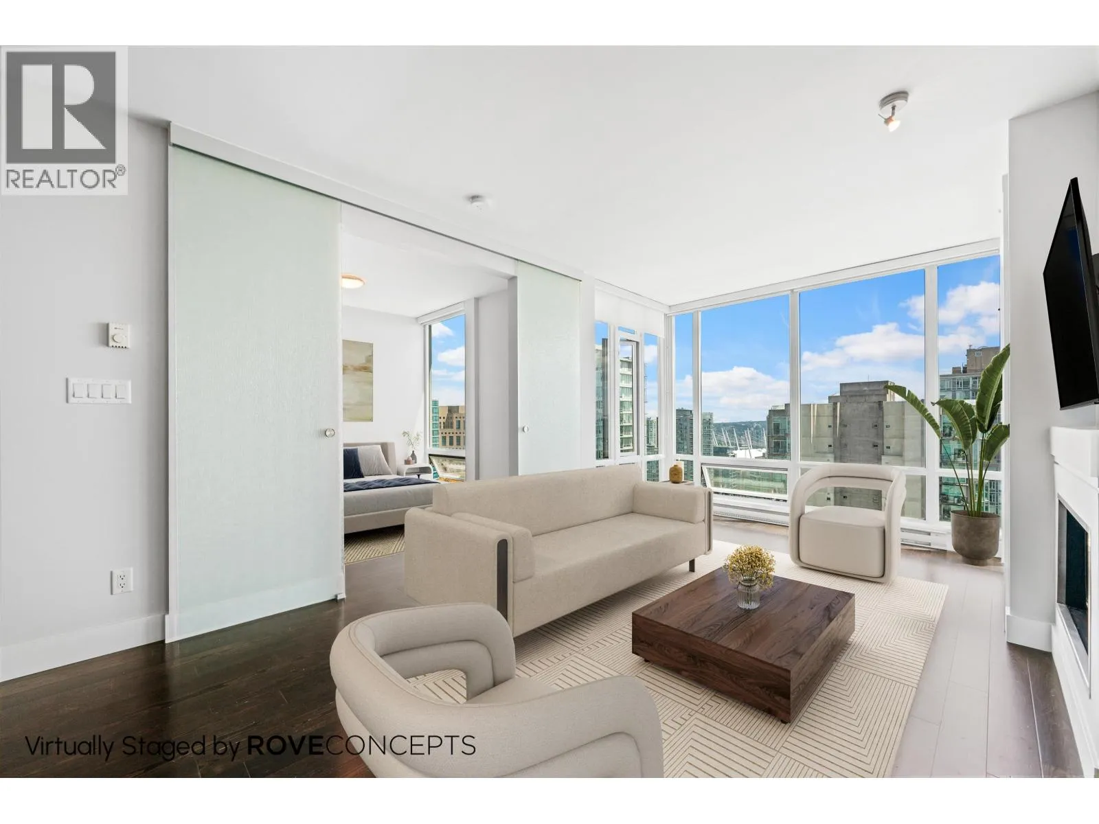 Welcome to the exclusive Dolce Private Collection-a sophisticated residence in the heart of Vancouver's vibrant downtown core. This expansive 2-bedroom, 2-bathroom home offers 1,082 sqft of open-concept living, a versatile solarium and flex space that easily functions as a second office or in-suite storage. Enjoy sweeping city and water views, complete with a cozy gas fireplace. The gourmet kitchen stands out with sleek stainless steel countertops and full-height backsplash, as well as a seamless integrated sink. A bold and modern look. The whole home has been freshly painted. 1 secure parking stall and 1 storage locker. Resort-style amenities include gym, steam room, jacuzzi, party lounge, and 24/7 concierge -all just steps from world-class dining, shopping, and entertainment in Yaletown. (id:27476)