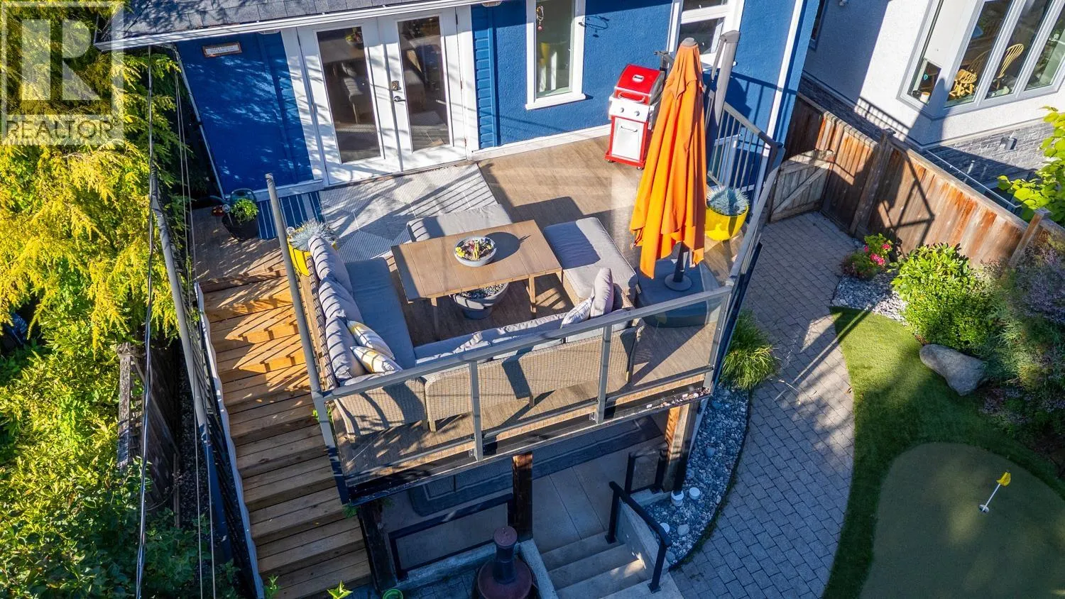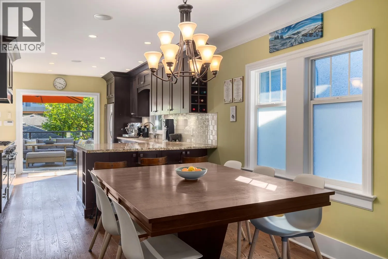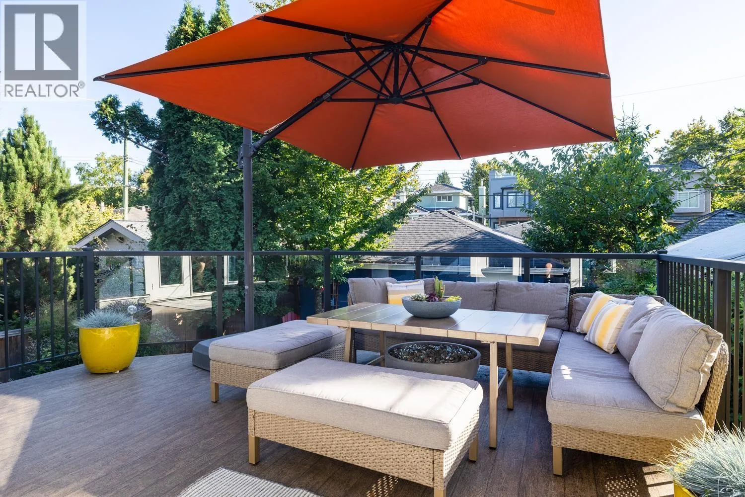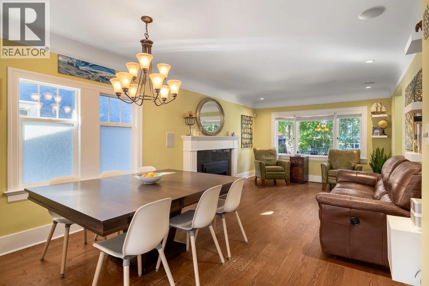 Welcome to this meticulously & fully renovated home - w/permits 2011, where modern luxury meets classic charm in a sought-after Kitsilano. This 5 bed home boasts over 1900sqft of spacious & functional layout w/year-round comfort of A/C. Main level features an open living/dining area w/unique cove ceiling, custom mantel, & gas fireplace. Stunning chef´s kitchen was renovated w/granite countertop, s/s appliances with a top-of-the-line Italian Bertazzoni stove. Entertain on the oversized south facing deck. 2 beds on the main level & renovated bathroom. Lower level w/separate entrance features 3 bedrooms, laundry/utility room and 2 baths. Backyard is a private retreat with custom putting green, covered deck area Oversized garage w/Level 2 EV charger. (id:27476)