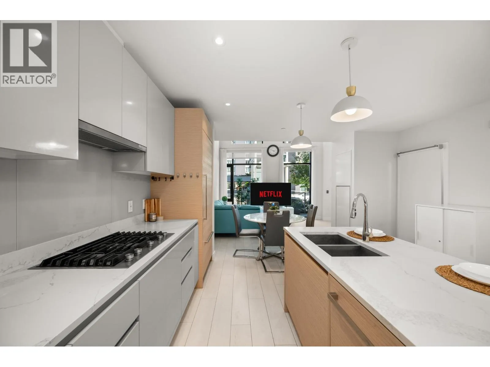 Welcome to Avalon3 in the heart of River District! This live/work 2-bed + den, 2-bath townhome offers over 1250 sqft of modern living, featuring a sleek kitchen with premium gas cooktop, built-in oven & integrated fridge. Enjoy resort-style amenities - outdoor pool, fitness centre, residents´ lounge, & a playground. Comes with two parking & a storage locker for added convenience. Located steps from Save-On-Foods, Shoppers Drug Mart, Starbucks, Everything Wine, Sushi Mura, LOCAL Public Eatery & Orangetheory Fitness, & close to parks, trails, & golf courses, it offers the perfect blend of urban convenience & outdoor lifestyle. In school catchment of Champlain Heights Elementary & Killarney Secondary, this is a rare opportunity to own in one of Vancouver´s most desirable waterfront communities. (id:27476)