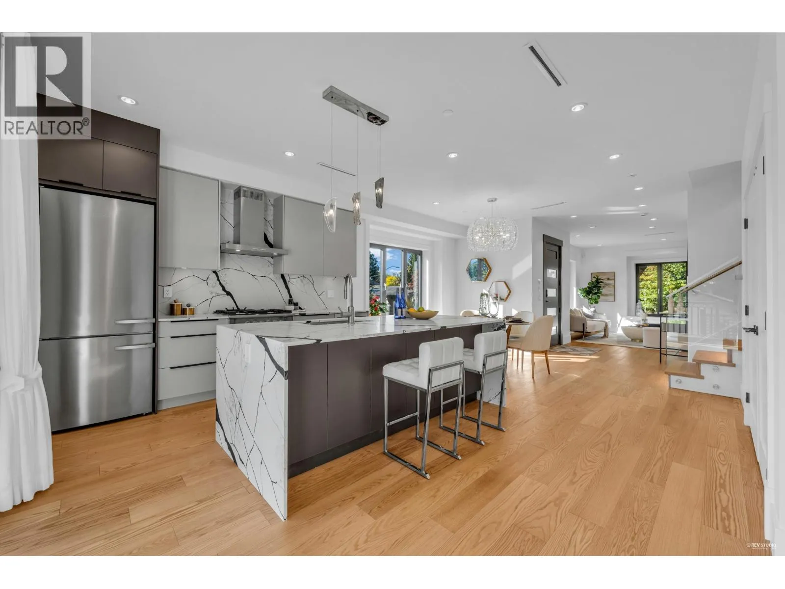 This Stunning Brand new 5 bed, 5 bath home offers over 2,100 sqft of elegant living on a bright corner lot. Designed by VictorEric. Features include white oak floors, radiant heat, A/C, HRV, security system, and EV-ready garage. Gourmet kitchen with Miele & Fisher Paykel appliances, quartz countertops, and custom millwork. Upstairs has 4 bedrooms; basement includes a legal 1-bed suite-perfect mortgage helper. Triple-pane windows, Kohler & Hansgrohe fixtures. Prime location near Arbutus Greenway, Safeway, parks, and golf. Feels like a Luxurious house with beautiful front garden and back private yard. Must see! open for realtors, Wed Oct 29 12-2pm (id:27476)