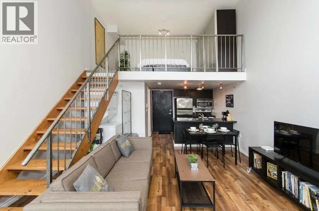 Welcome to urban sophistication at Carrall Station in one of Vancouver´s most historic neighborhoods! This striking two-level loft in the heart of Gastown offers the perfect blend of heritage charm and modern style. Soaring 16 ft ceilings and expansive windows flood the space with natural light, creating an airy, open atmosphere that´s both dramatic and inviting. The main level features a contemporary kitchen and spacious living area that opens onto a charming Juliette balcony. Upstairs, the open mezzanine bedroom overlooks the living space, offering privacy without sacrificing the loft's signature openness. This home is just steps from Gastown´s local favourite restaurants, cafes, galleries, boutiques, pubs, and access to the water. With its unique architectural details and unbeatable location, this loft is the ultimate urban sanctuary. Comes with 1 secure underground parking spot, an option for storage, and an onsite gym. Pets welcome! Call for your private appointment! (id:27476)