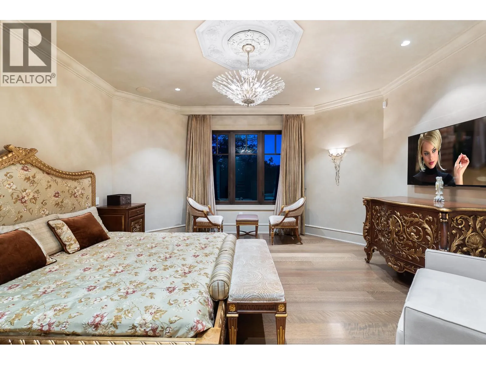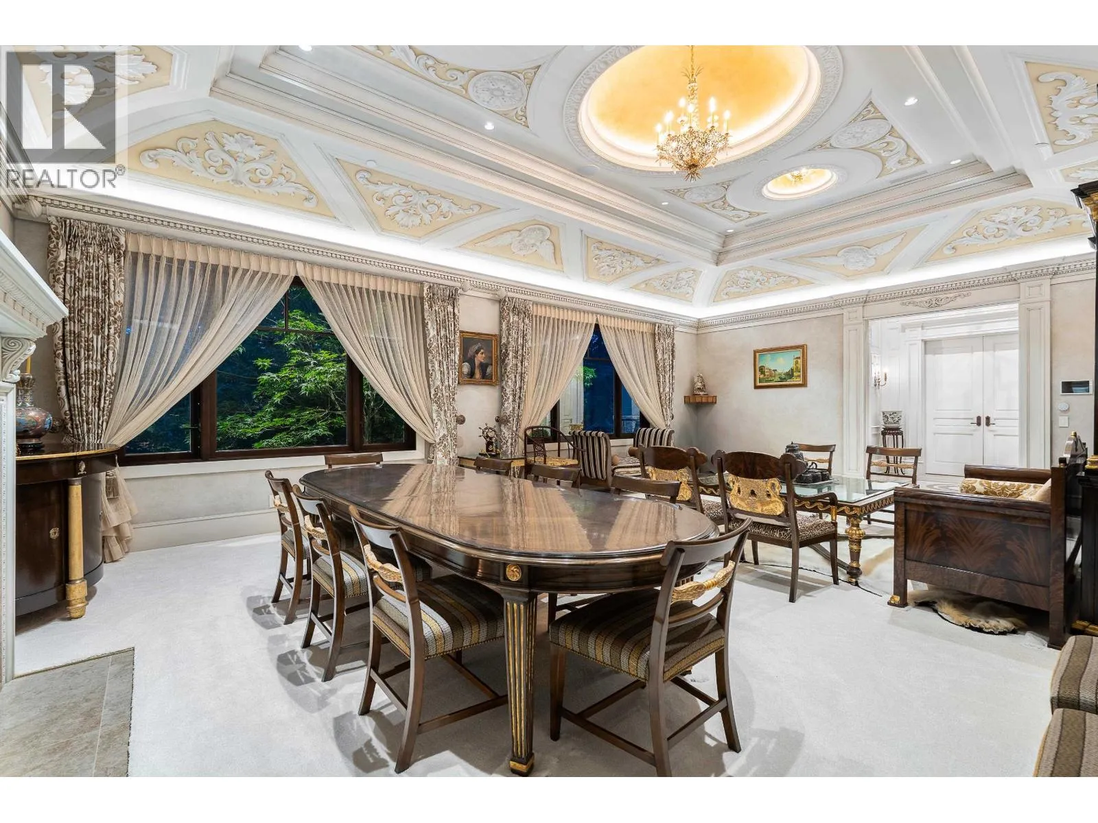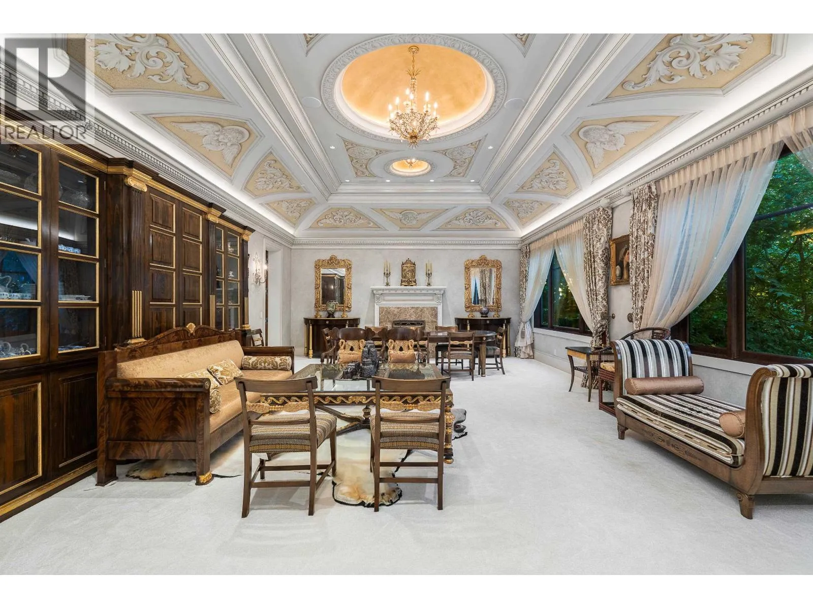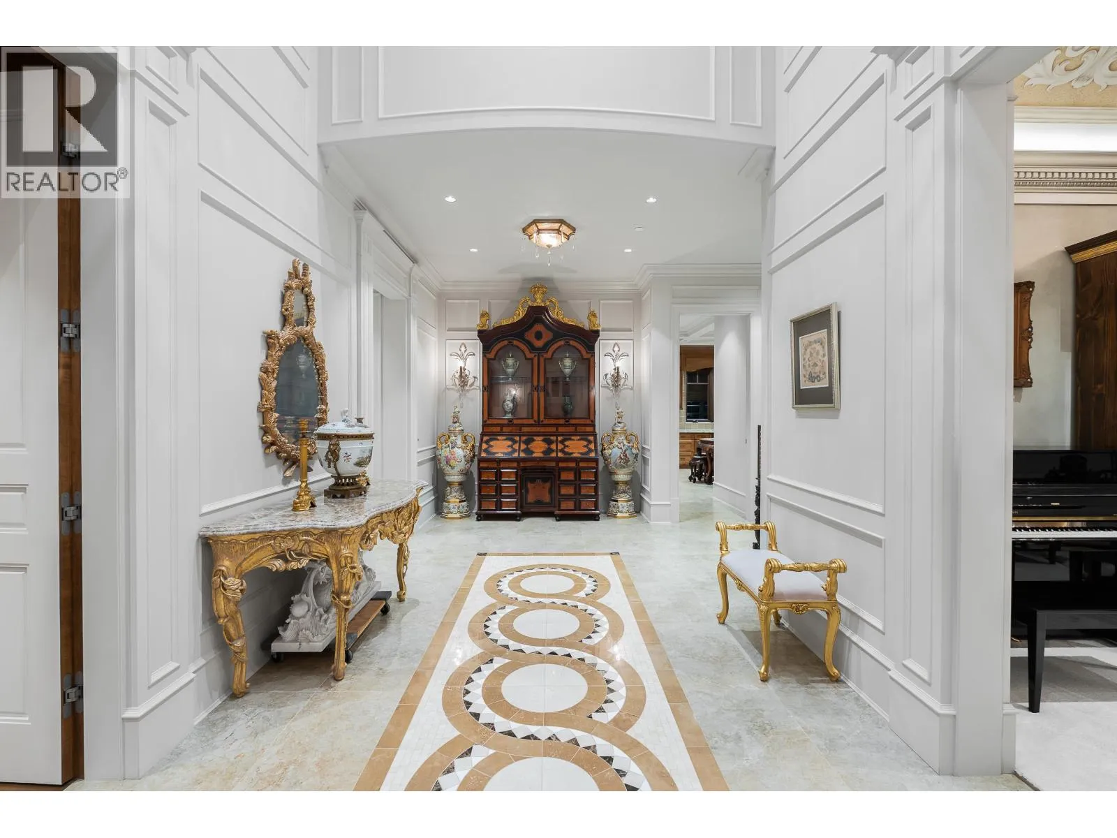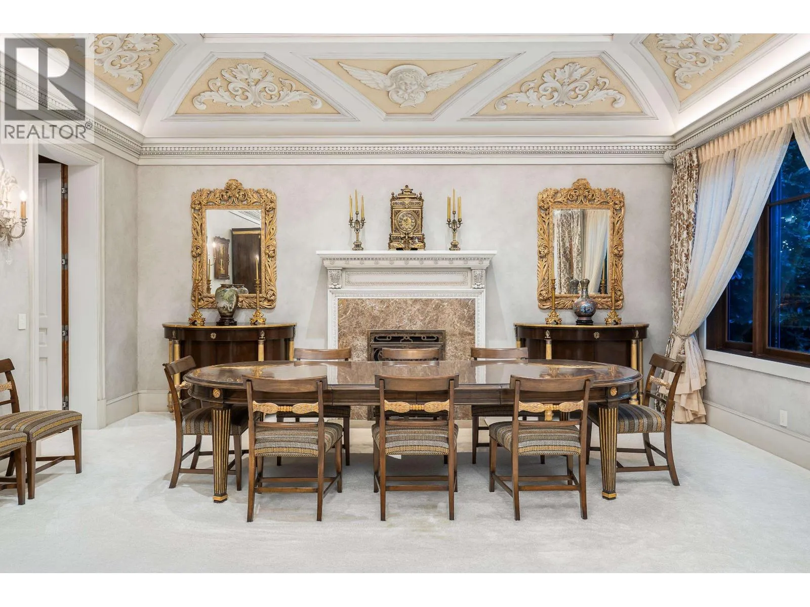 This stunning residence is privately set on a gated lot in Vancouver´s most prestigious First Shaughnessy, blending modern sophistication with timeless elegance. Sun-filled interiors captivate with ceilings hand-painted by an Italian artist, exquisite millwork, and premium finishes. An elegant reception hall leads to formal living & dining areas, a private study, and a gourmet kitchen with marble island and Miele appliances, flowing into the family room. 5 ensuite bedrooms and 8 baths span three levels, while the finished basement offers a luxurious retreat with recreation room, bar, media room, gym, and sauna/steam room. Additional highlights include an elevator, heated driveway, three-car garage, and gas-powered generator. A meticulously crafted home and a true showcase of refined luxury (id:27476)