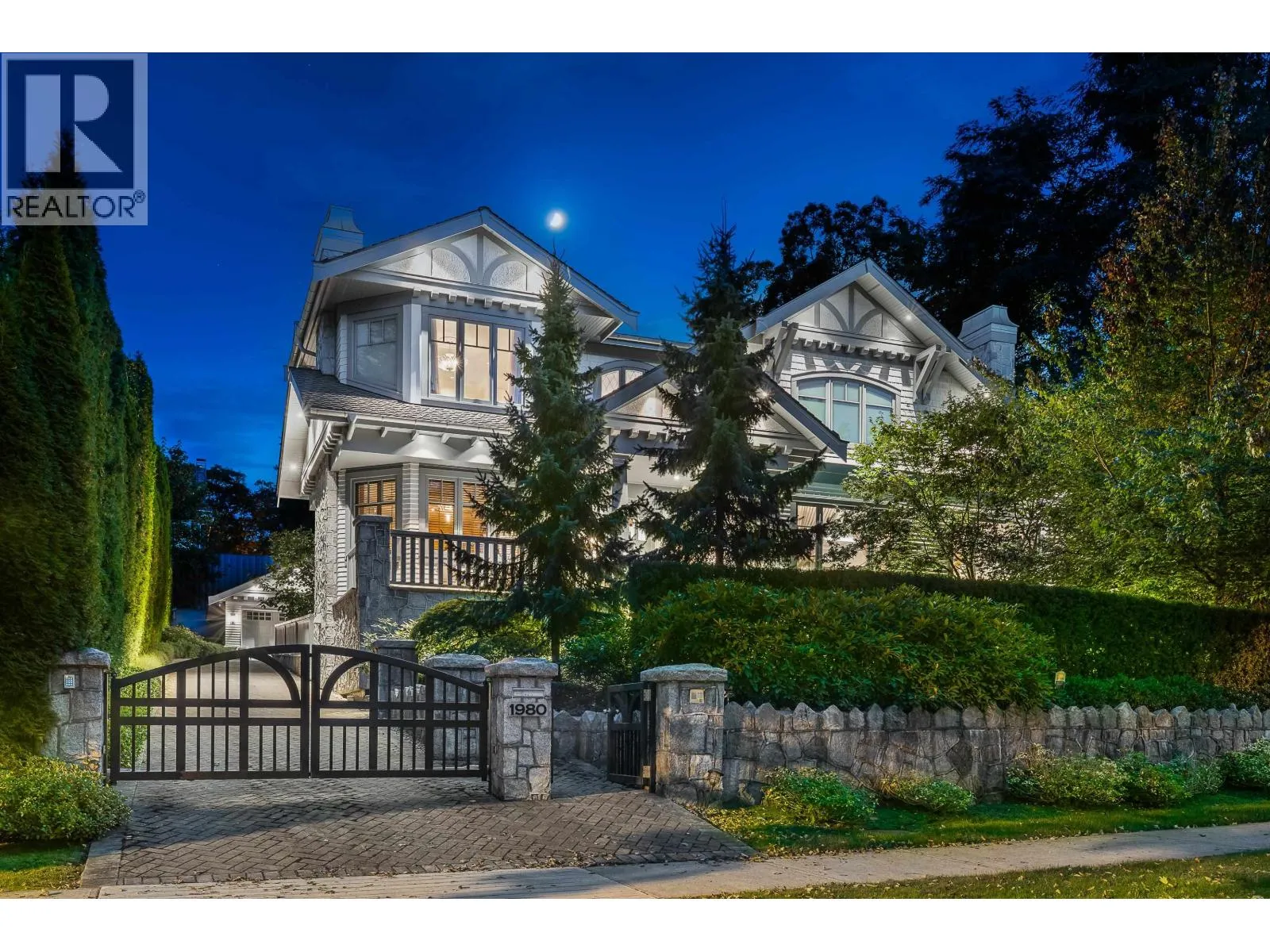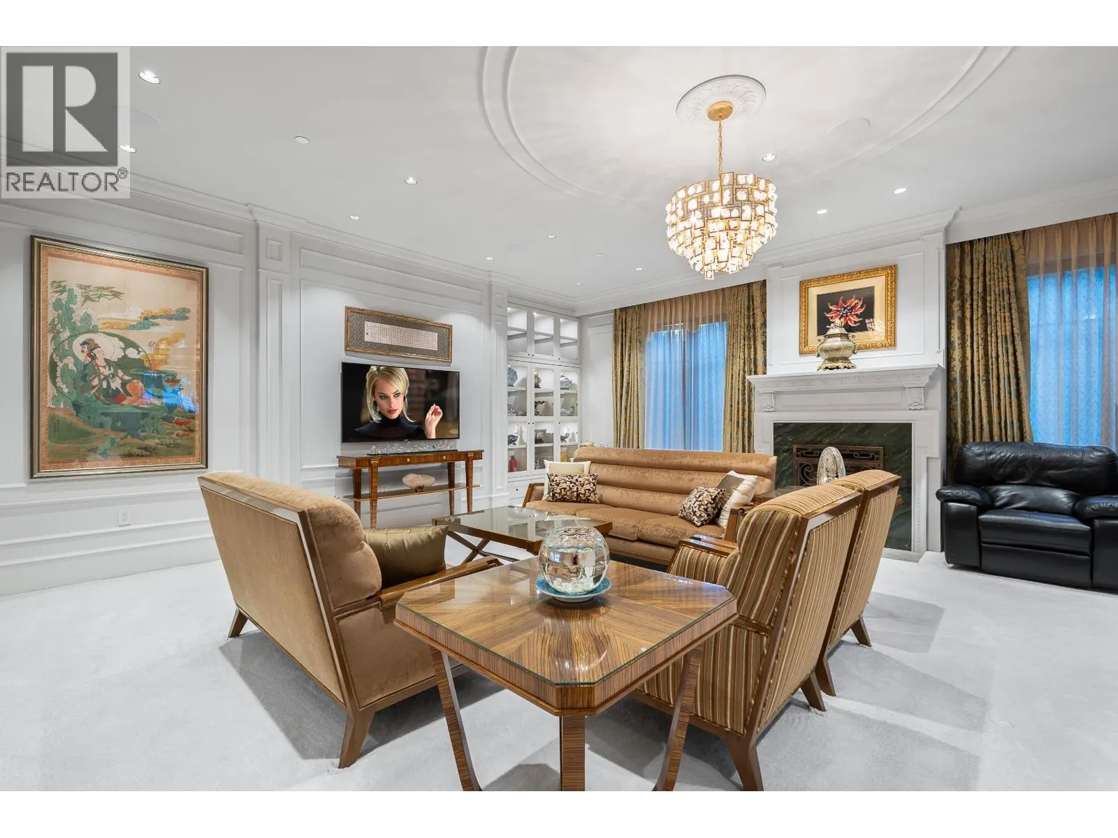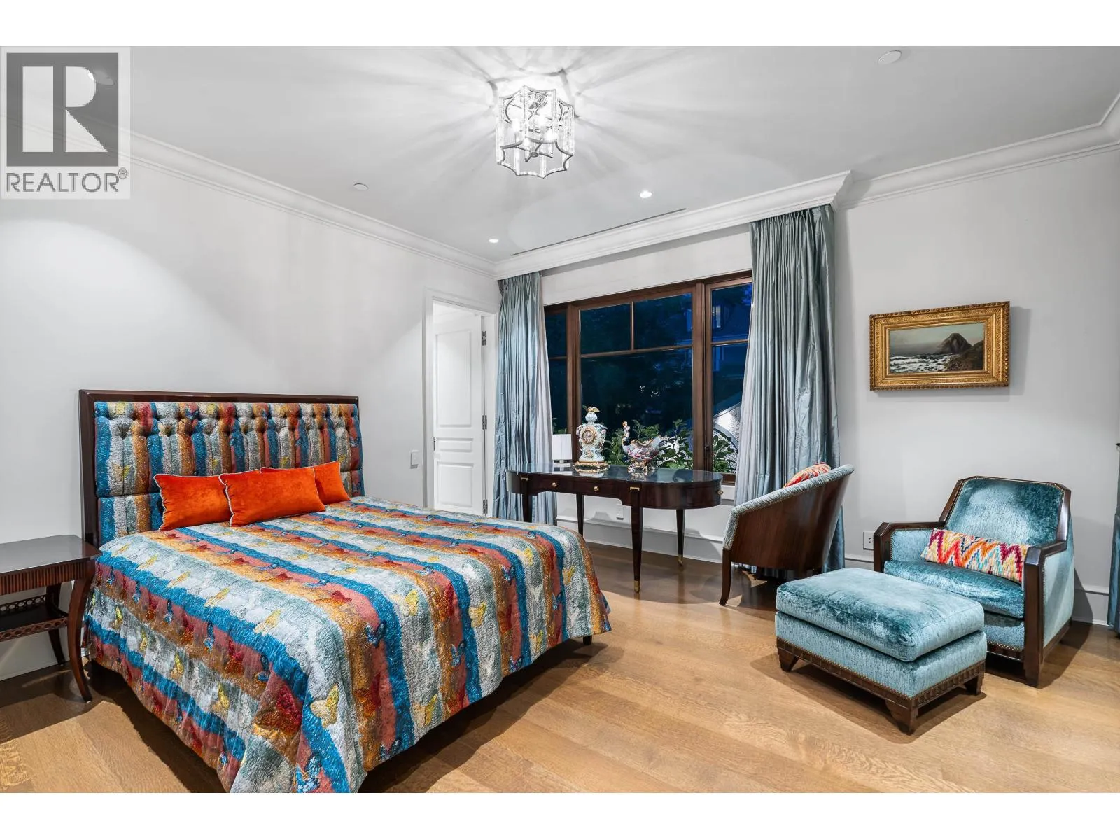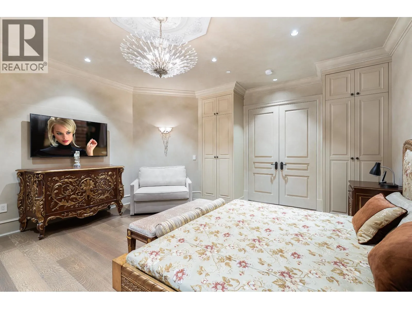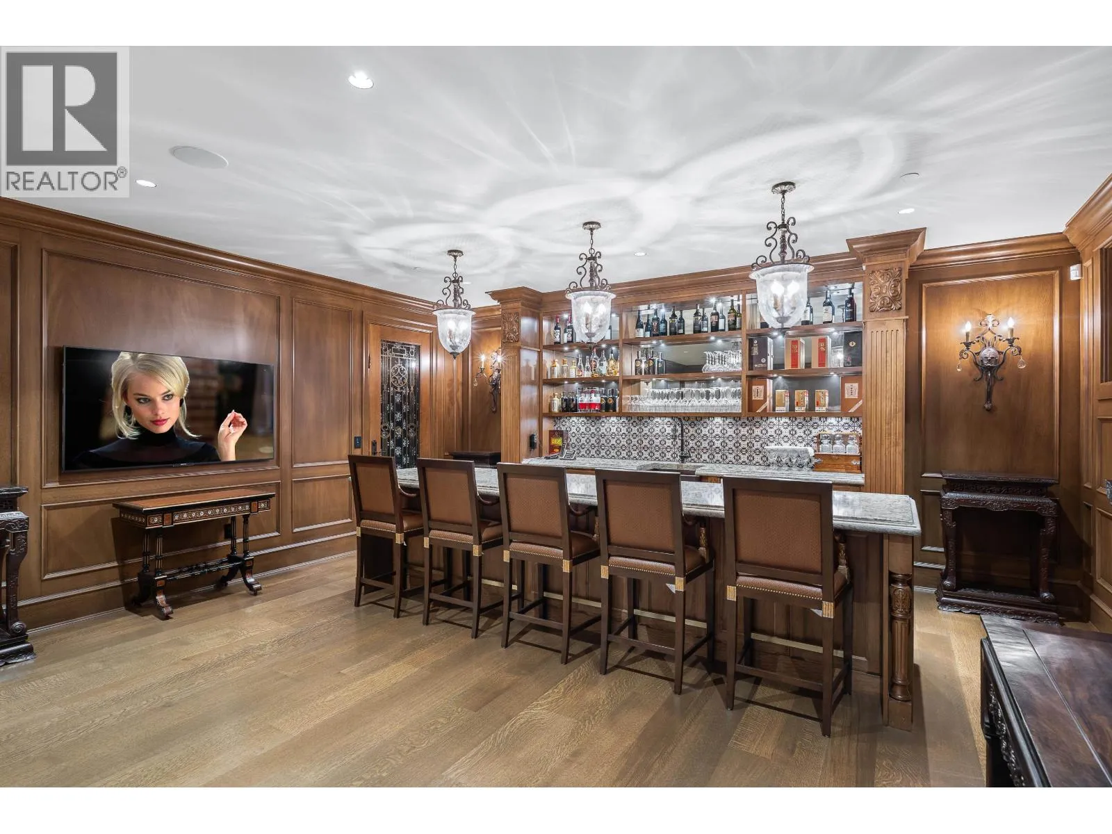 This stunning residence is privately set on a gated lot in Vancouver´s most prestigious First Shaughnessy, blending modern sophistication with timeless elegance. Sun-filled interiors captivate with ceilings hand-painted by an Italian artist, exquisite millwork, and premium finishes. An elegant reception hall leads to formal living & dining areas, a private study, and a gourmet kitchen with marble island and Miele appliances, flowing into the family room. 5 ensuite bedrooms and 8 baths span three levels, while the finished basement offers a luxurious retreat with recreation room, bar, media room, gym, and sauna/steam room. Additional highlights include an elevator, heated driveway, three-car garage, and gas-powered generator. A meticulously crafted home and a true showcase of refined luxury (id:27476)