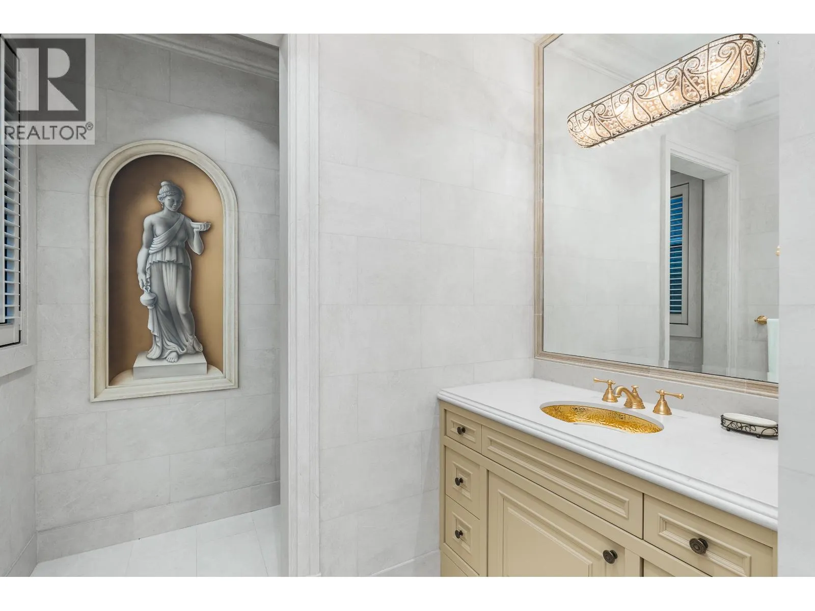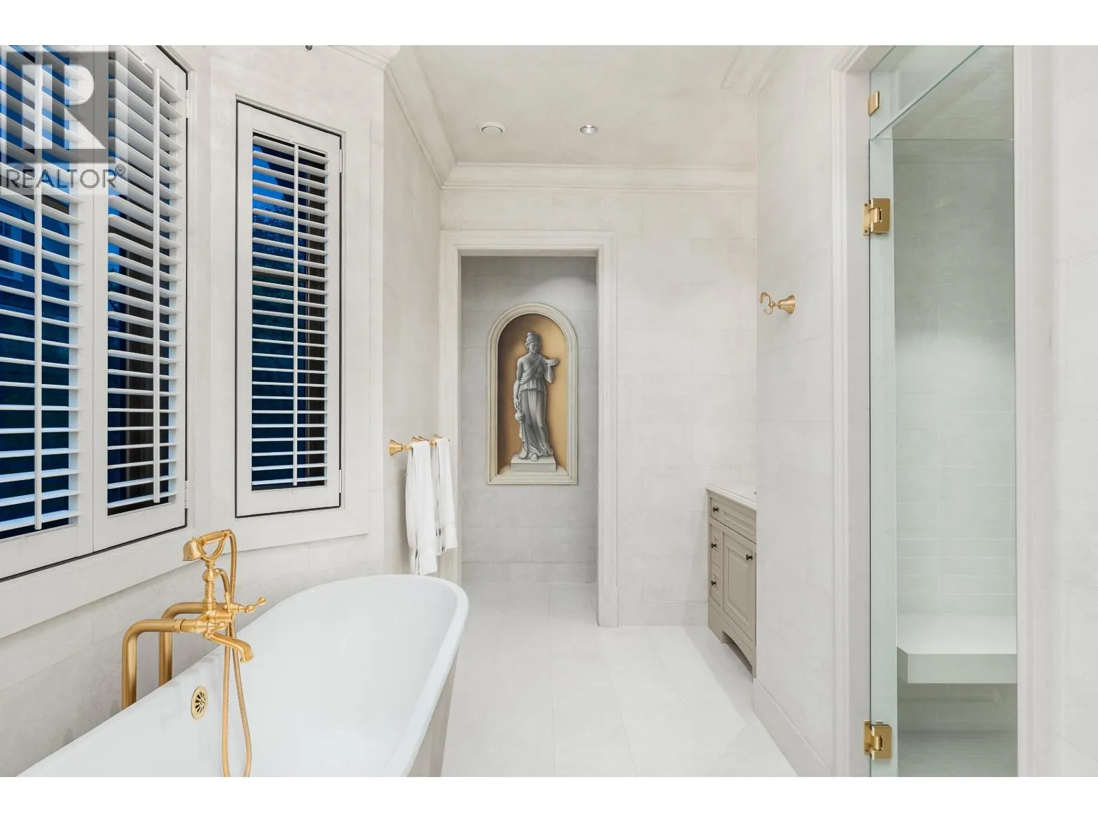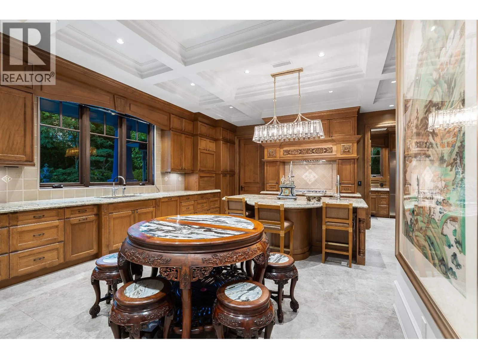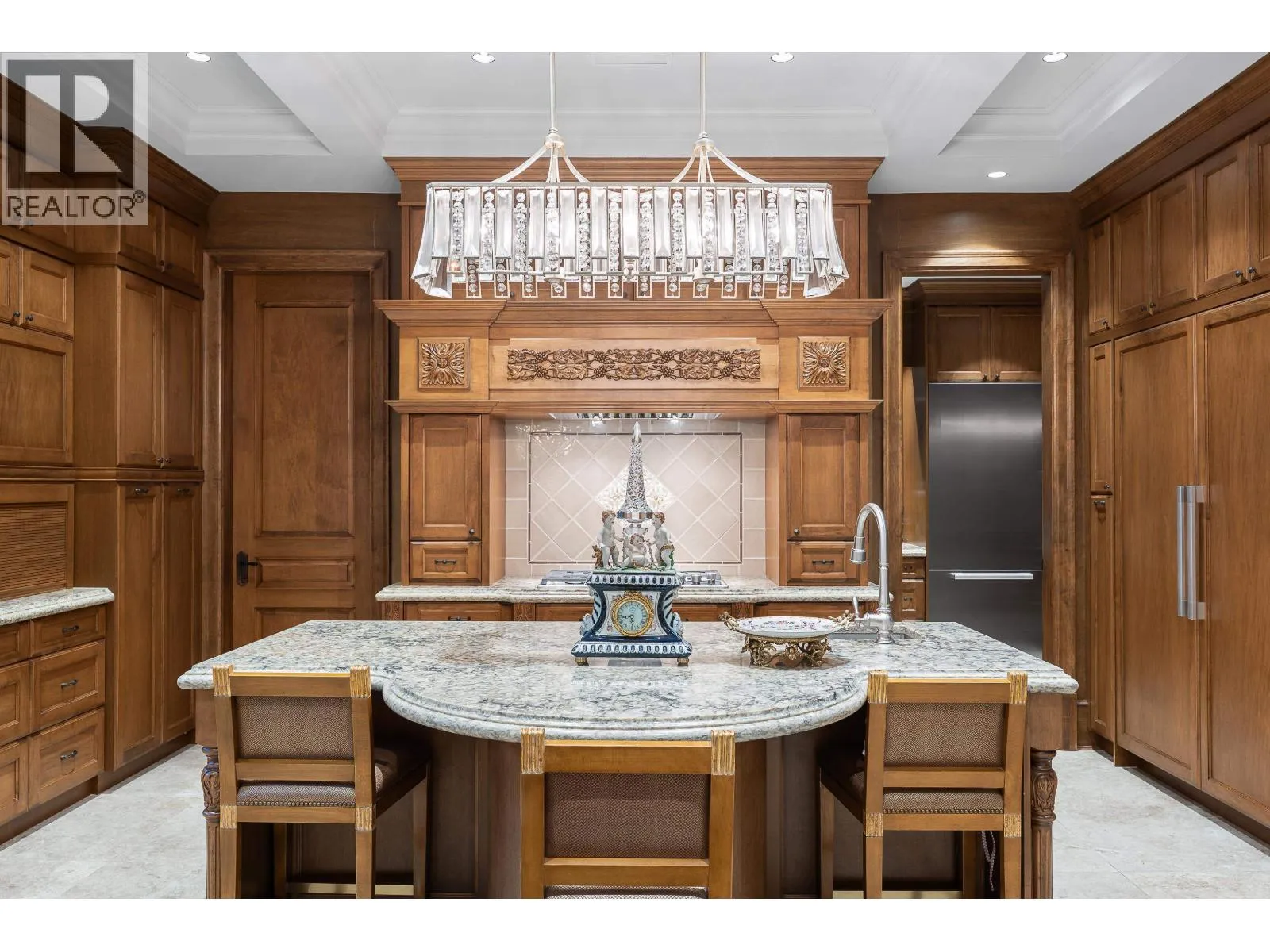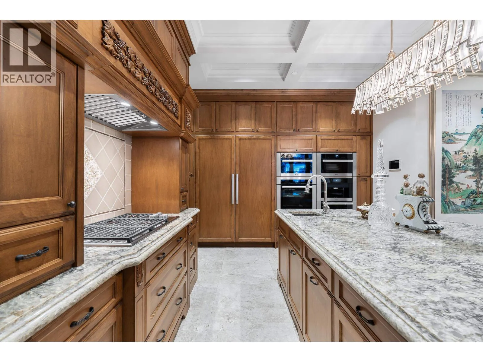 This stunning residence is privately set on a gated lot in Vancouver´s most prestigious First Shaughnessy, blending modern sophistication with timeless elegance. Sun-filled interiors captivate with ceilings hand-painted by an Italian artist, exquisite millwork, and premium finishes. An elegant reception hall leads to formal living & dining areas, a private study, and a gourmet kitchen with marble island and Miele appliances, flowing into the family room. 5 ensuite bedrooms and 8 baths span three levels, while the finished basement offers a luxurious retreat with recreation room, bar, media room, gym, and sauna/steam room. Additional highlights include an elevator, heated driveway, three-car garage, and gas-powered generator. A meticulously crafted home and a true showcase of refined luxury (id:27476)
