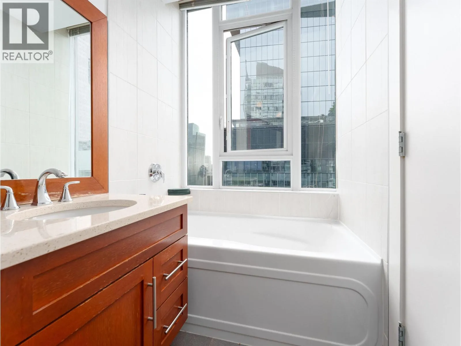The Melville, Award winning architectural icon in Coal Harbour by Amacon! Urban living experience in this spacious 2-bedroom, 2-bath apartment in the highly sought-after Coal Harbour area of Downtown Vancouver. Boasting over 1,000 sqft of beautifully designed space, this home maximizes every inch with no wasted space. The unit features a versatile solarium, which was previously could be used as a third bedroom, offering even more potential. Unparalleled amenities, includes a concierge, a large indoor/outdoor party room, and a stunning rooftop complete with a pool, jacuzzi, BBQ area, and exercise room. (id:27476)