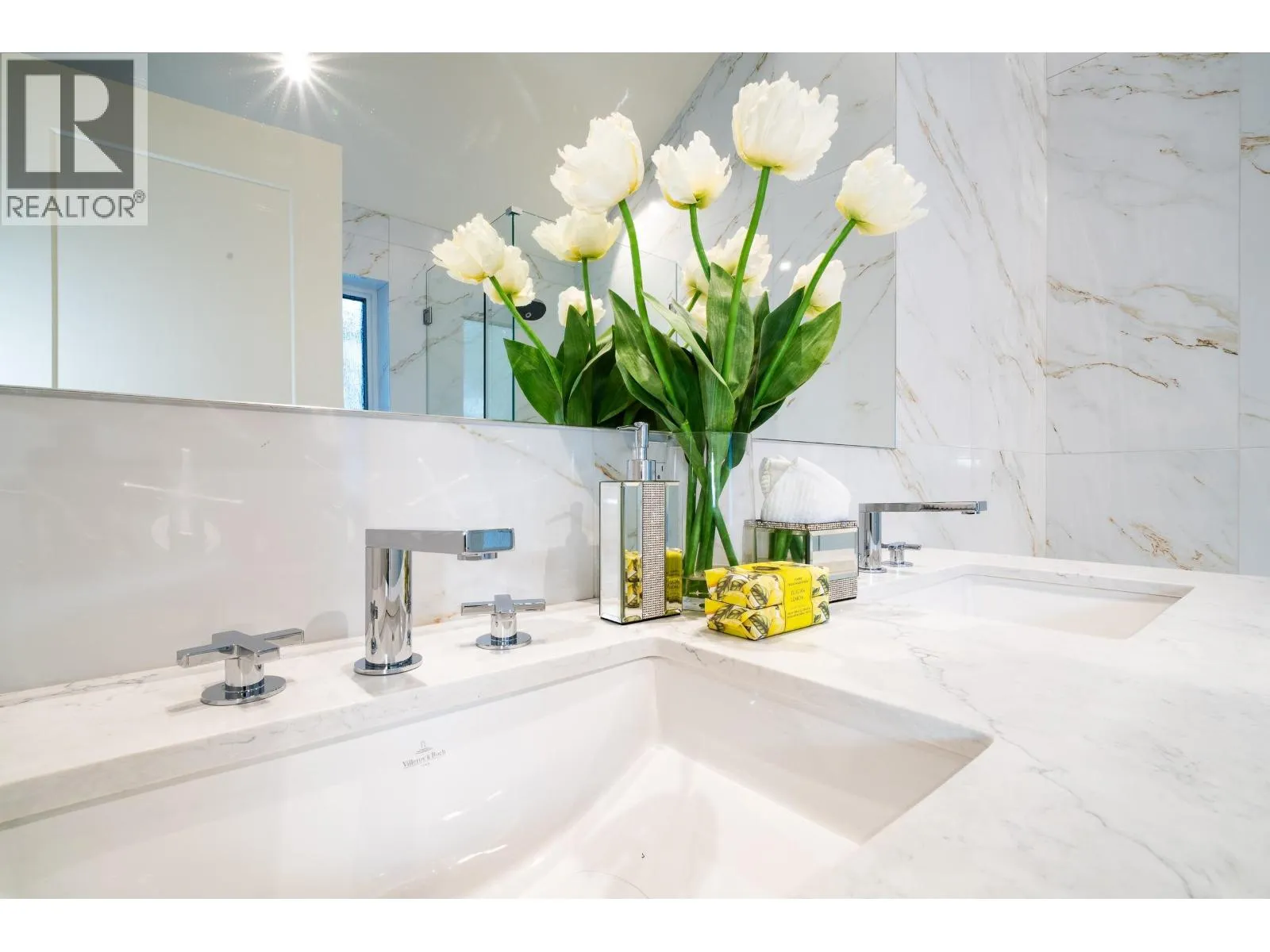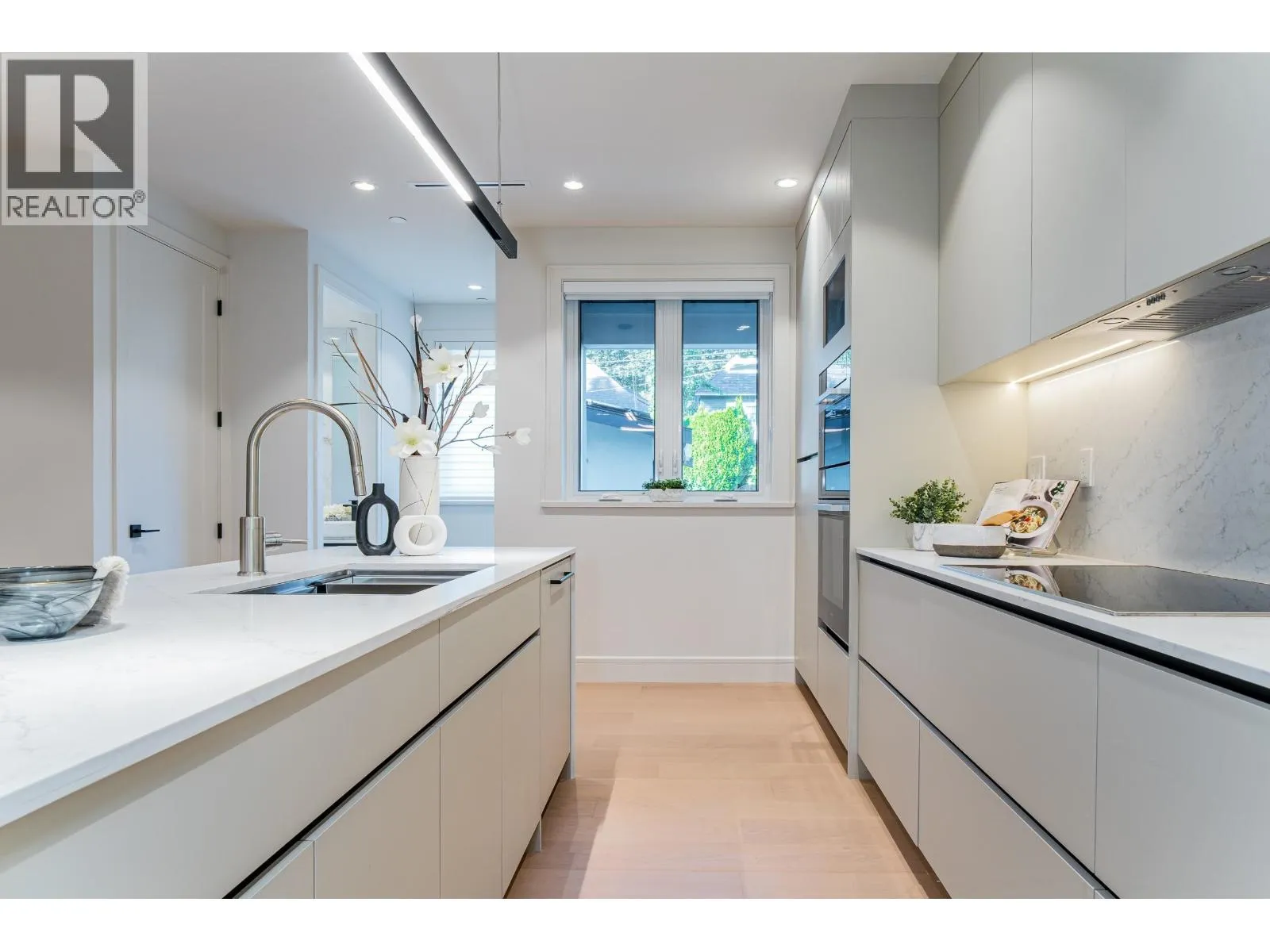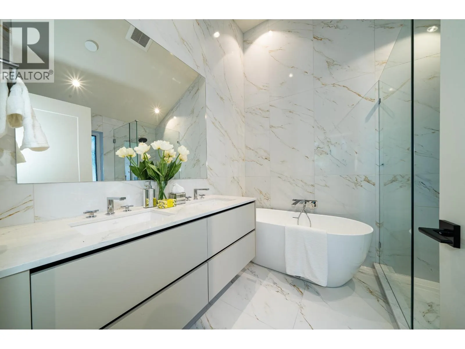Brand new 1/2 duplex in prestigious Dunbar on a quiet street, offering over 2,600 sqft of luxurious living. Features include high ceilings, gourmet kitchen with top-tier appliances, granite counters, heat pump, A/C, HRV, and security system. Net-Zero design with solar panels and triple-glazed windows ensures energy efficiency. Spacious 3 bedrooms up and one guestroom downstairs. A 2 bedroom rental suite down with separate entry can be a great mortgage helper. Close to private school St. George´s. Public school catchment: Lord Byng secondary, and QE elementary. Quality built in a prime location-Don´t miss! (id:27476)