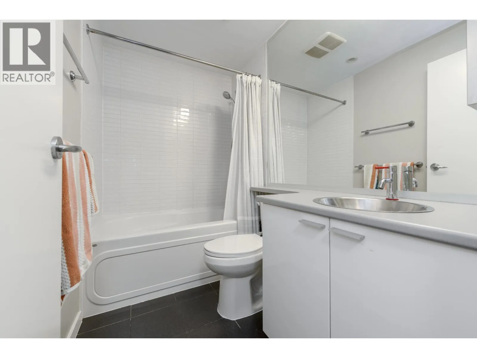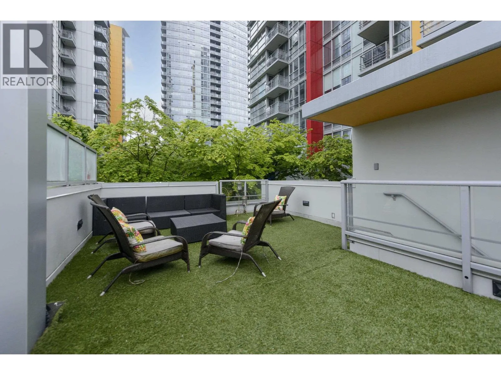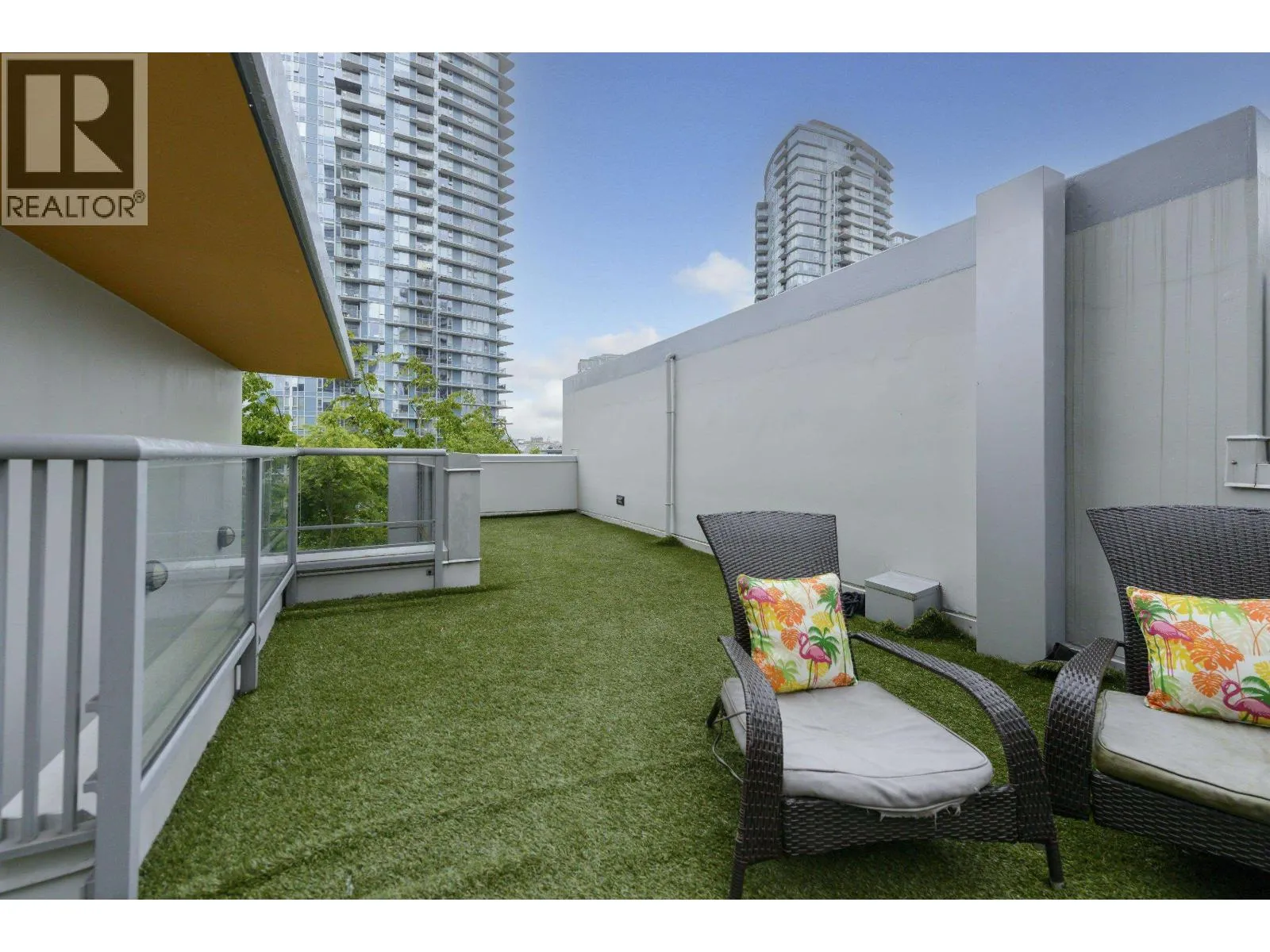 AMAZING 3 level LIVE-WORK Townhouse Loft w/rooftop terrace in the Heart of the City! This Urban oasis features a total of 725sf of outdoor living space & 845sf of interior. Open grand living w/20' ceilings, massive windows, fabulous light, City & peek-a-boo Mountain Views! L-shaped kitchen w/tons of storage and counter space. Laundry storage room, back entrance to Parking/bike room. 2nd level Primary bedroom w/quiet patio to mezzanine & loft with built in wall-bed doubles as a second bedroom. Sundeck that leads up to 3rd level, secluded HUGE ROOF terrace, great summer entertaining! Spectrum offers concierge, excellent club facilities, gym, indoor pool and more. 1/2 blk to Stadium Skytrain, trendy restaurants, BC Place & Rogers Arena, Costco. (id:27476)