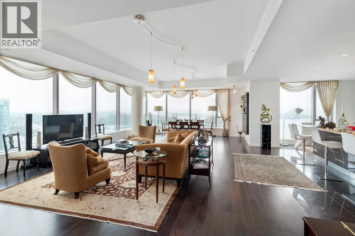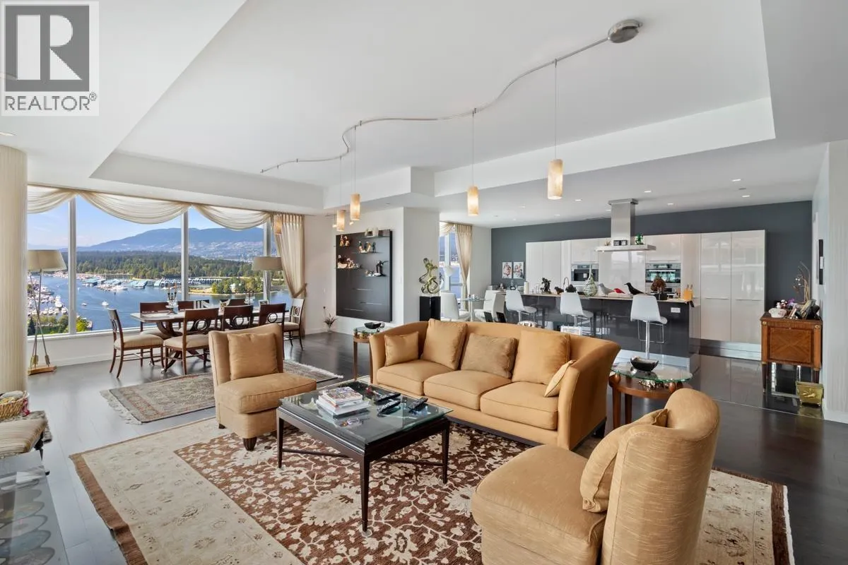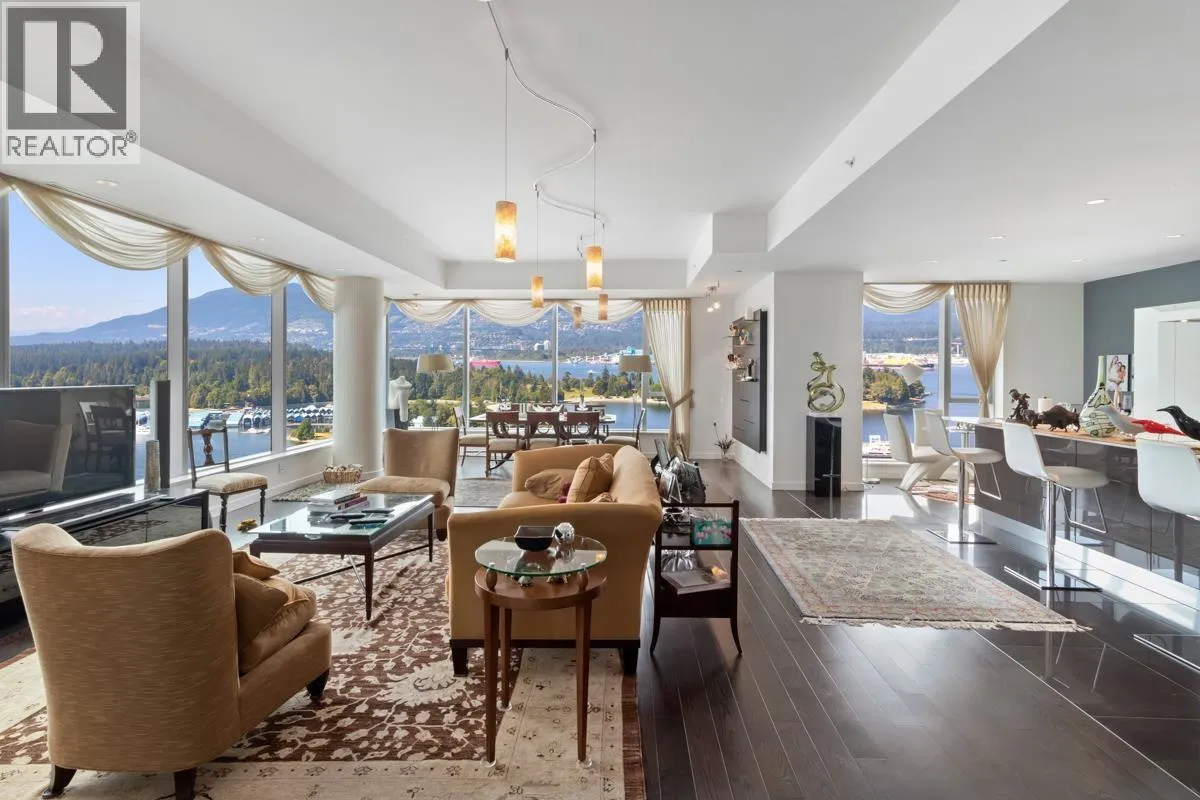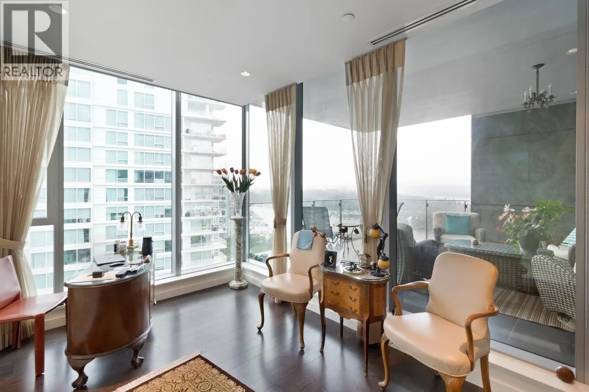 Welcome to Three Harbour Green, where world-class design meets the pinnacle of Coal Harbour living. This expansive 2 Bed + Large Office residence is a sanctuary of light, space & elegance. Panoramic windows frame sweeping vistas of Stanley Park, the harbour & North Shore Mtns - flooding interiors with natural light & luminous beauty. A bespoke Snaidero kitchen, premium appliancess & centre island anchors the open concept plan, while a large covered balcony w/gas fireplace invites year-round indulgence. 4 secure parking, 24hr concierge & resort style amenities, pool, hot tub, fitness centre, squash & lounges, complete a rare offering that is not just a home but a statement of refinement, serenity & elevated Vancouver living. Discover the full grandeur of this residence thru a private showing. (id:27476)