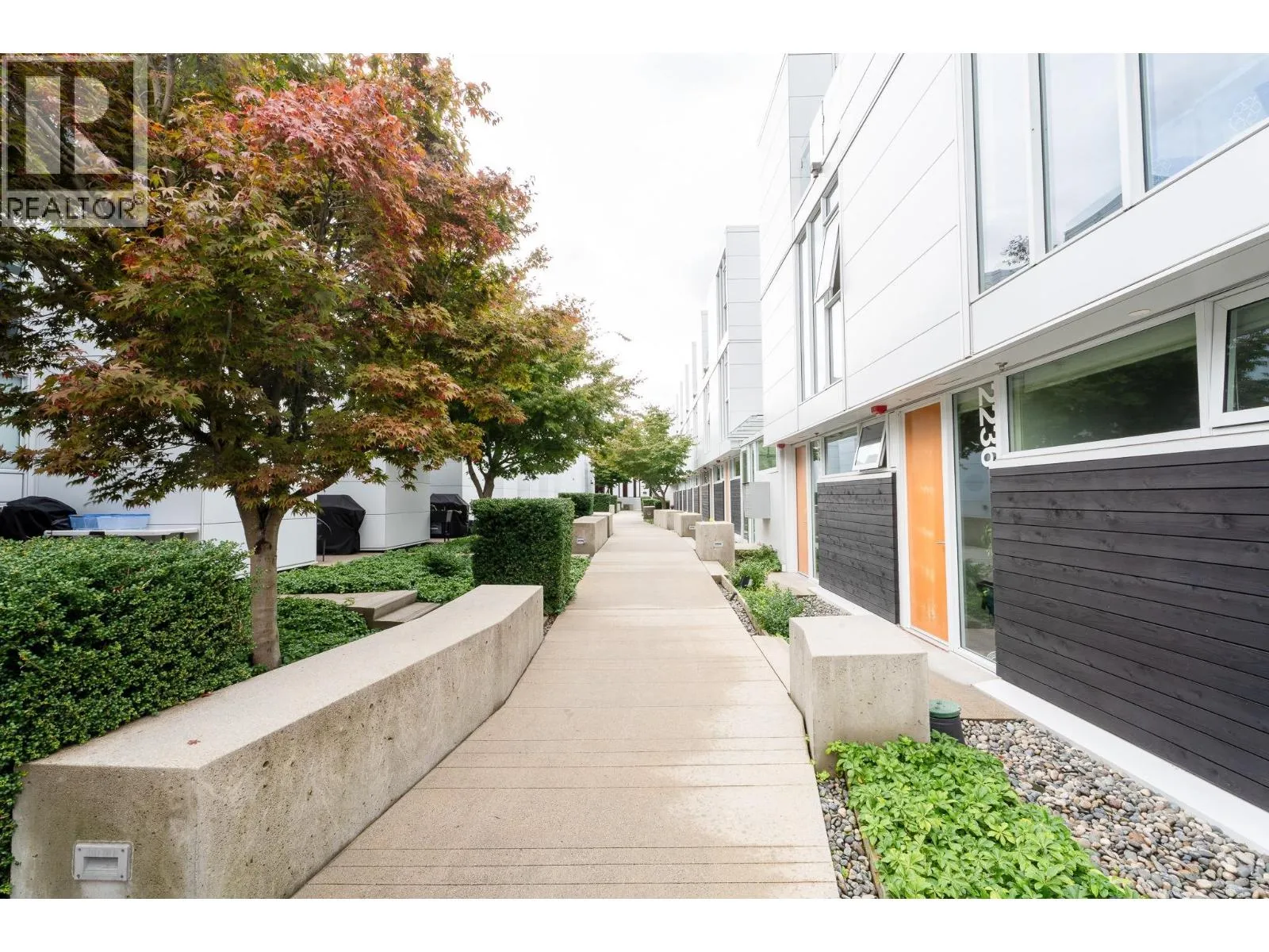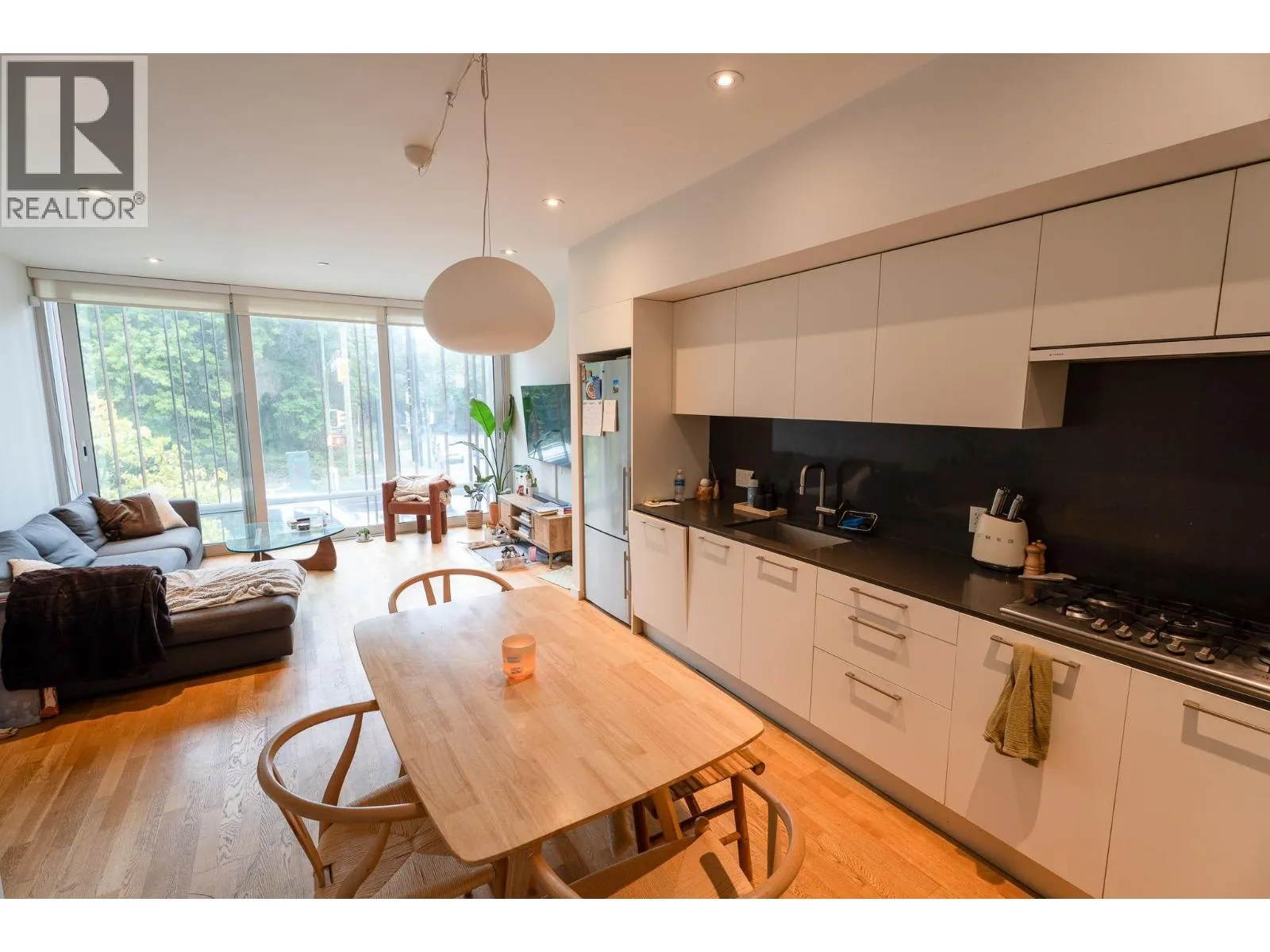 This 2-bedroom, 2-bathroom townhome is a must-see. The 1,088 square ft space features over-height ceilings, wide-plank oak flooring, and a full wall of windows. Designed by Michael Green Architecture, the home includes a kitchen and bathrooms by lnform lnteriors with Italian cabinetry and lighting from Artemide. Residents will enjoy radiant in-floor heating, an HRV system, and gallery-style white walls. The location is excellent, with Granville Island and the Seawall just a short walk away. (id:27476)