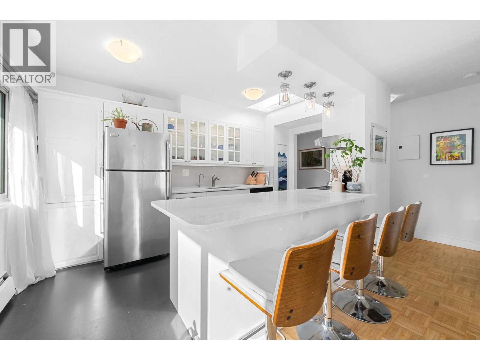 Welcome home to this bright and airy 2-bedroom top-floor corner retreat in charming Glen Oaks, a boutique 8-unit building in the sought-after Cambie Corridor. Stylish and welcoming, it features a sleek updated kitchen with quartz counters, stainless appliances and custom cabinetry, re-finished parquet hardwood floors, and an open layout perfect for gathering with friends. Relax with morning coffee or evening cocktails on the sunny southwest balcony. Steps to Douglas Park and walking distance to Emily Carr Elementary and Eric Hamber Secondary. Shared laundry, 1 parking, 1 storage, and pet-friendly living (1 dog or 2 cats) complete the package *no elevator* (id:27476)