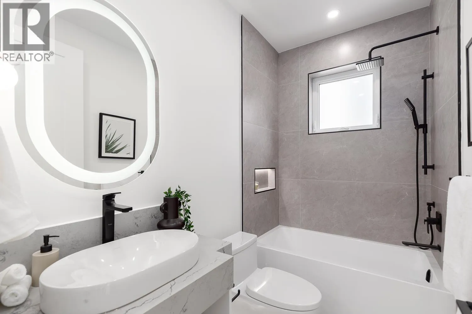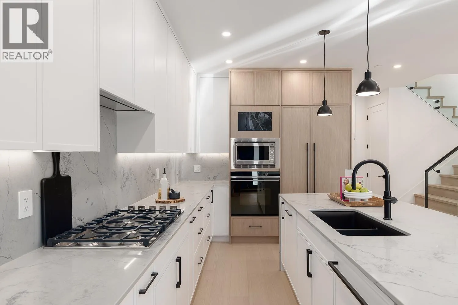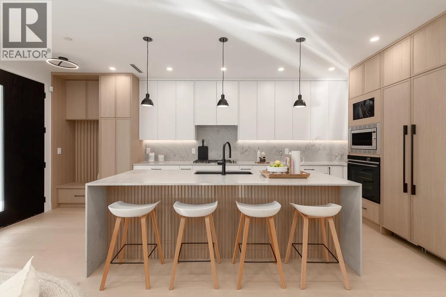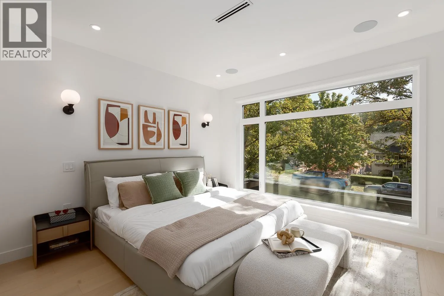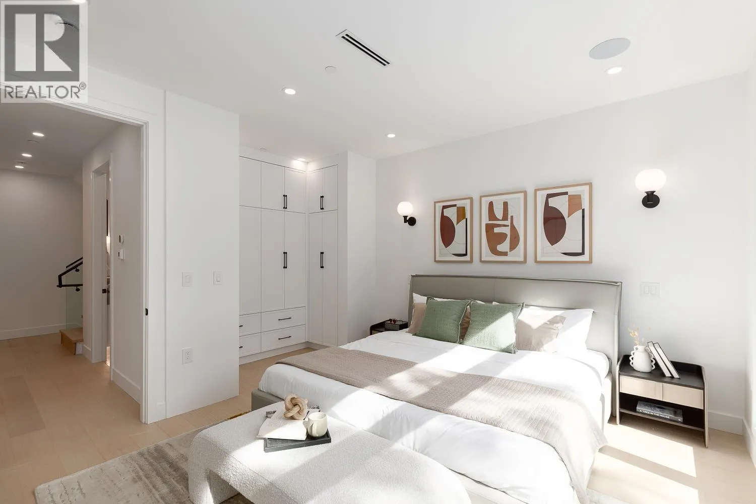 Front 1/2 duplex in coveted Cambie Village offering 1,900 sq.ft., 4 bedrooms & 3.5 baths. South-facing front terrace with Eclipse doors connects the bright living space to an outdoor kitchen for seamless entertaining. Oversized designer kitchen showcases integrated cabinetry & extensive millwork. Top floor loft is a highly functional 4th space with built-in desk, lounge area & ensuite primary featuring a curbless shower & room for a king bed. Private 1-car garage, radiant heat, A/C, Google thermostats, built-in surround sound & 4-camera security provide modern comfort. Exceptional walkability to Hillcrest Park, farmers market, shops & restaurants with quick access to Downtown & Kitsilano. (id:27476)