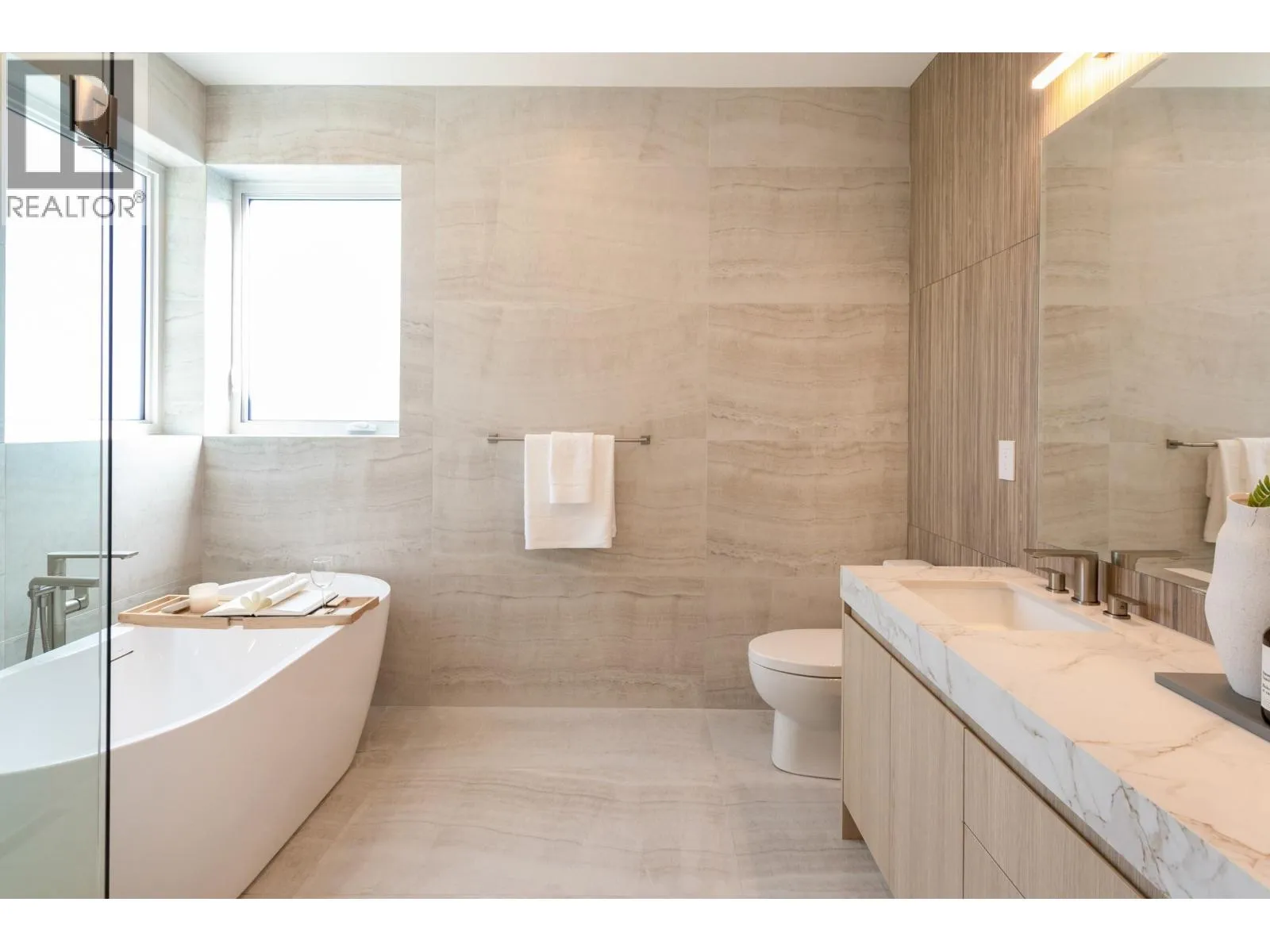 Quiet and modern brand new 1/2 duplex in central location facing Arbutus Greenway. 'ACM' metal facing and metal wood looking soffit. 9' ceiling on each floor including basement. Bright and spacious layout. High quality finishing throughout. Elegantly designed for 75" TV wall wood cabinet in Living Room. Fisher & Paykel kitchen appl on Main. Wok kitchen. Wine cooler. Foldable sliding door to the deck. Flex/Bdm with ensuite and a Den on Main. 2/F 3 bedrooms all ensuited. Basement has 2 bdms legal suite for mortgage helper. Media Room for entertainment plus full bath. Air-conditioning, HRV, Intercom, Security sys with video camera, sprinkler sys, Hidera vacuum sys. Close to 2 levels of schools and all private schools. Priced low for a quick sale. Open House - Sun Nov 16th - 2-4 pm. (id:27476)