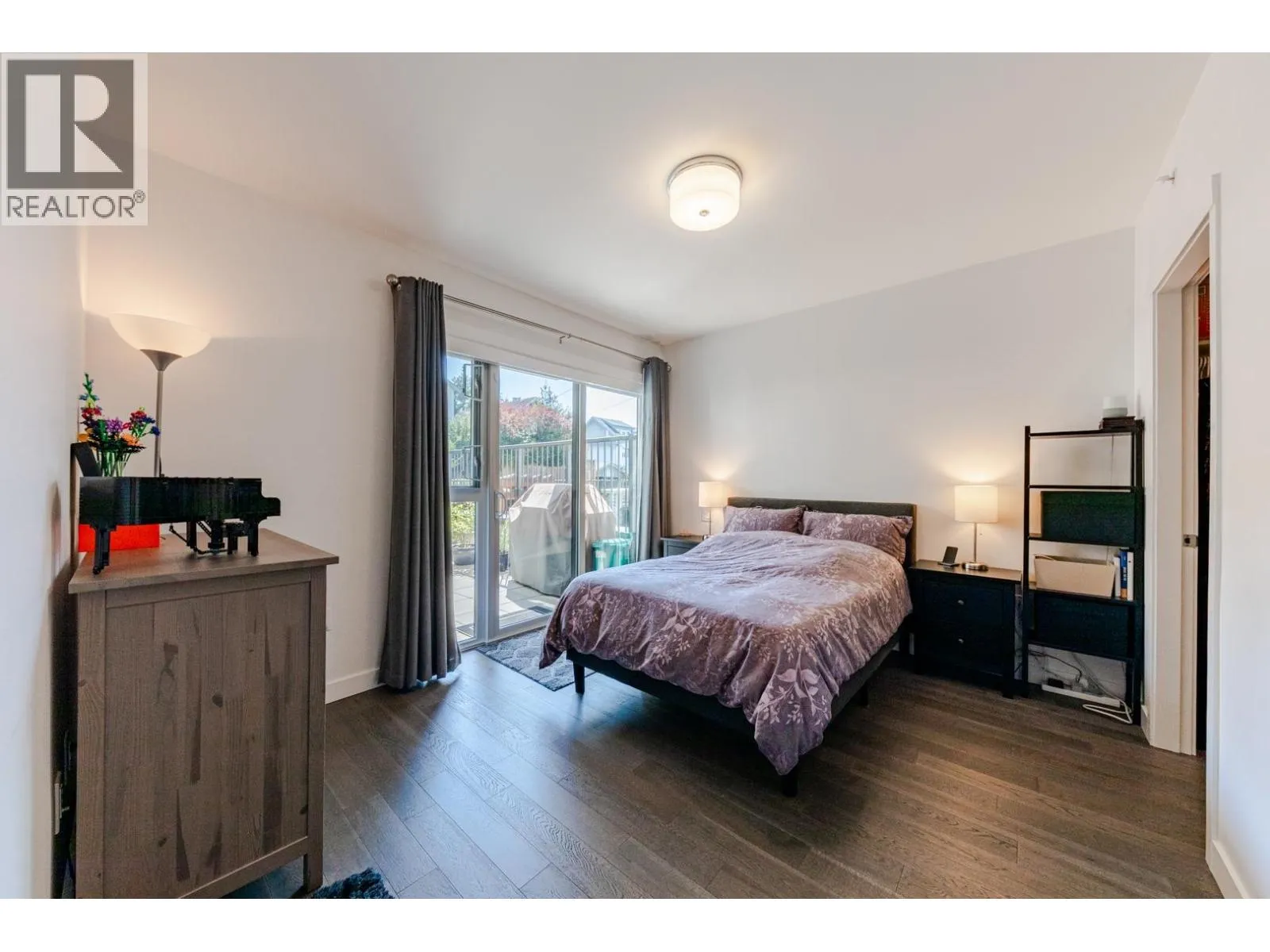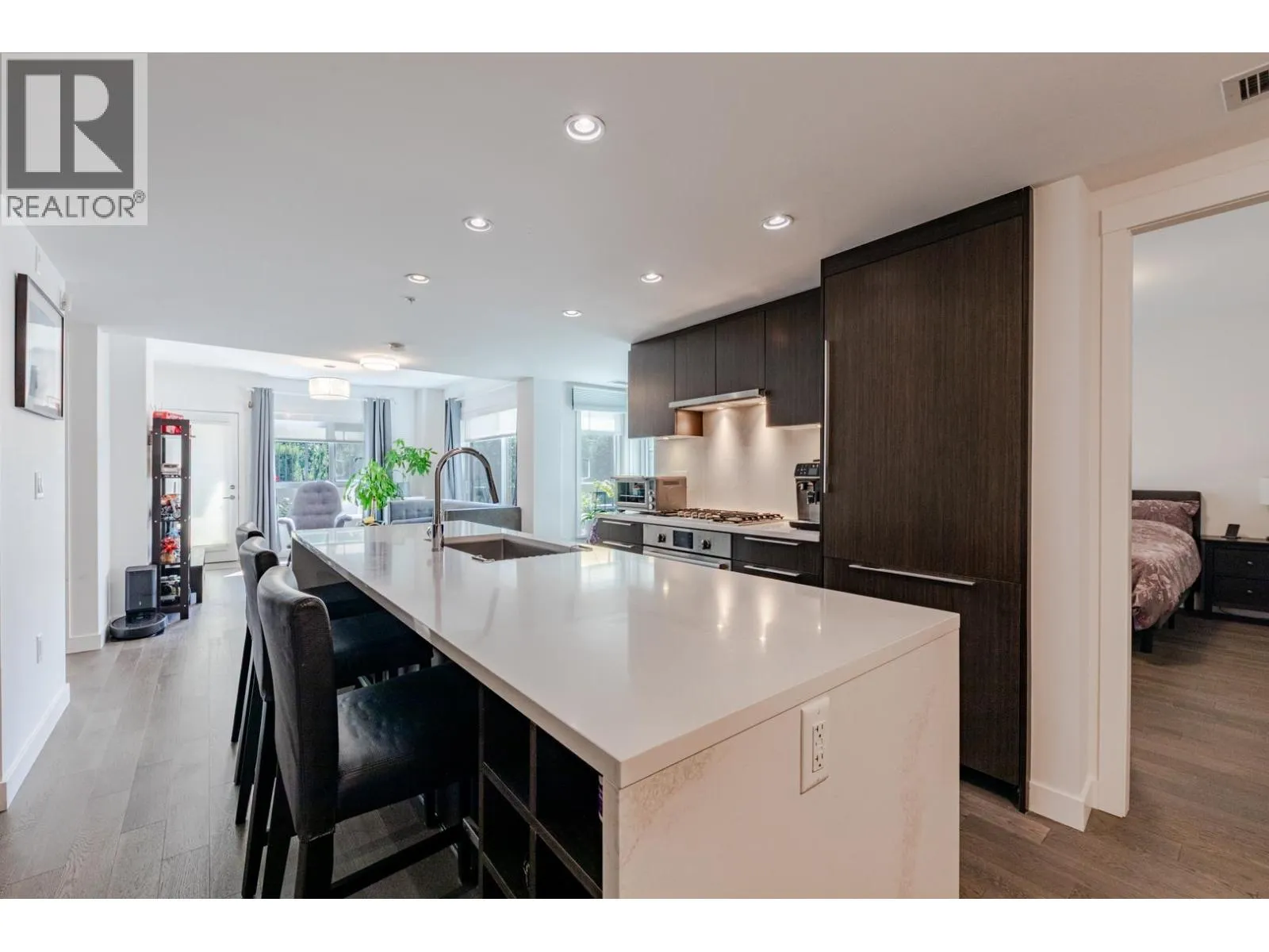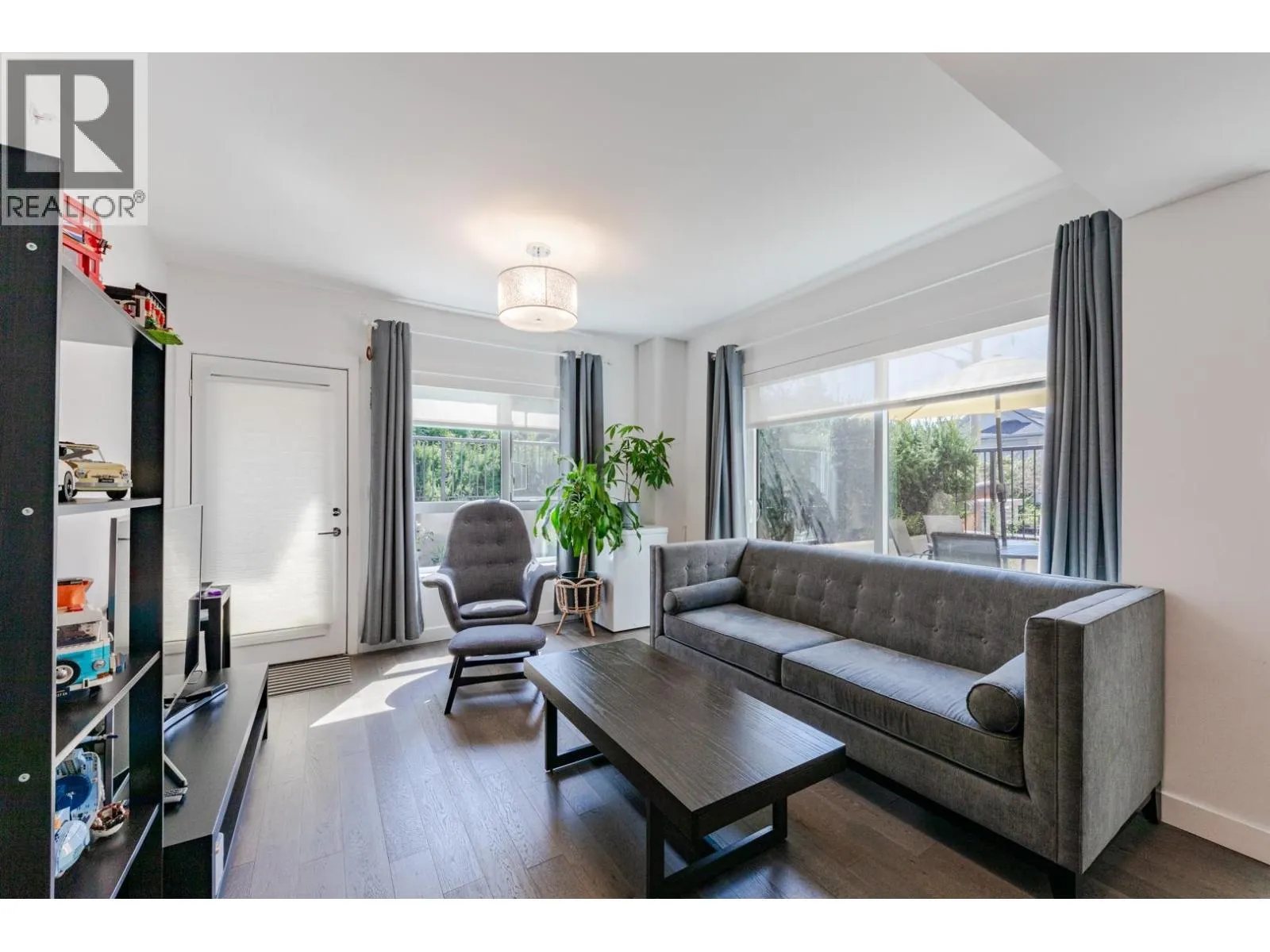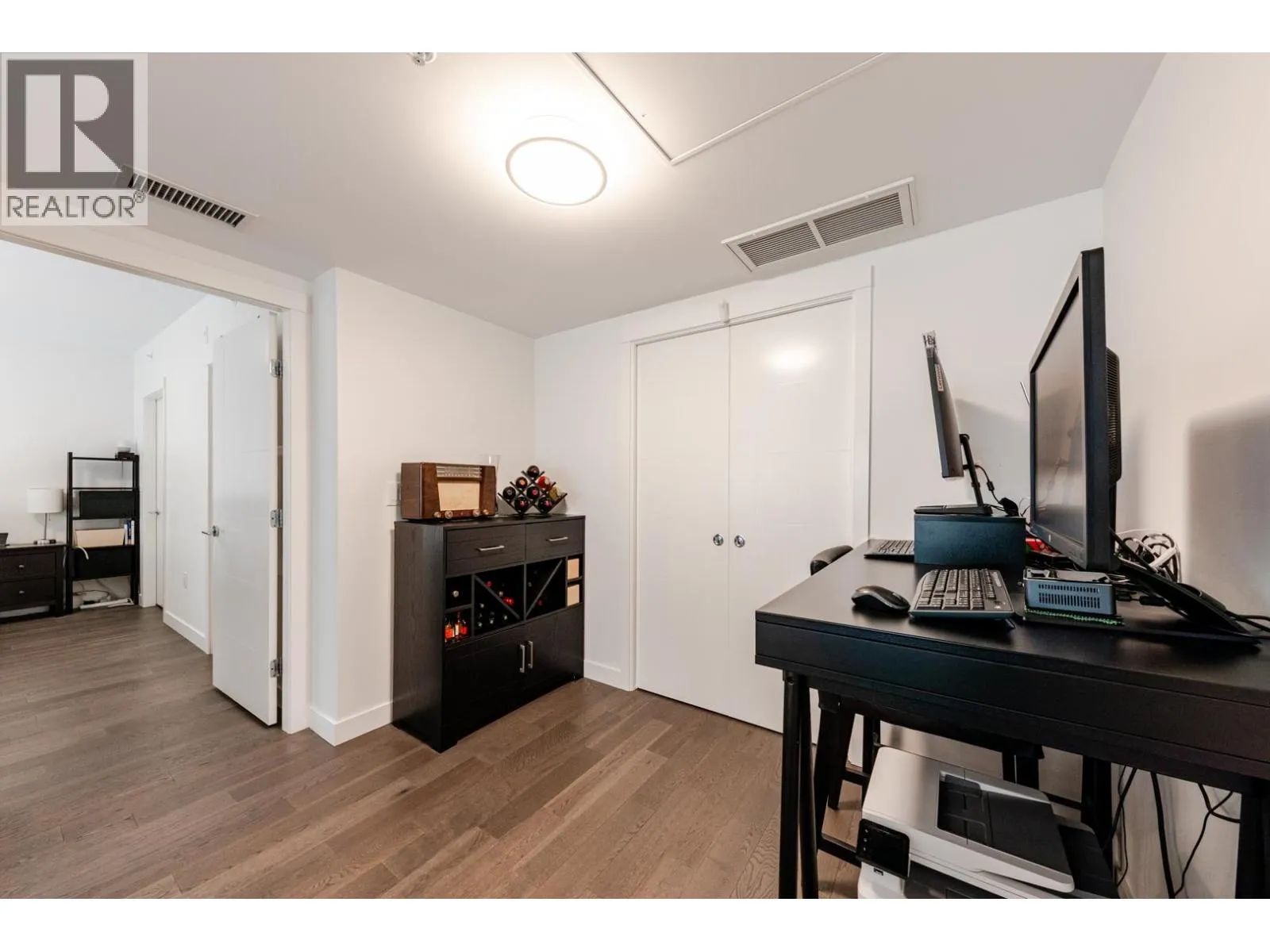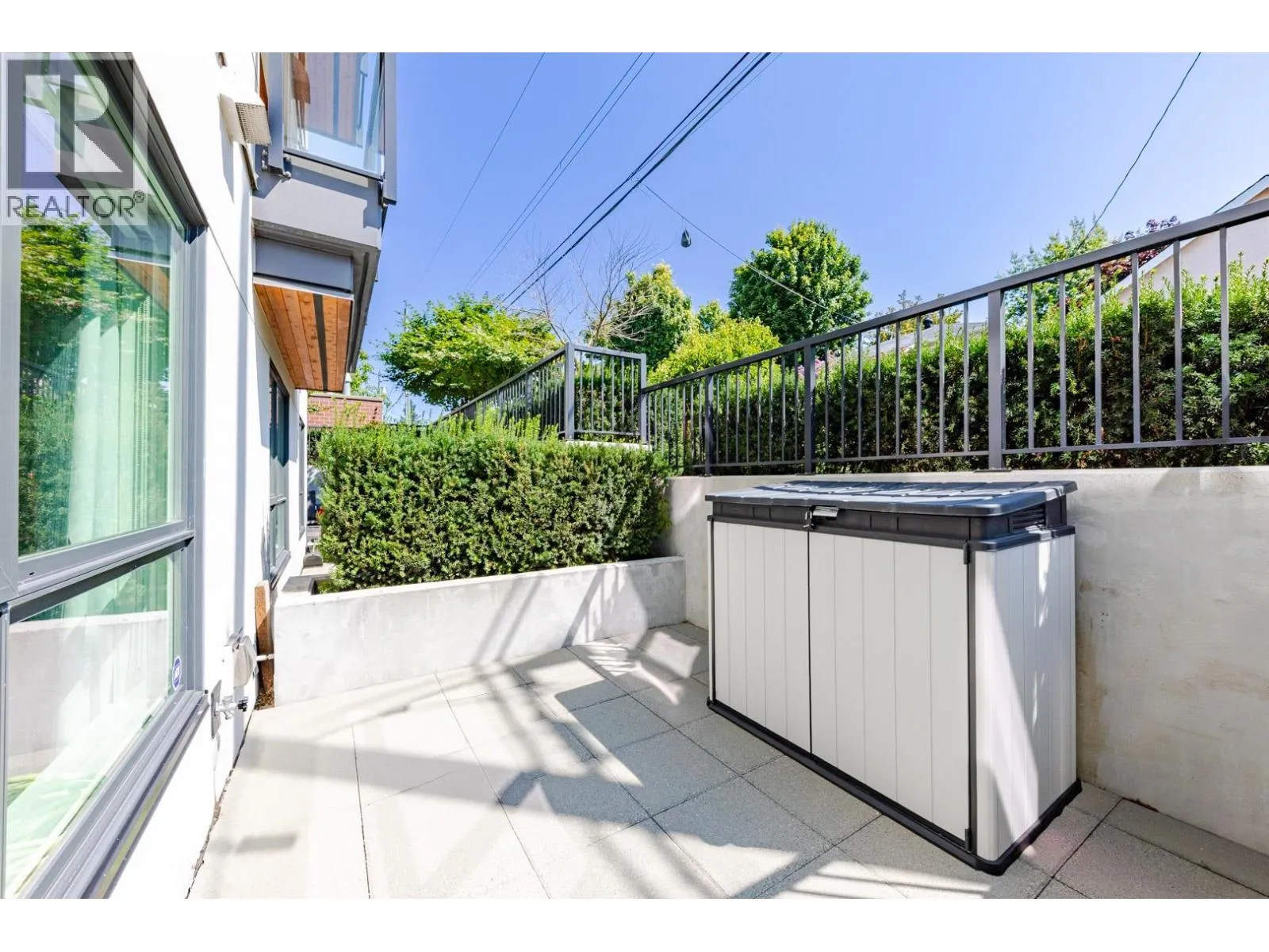 Welcome to The Leveson, nestled in the vibrant South Granville neighborhood. This QUIET (away from Granville) ground-floor, single-level 2 Bedroom + Office home boasts 460 square ft of private outdoor space. With its elegant, contemporary A/C design and dual access from the street and building, it feels more like a townhome. The chef-inspired kitchen features premium Bosch appliances, a gas cooktop, and quartz countertops with a sleek waterfall edge. The spacious primary bedroom easily fits a king-sized bed, includes a large walk-in closet, and a luxurious double vanity ensuite. Two generous patios with gas hookup are ideal for BBQs and entertaining. Unbeatable location near transit, shops, dining, and top Vancouver schools. Includes 1 EV parking and upgraded locker attached to the stall. (id:27476)