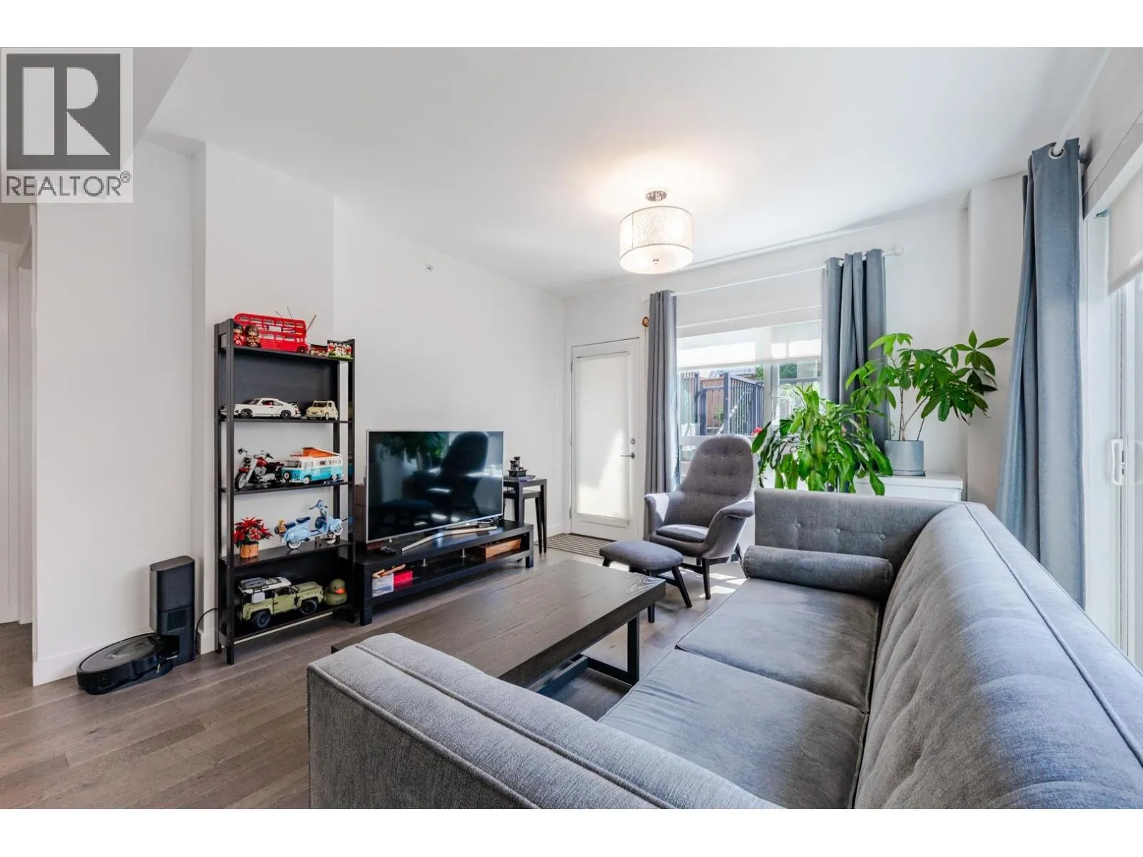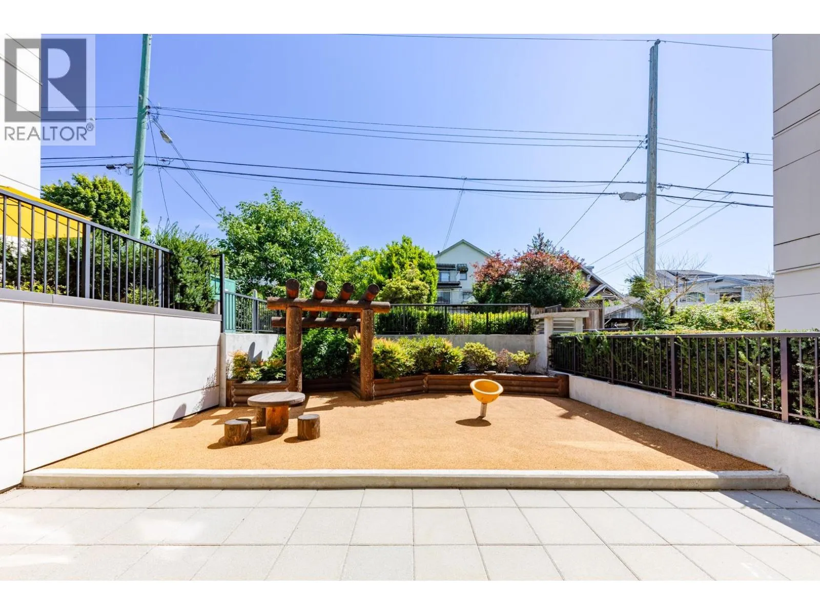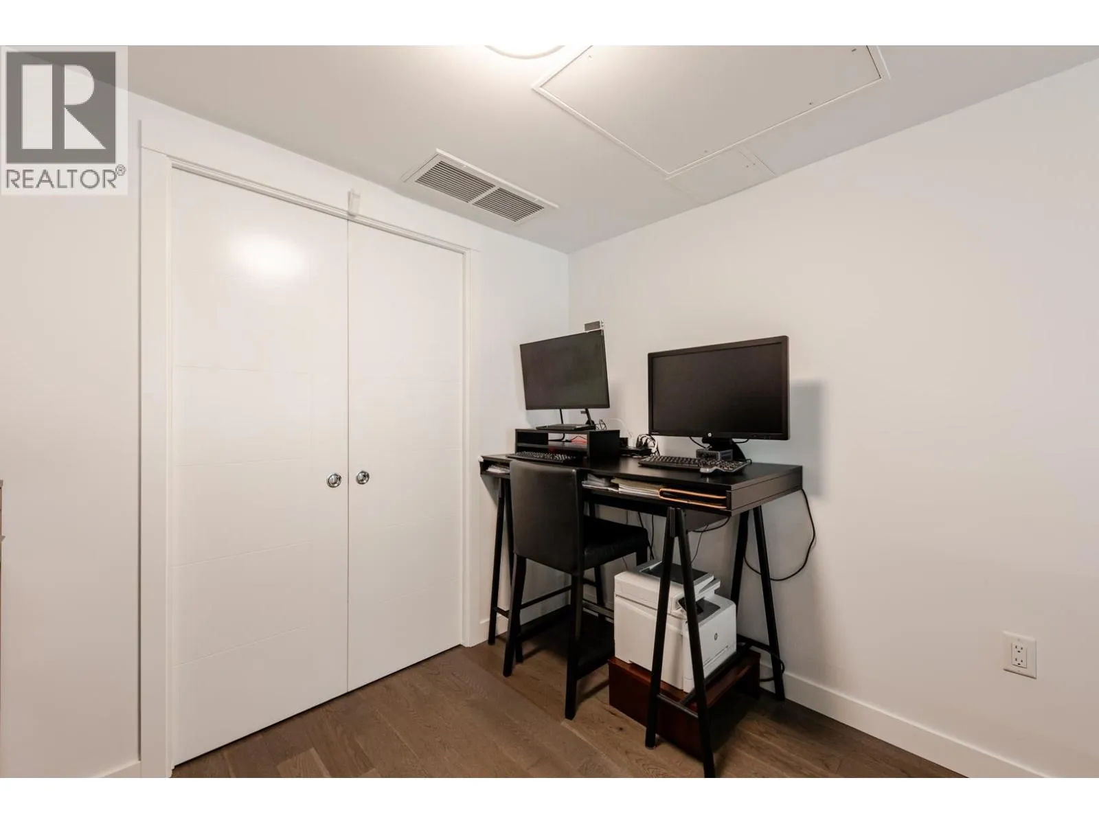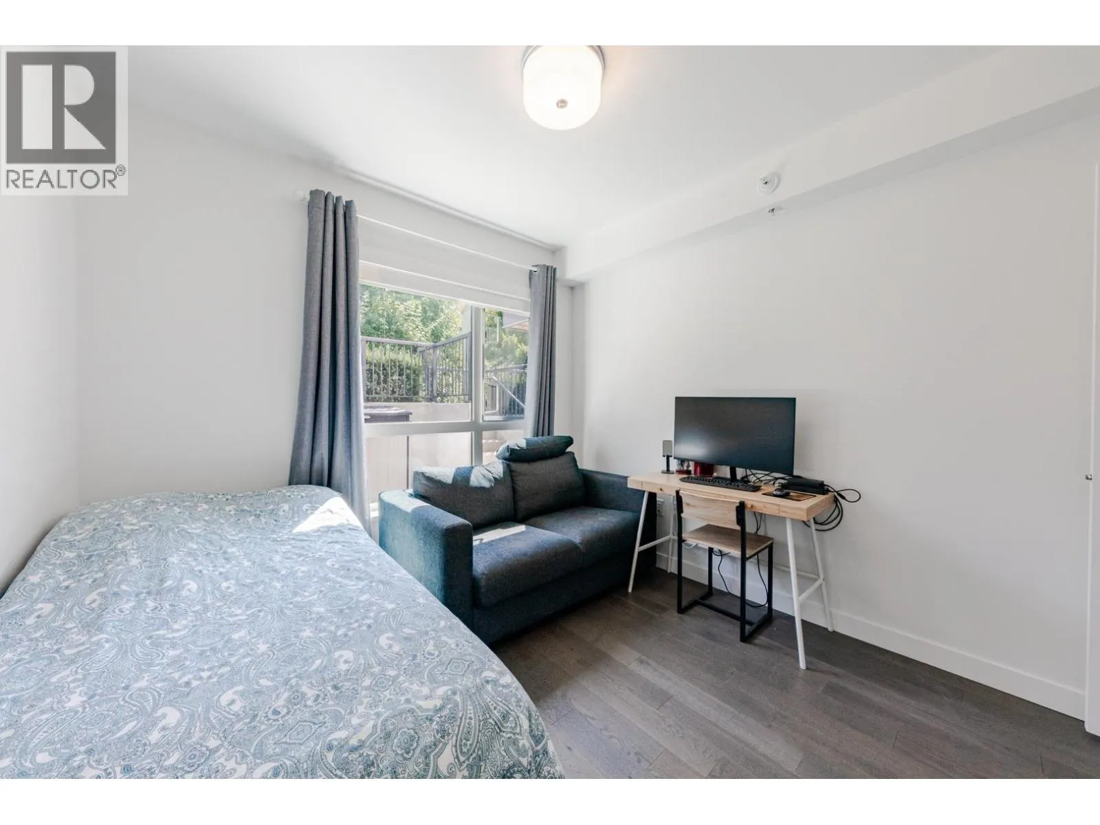 Welcome to The Leveson, nestled in the vibrant South Granville neighborhood. This QUIET (away from Granville) ground-floor, single-level 2 Bedroom + Office home boasts 460 square ft of private outdoor space. With its elegant, contemporary A/C design and dual access from the street and building, it feels more like a townhome. The chef-inspired kitchen features premium Bosch appliances, a gas cooktop, and quartz countertops with a sleek waterfall edge. The spacious primary bedroom easily fits a king-sized bed, includes a large walk-in closet, and a luxurious double vanity ensuite. Two generous patios with gas hookup are ideal for BBQs and entertaining. Unbeatable location near transit, shops, dining, and top Vancouver schools. Includes 1 EV parking and upgraded locker attached to the stall. (id:27476)