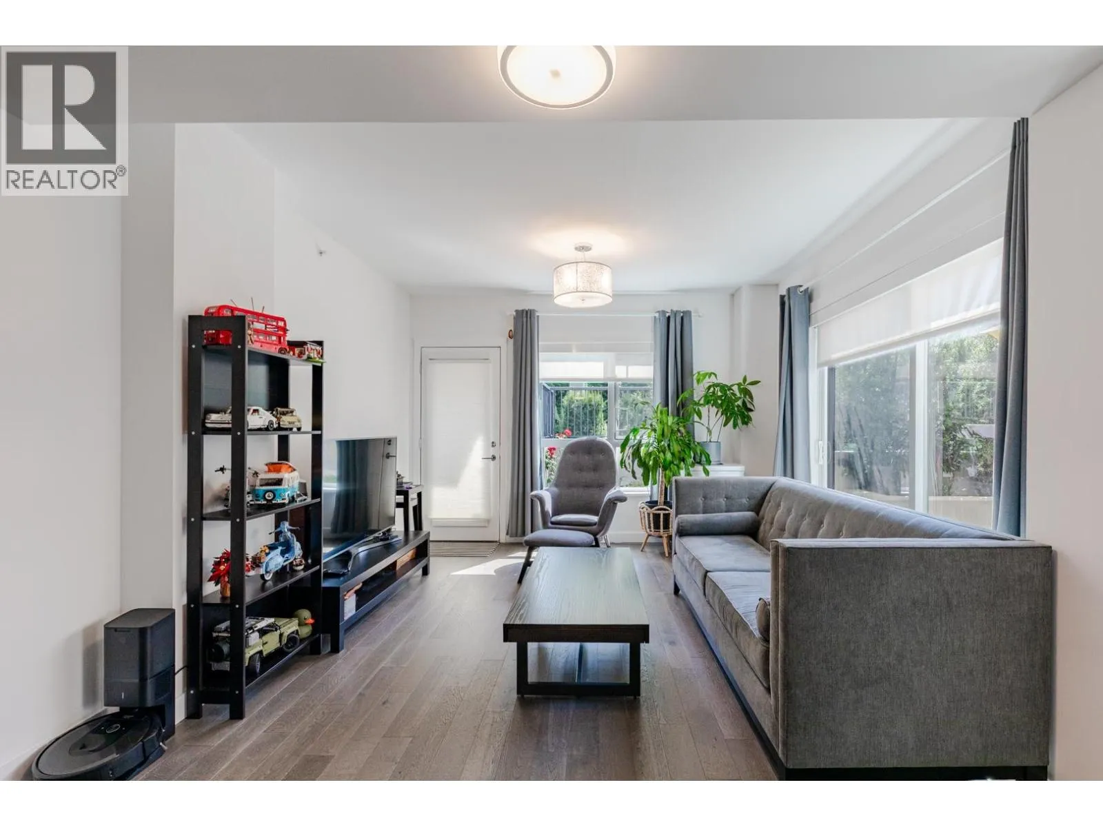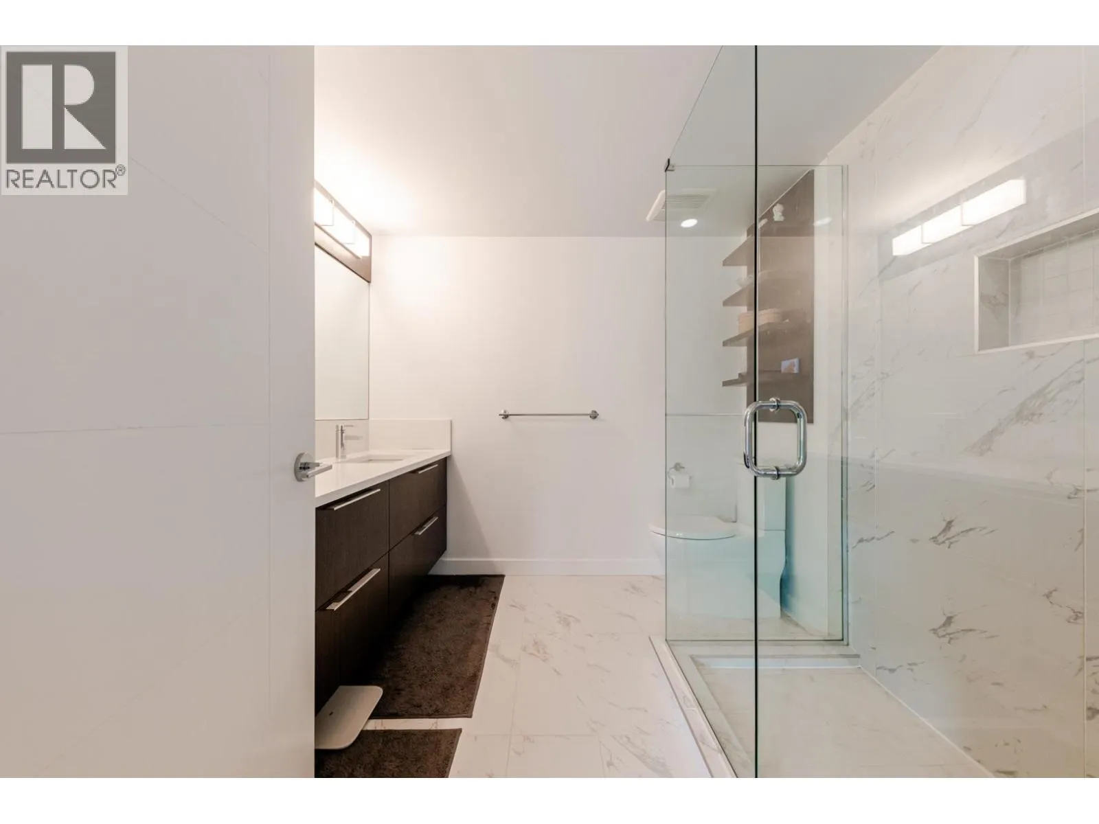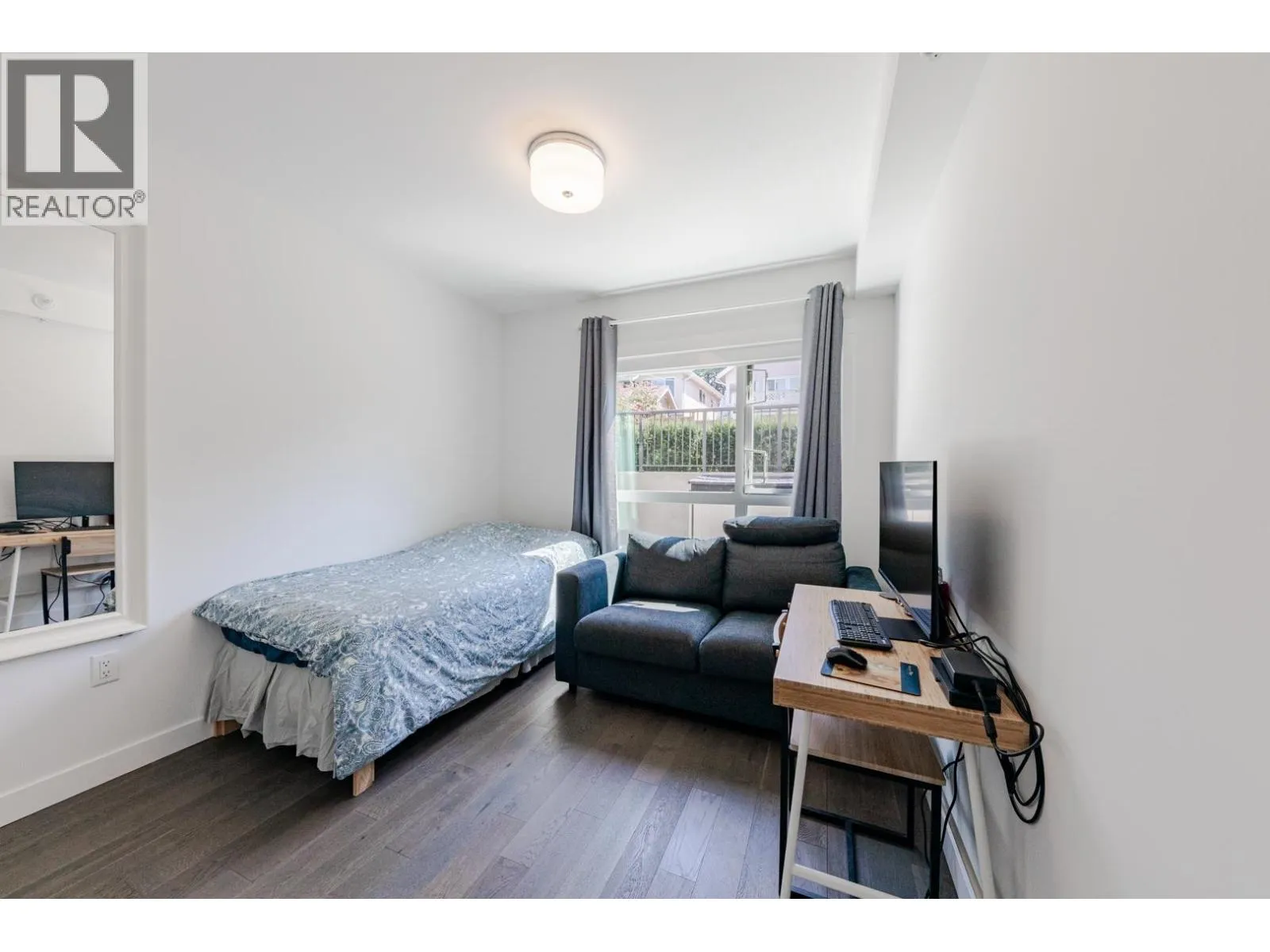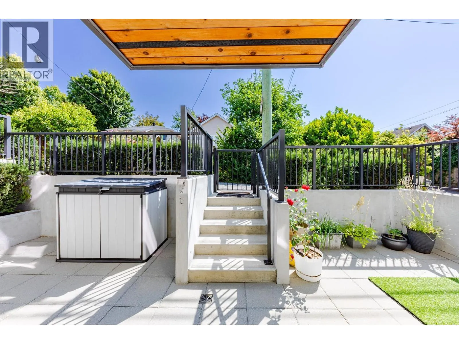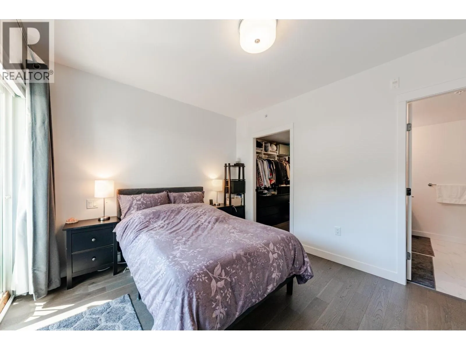 Welcome to The Leveson, nestled in the vibrant South Granville neighborhood. This QUIET (away from Granville) ground-floor, single-level 2 Bedroom + Office home boasts 460 square ft of private outdoor space. With its elegant, contemporary A/C design and dual access from the street and building, it feels more like a townhome. The chef-inspired kitchen features premium Bosch appliances, a gas cooktop, and quartz countertops with a sleek waterfall edge. The spacious primary bedroom easily fits a king-sized bed, includes a large walk-in closet, and a luxurious double vanity ensuite. Two generous patios with gas hookup are ideal for BBQs and entertaining. Unbeatable location near transit, shops, dining, and top Vancouver schools. Includes 1 EV parking and upgraded locker attached to the stall. (id:27476)