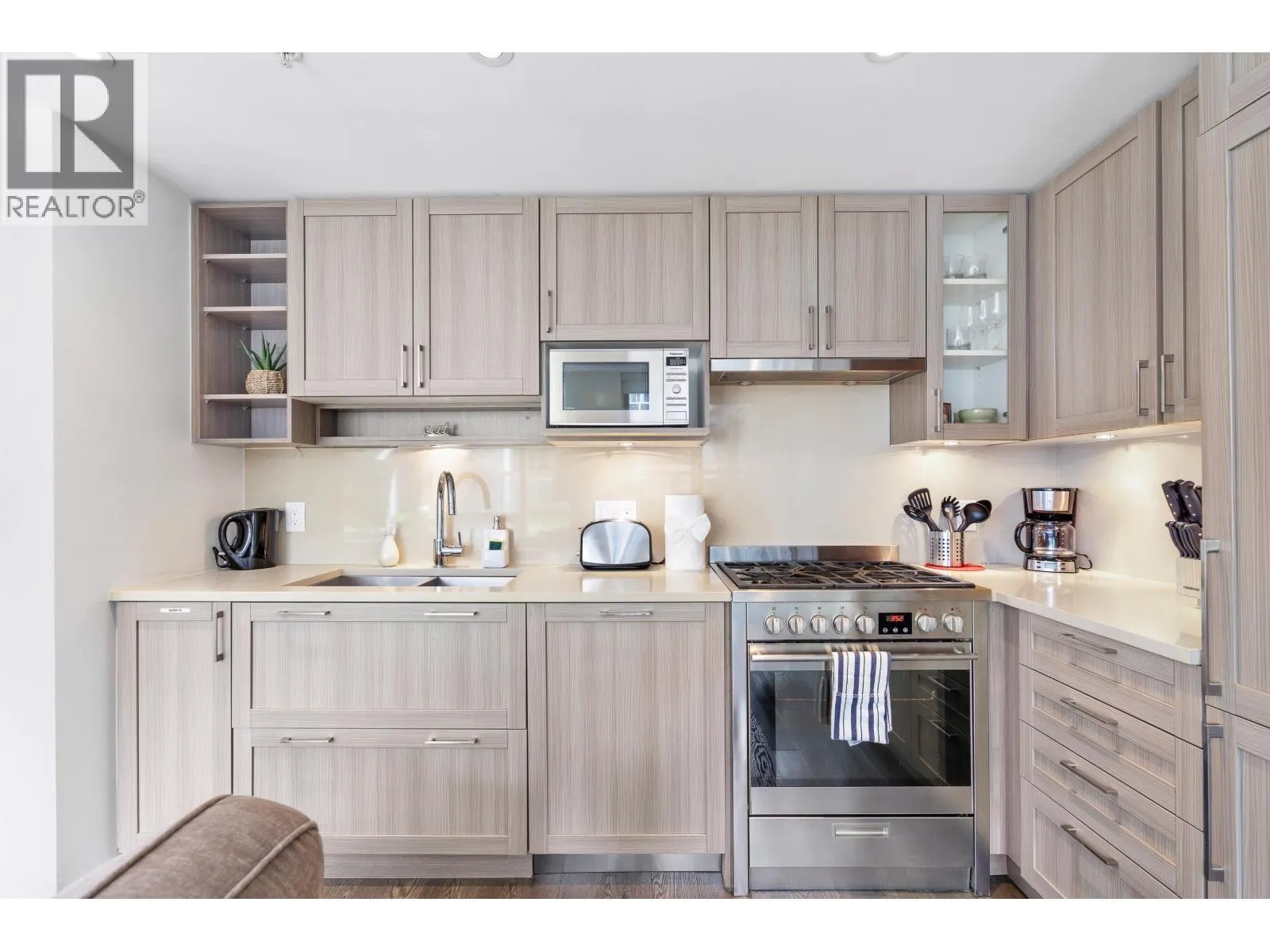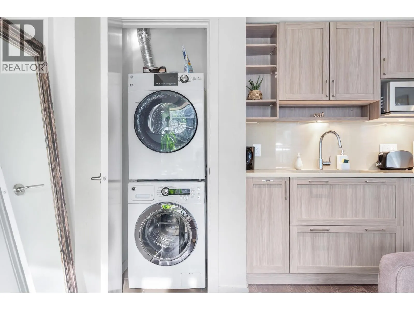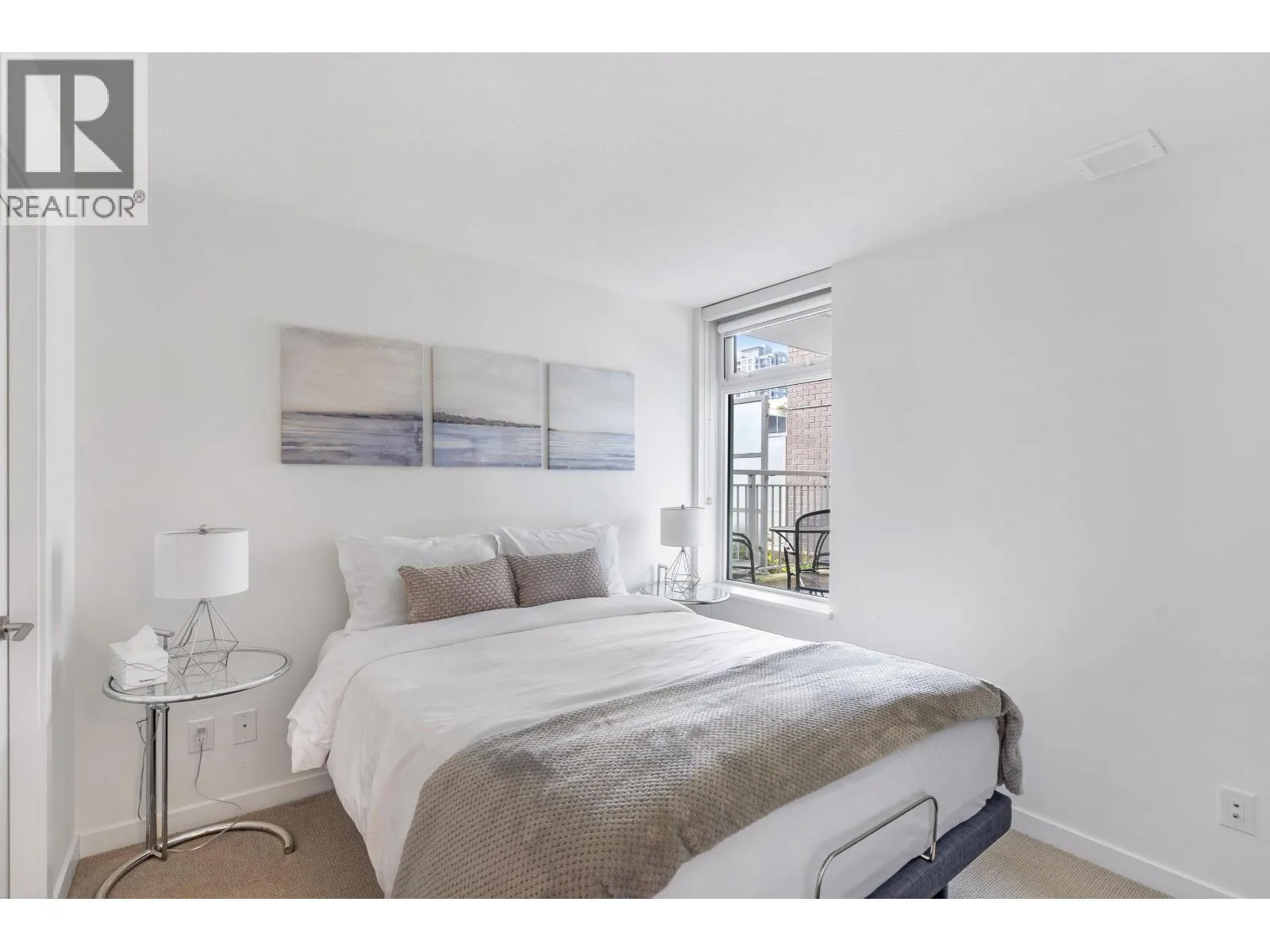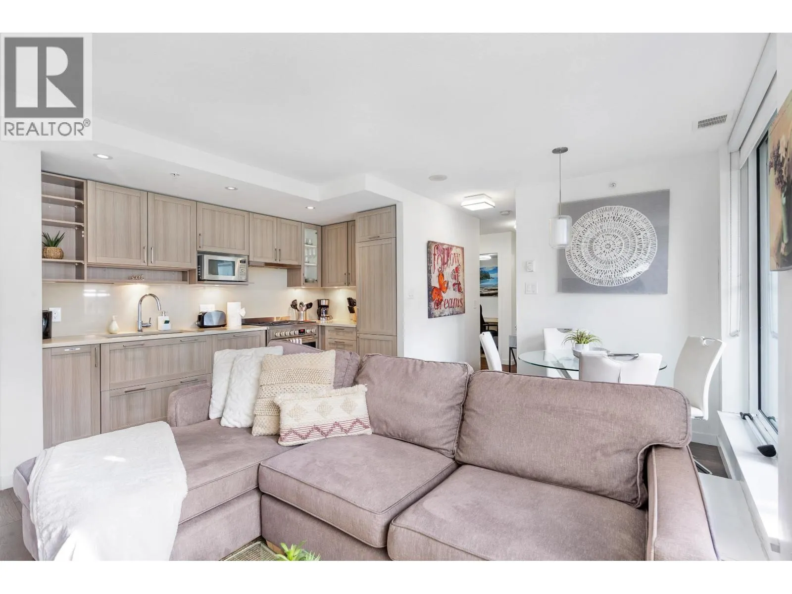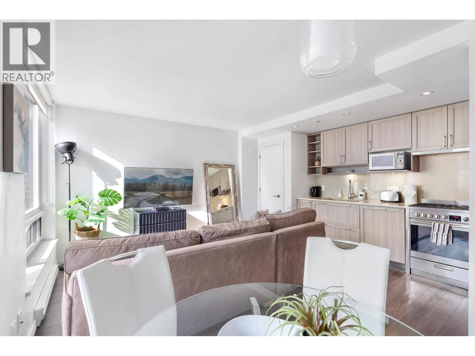 Large 1 bedroom + den with great floor plan on a quiet side of Wall Centre with garden view. Very livable unit. Custom California closets installed in the walk-in and entry closets. Large den could be used as a second bedroom. Extra large patio. Fitness centre, 60 foot lap pool, jacuzzi, rooftop gardens, live in caretaker, roller blinds, laminate floors, marble counters, insuite laundry, S/S appliances, gas stove. Steps to skytrain, bus, shopping, parks. One parking and locker included; locker is on 3rd floor next to unit. Minutes to downtown, Metrotown, North Shore. Open House: Saturday & Sunday, November 15th & 16th, 2 to 4 PM. (id:27476)