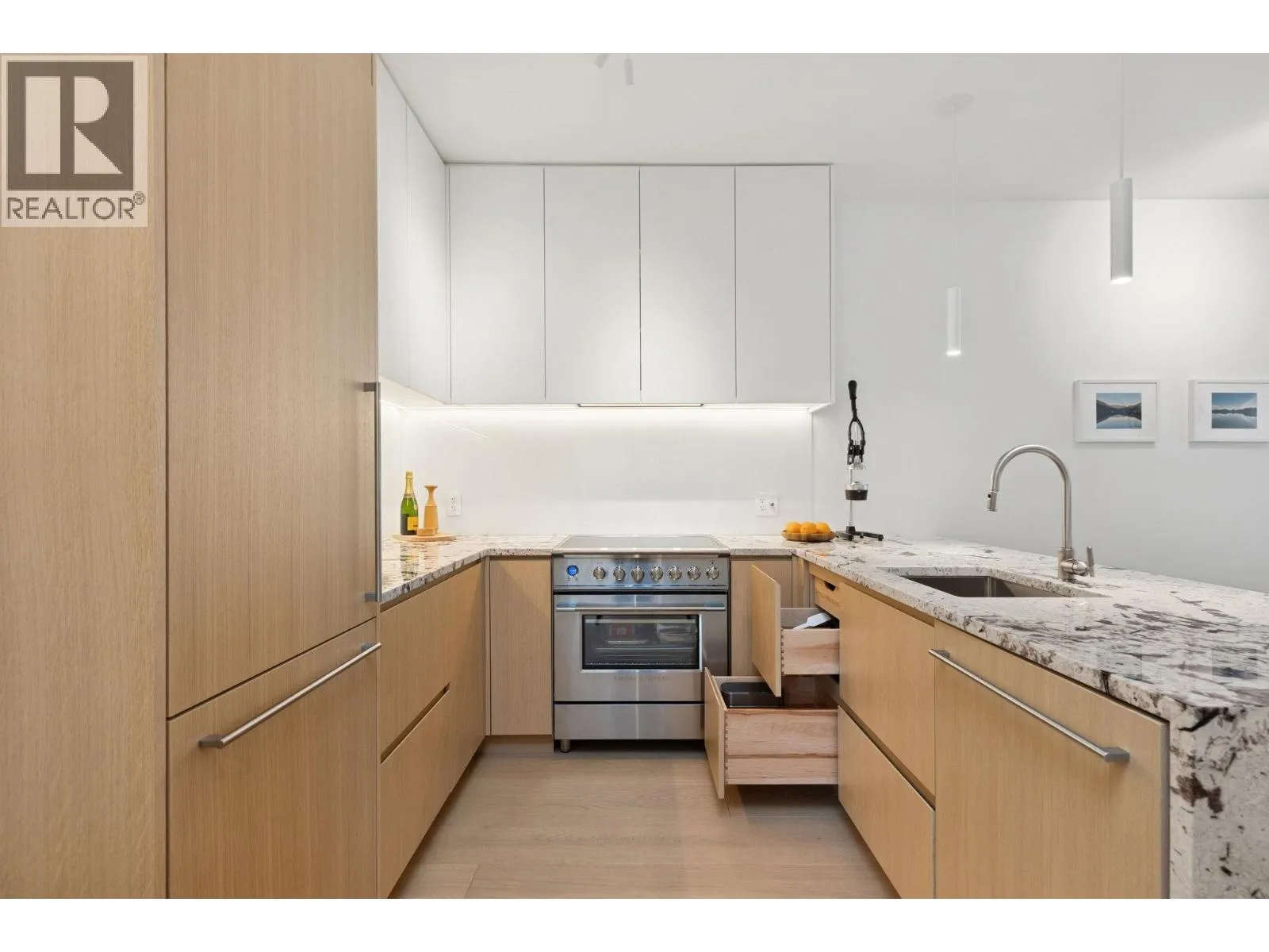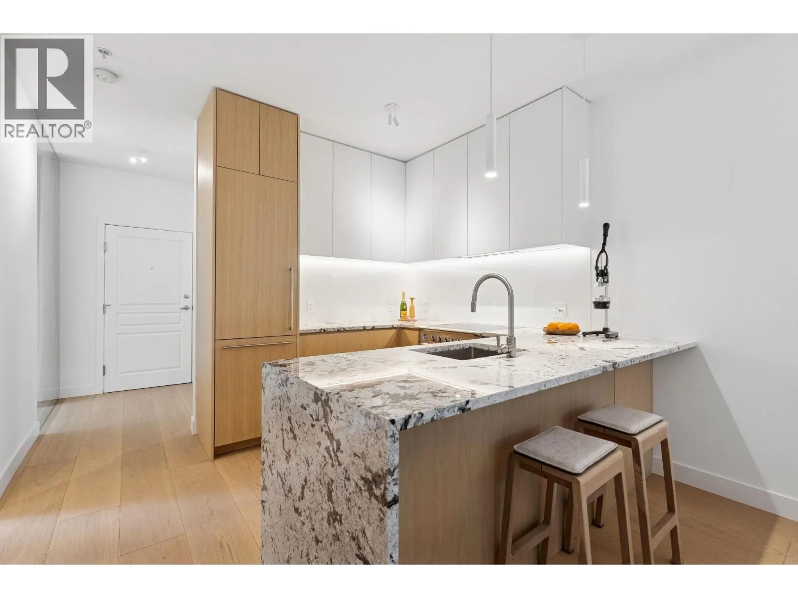 LUXURY LIVING in the WEST END- Spacious, Light-Filled Designer Home. Fully renovated end unit redesigned in 2024, this bright 2-bedroom + den, 2-bath home features 9´ ceilings, a large balcony, gas fireplace and spa-inspired bathrooms. Custom cabinetry, stone counters, and integrated top-end appliances blend modern elegance and comfort. Quality detailing - such as Buster & Punch hardware - elevate this home in the quiet centre of downtown, steps to the Sea Wall and Stanley Park and moments from cafés, restaurants, and shopping. Andaluca is a well-managed, pet-friendly building with beautiful, professionally maintained gardens and EV charging, enabling an extra-ordinary contemporary lifestyle. CHECK out VIDEO at Realtor's Website. (id:27476)