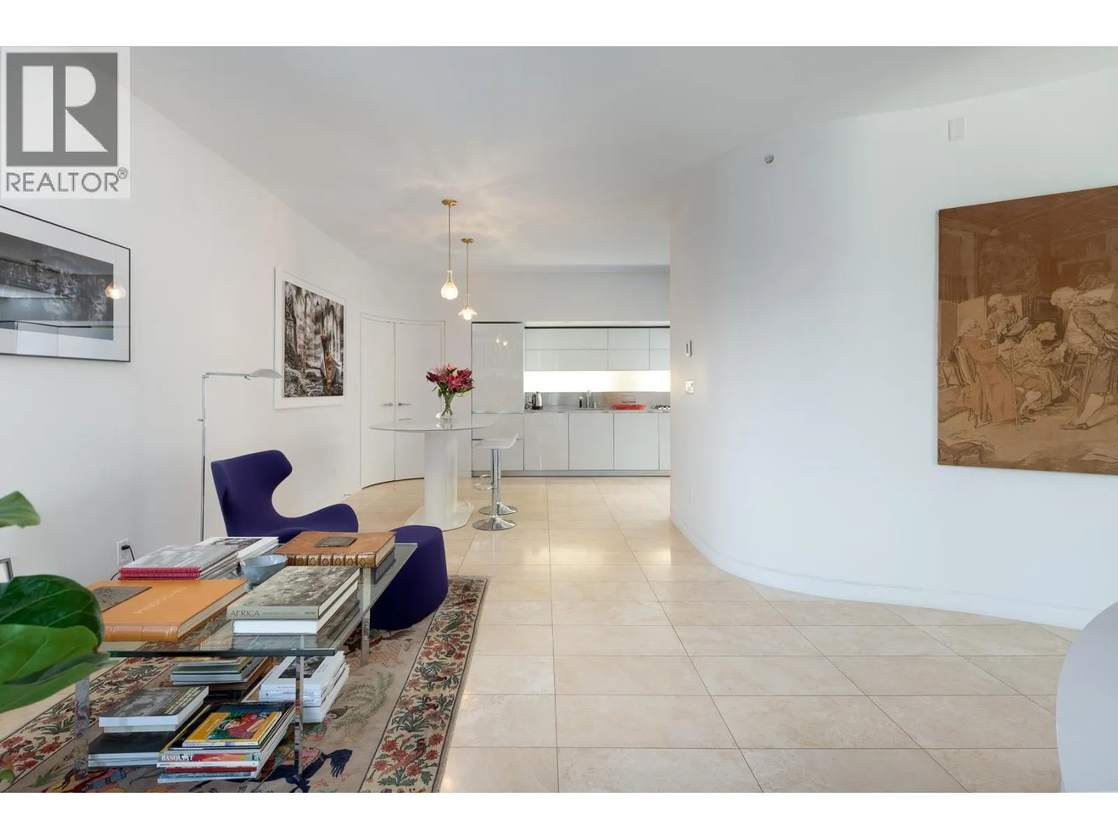 JAMESON HOUSE - a contemporary masterpiece by renowned architects Foster + Partners. Located in the heart of the business/financial & entertainment districts and steps to the seawall, shops & restaurants. The open-concept layout features elegantly curved walls, is flooded with natural light, boasts high ceilings and walks-out to a private patio with City, Coal Harbour & Mountain views. Enjoy beautiful, imported travertine flooring that carries out onto your view terrace, Italian kitchen designed by Dada Cucina featuring Gaggenau and Sub-Zero appliances. Closets by Molteni & C. and a stunning bathroom. 24-hr concierge and auto valet parking system for your convenience. The quality of this home & development does impress. Must be seen to be appreciated! (id:27476)