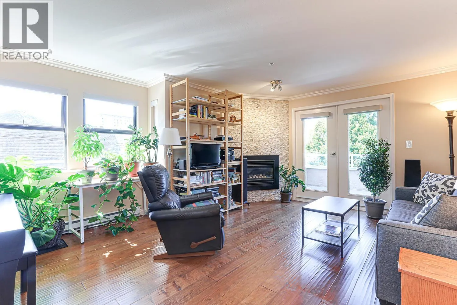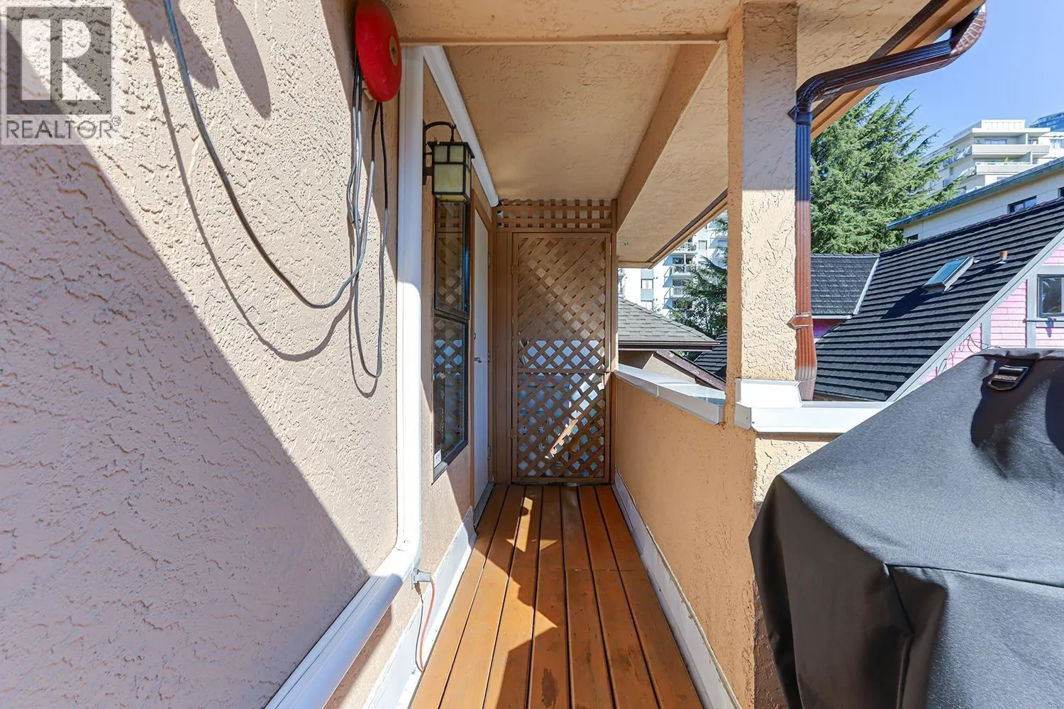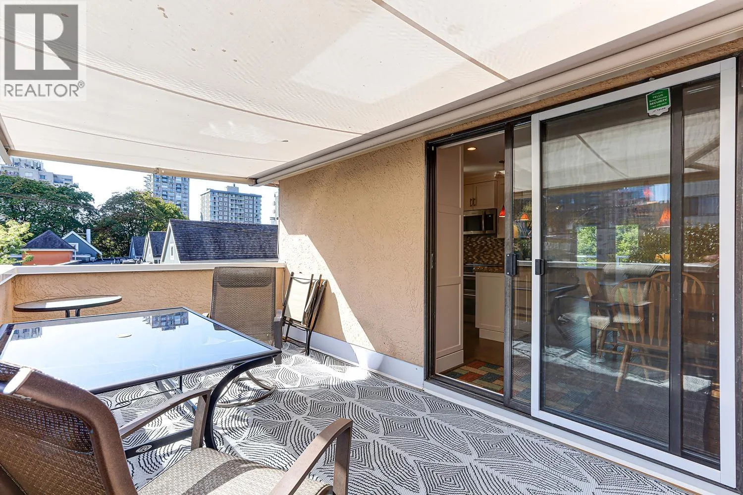 Penthouse, that feels like a house. 2 large Bedrooms & 2 Bathrooms. Bright & spacious, windows on all sides, no shared walls. Breezes & treed views in every room. Living Room has Hardwood floors, Gas fire place, French doors to North West facing balcony. Large Kitchen, White Shaker Cabinets and Granite counters, new induction stove with double oven. opens to large South East facing sundeck (15'3" x 8'8") with space for BBQ & patio set, powered awning covers the seating area. Stairs to garden area & planters. New carpet in the 2 bedrooms, Heat Pump (2021) Roof (2017). In-floor radiant heat in both bathrooms and the front entry hallway. In suite Laundry, 1 car parking in garage, 1 storage locker, 1 Cat, 1 Dog, Prime West End location - steps to Robson St for shops, dining & transit, Walk to schools, Nelson Dog Park. minutes to Stanley Park & English Bay! Located across the street from Barclay Heritage Square Park. Call your REALTOR for more info or to view. (id:27476)