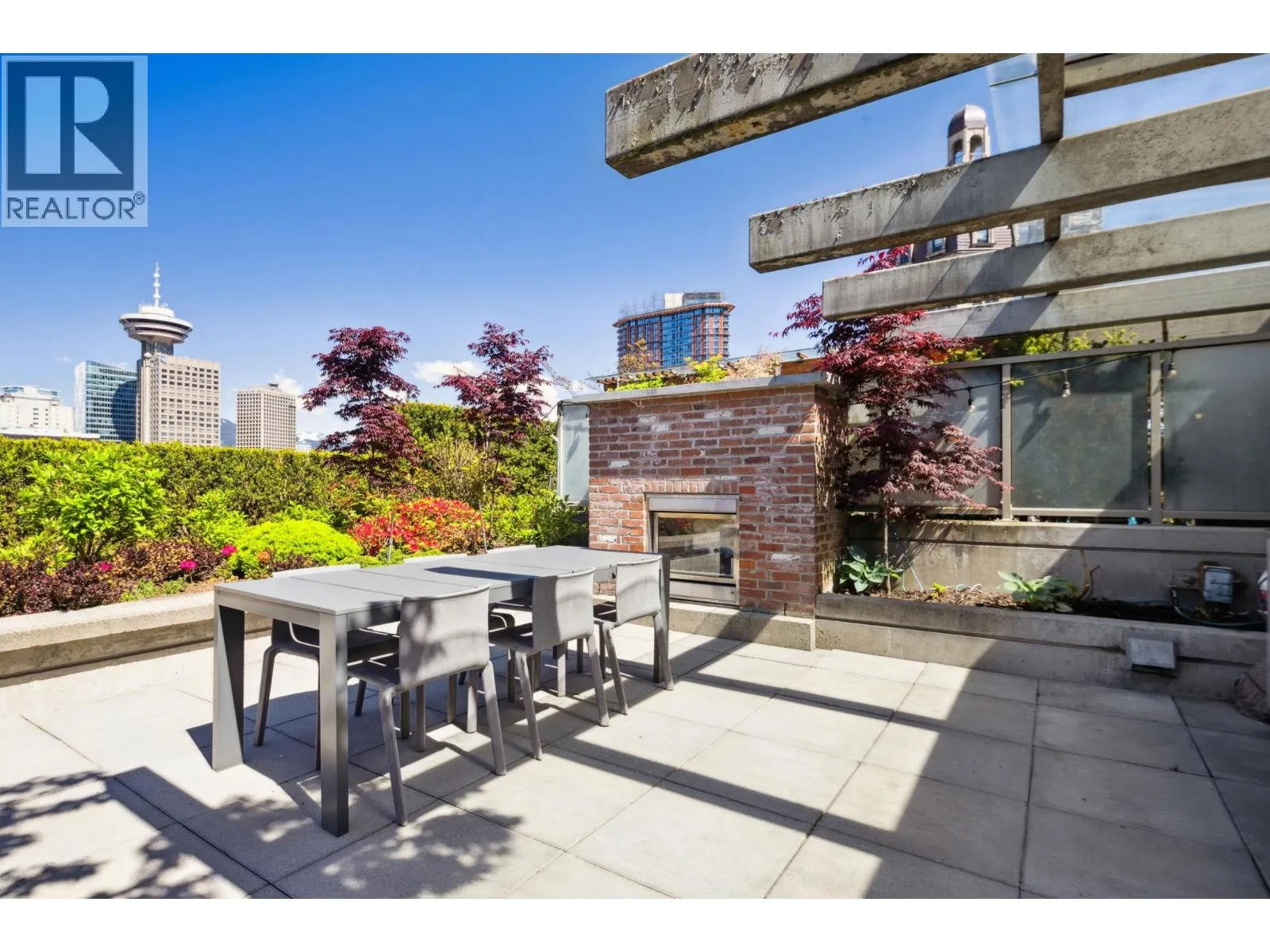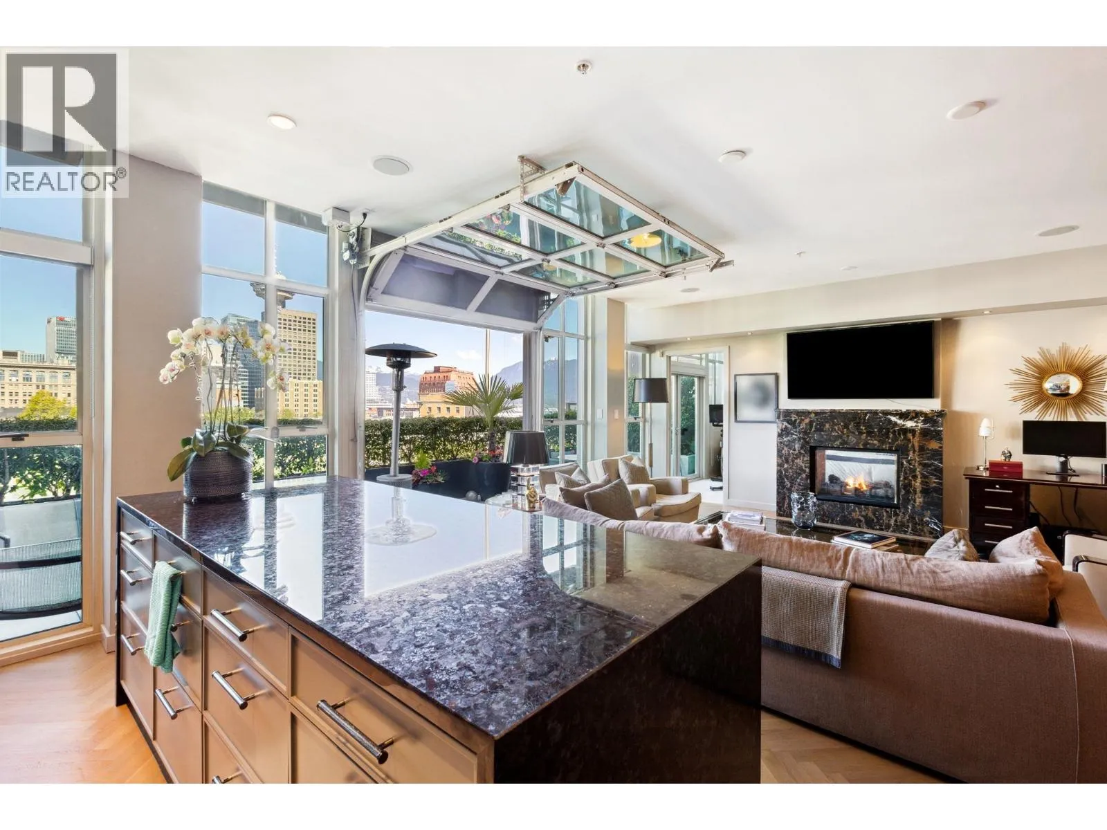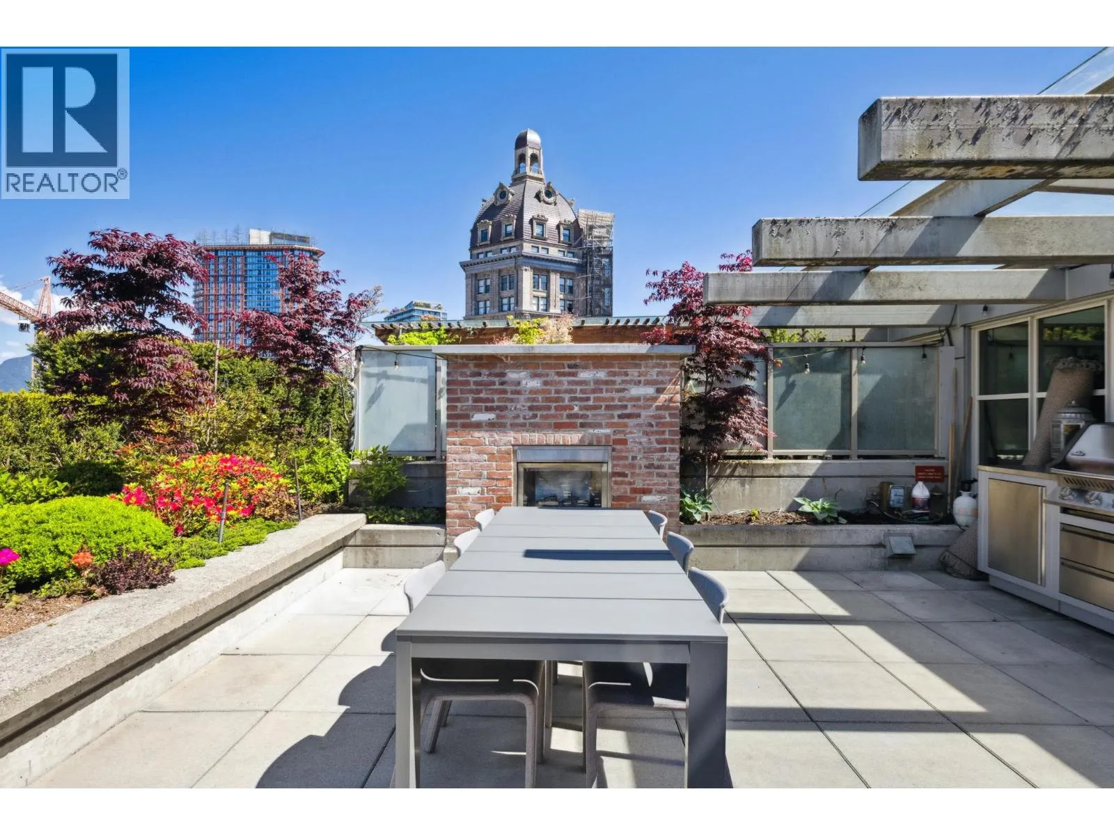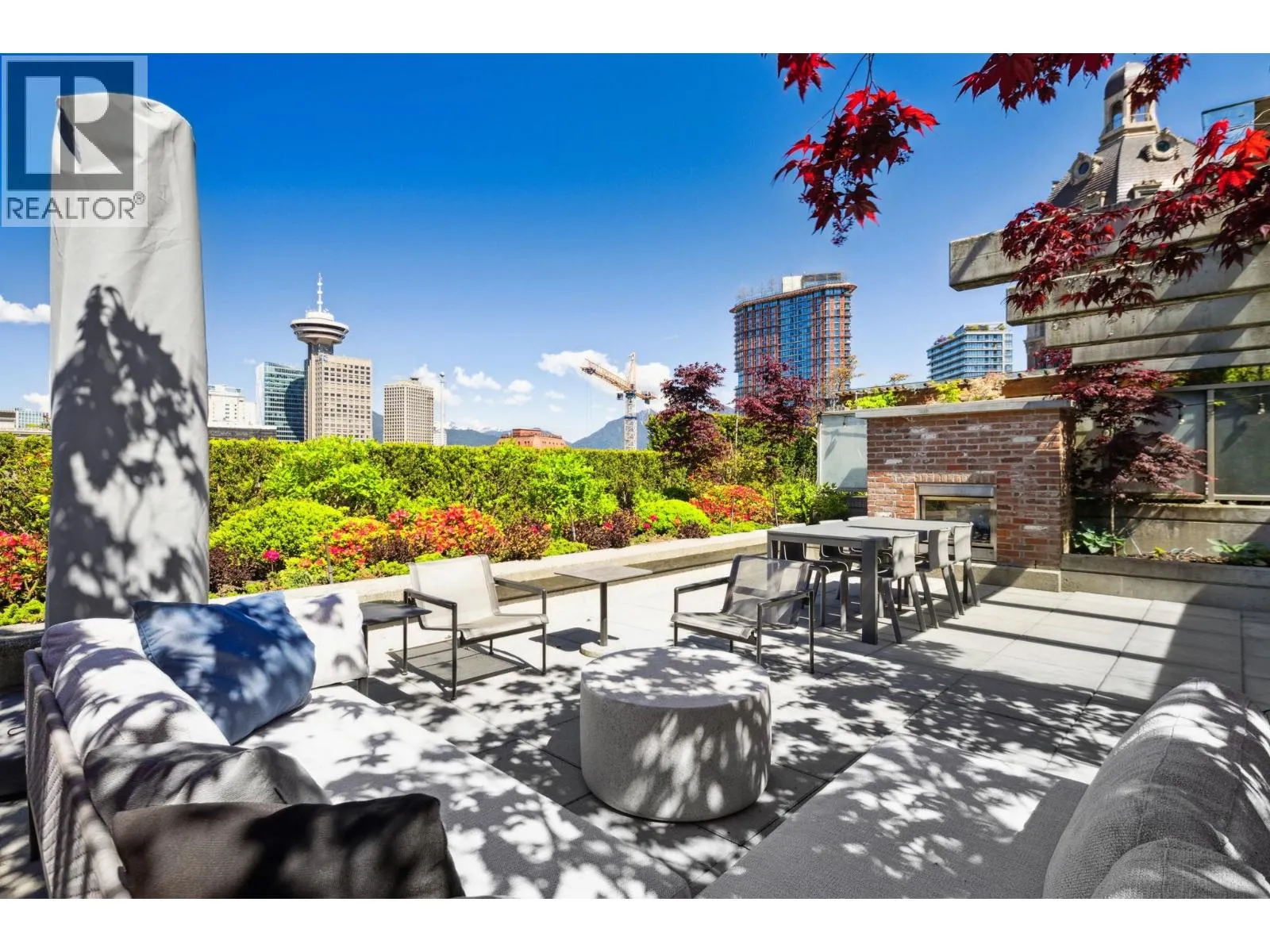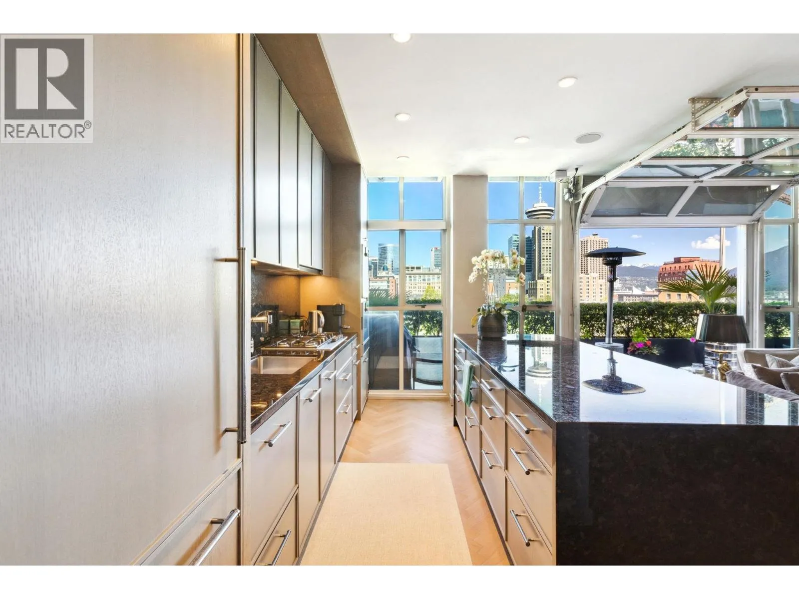 Experience elevated indoor-outdoor living at The Crane. This renovated sanctuary features a gourmet kitchen with Gaggenau/Subzero appliances, custom cabinetry, granite counters, and a wine fridge. A garage-style door opens to 300+ square ft of patio space. Inside, herringbone oak floors and a Murphy bed offer style and flexibility. The second bath includes a steam shower, while the spacious primary boasts a marble fireplace and spa-like ensuite with soaker tub and marble finishes. The 600+ square ft rooftop patio offers stunning North Shore and downtown views. (id:27476)