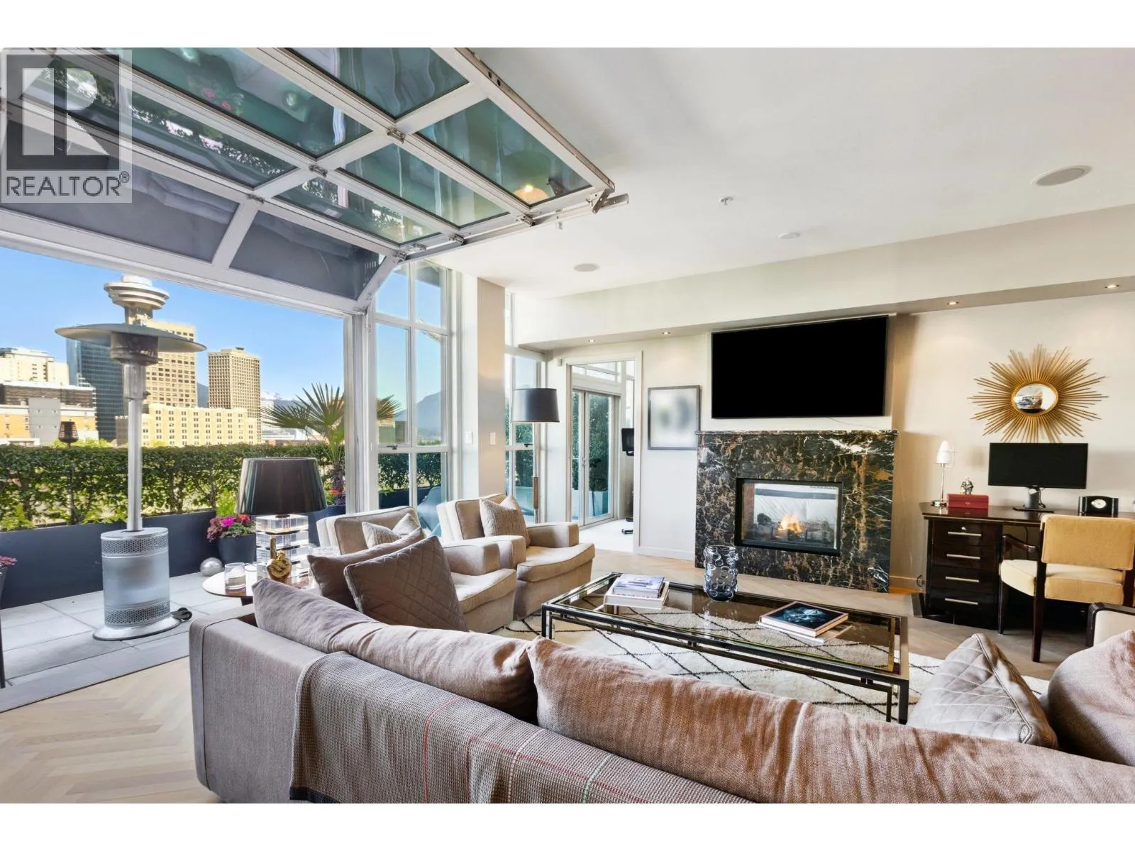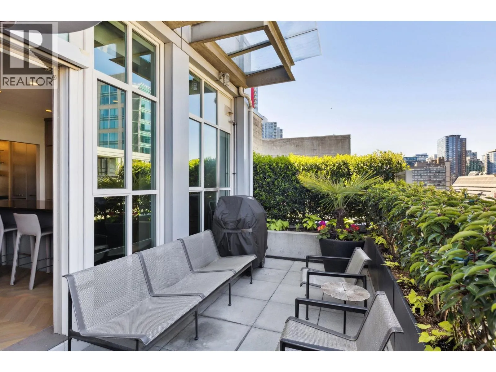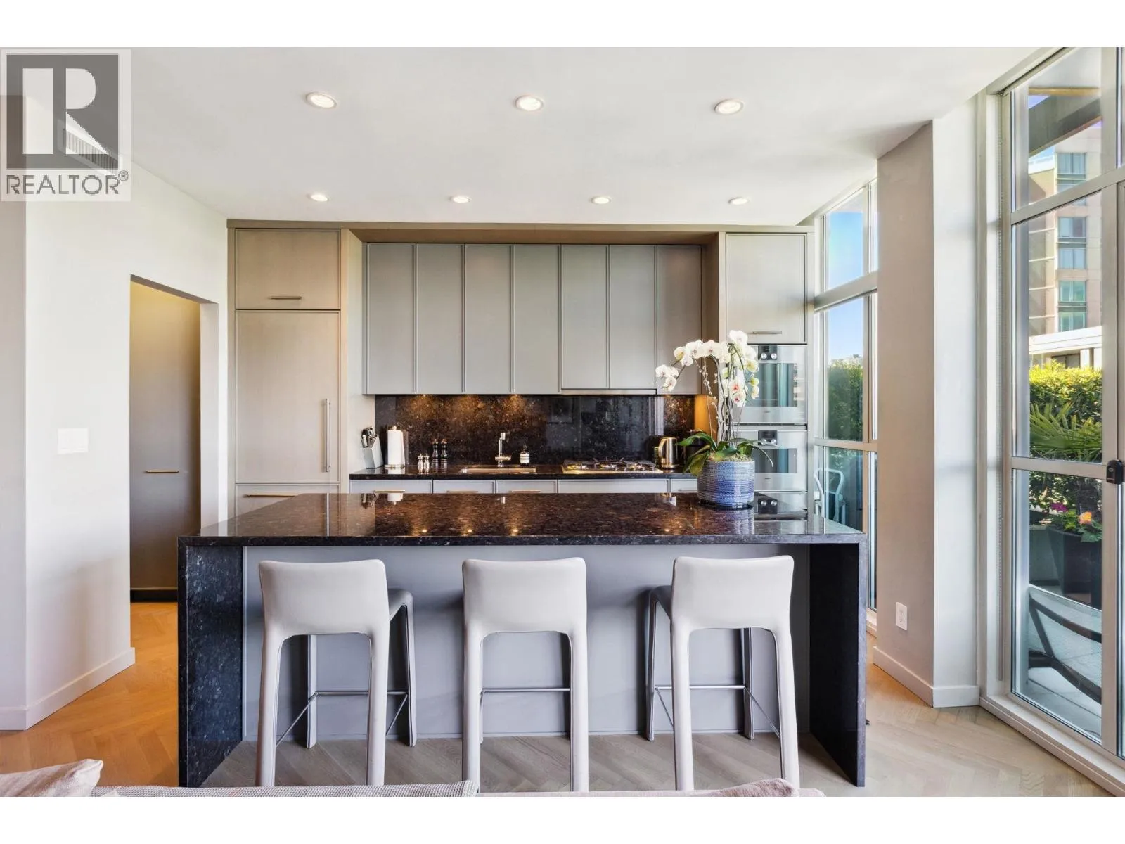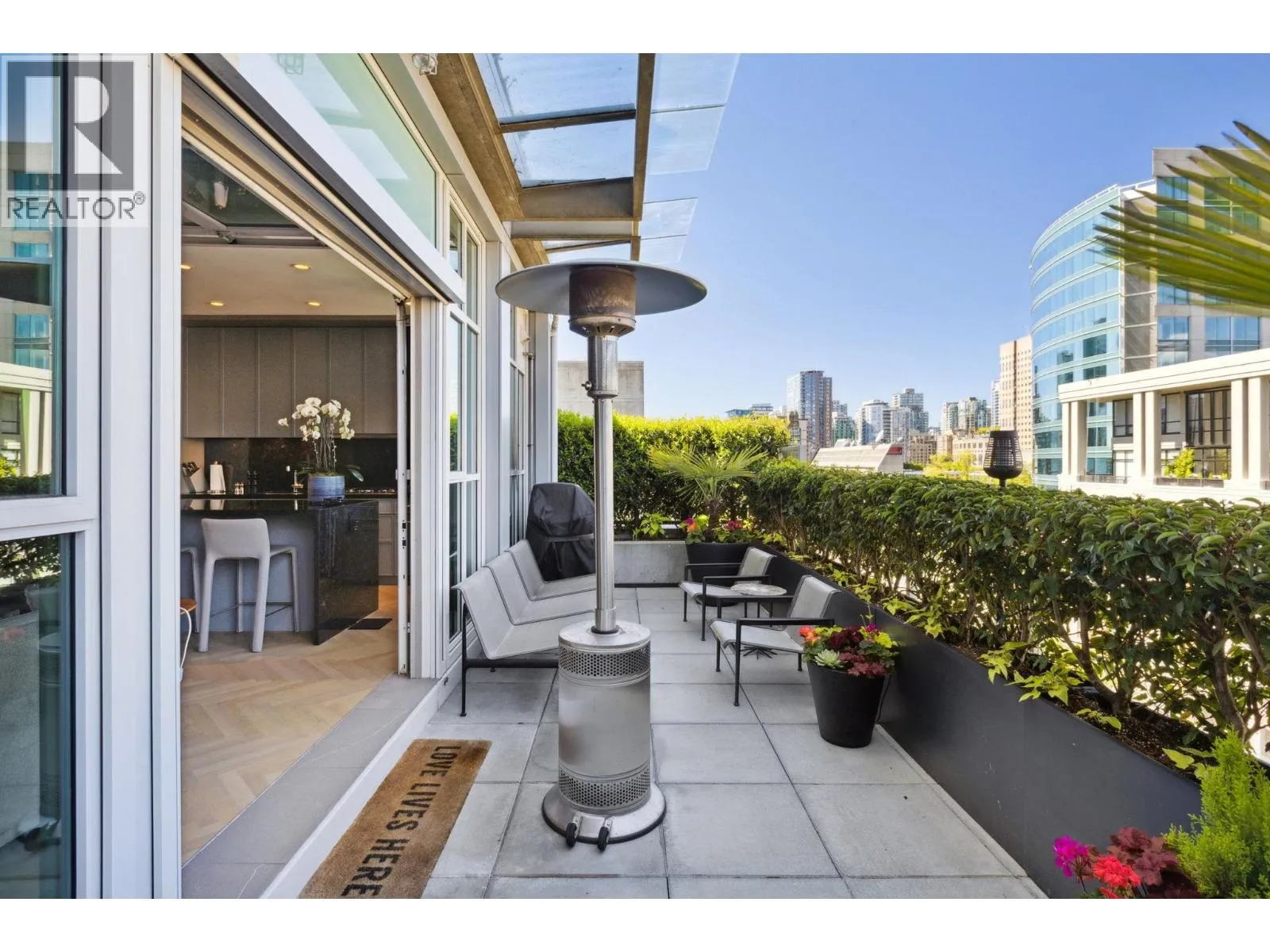 Experience elevated indoor-outdoor living at The Crane. This renovated sanctuary features a gourmet kitchen with Gaggenau/Subzero appliances, custom cabinetry, granite counters, and a wine fridge. A garage-style door opens to 300+ square ft of patio space. Inside, herringbone oak floors and a Murphy bed offer style and flexibility. The second bath includes a steam shower, while the spacious primary boasts a marble fireplace and spa-like ensuite with soaker tub and marble finishes. The 600+ square ft rooftop patio offers stunning North Shore and downtown views. (id:27476)
