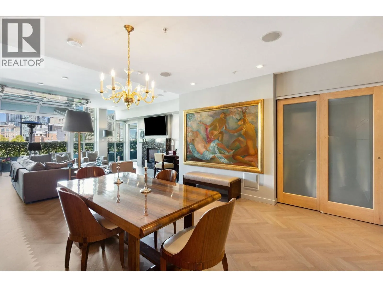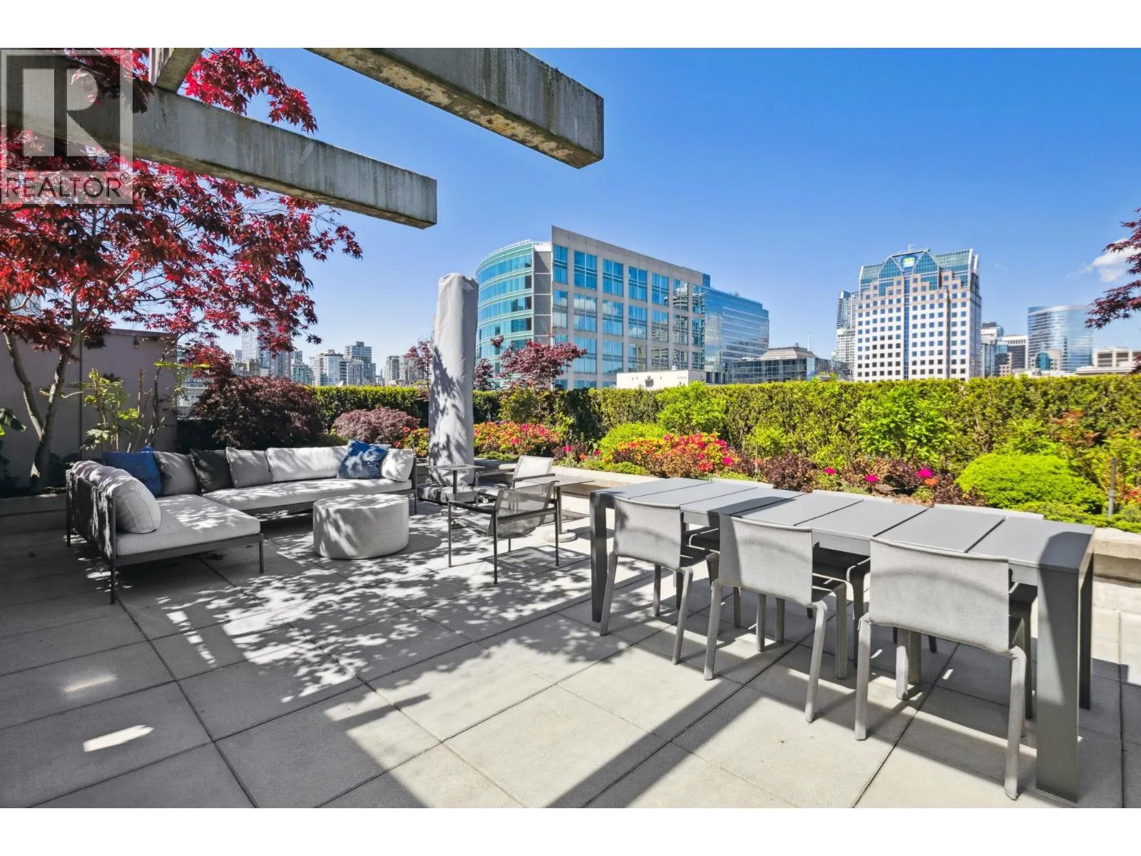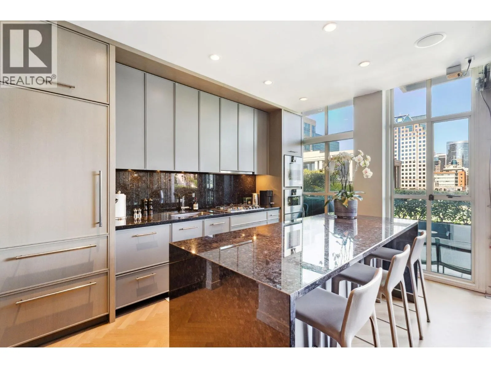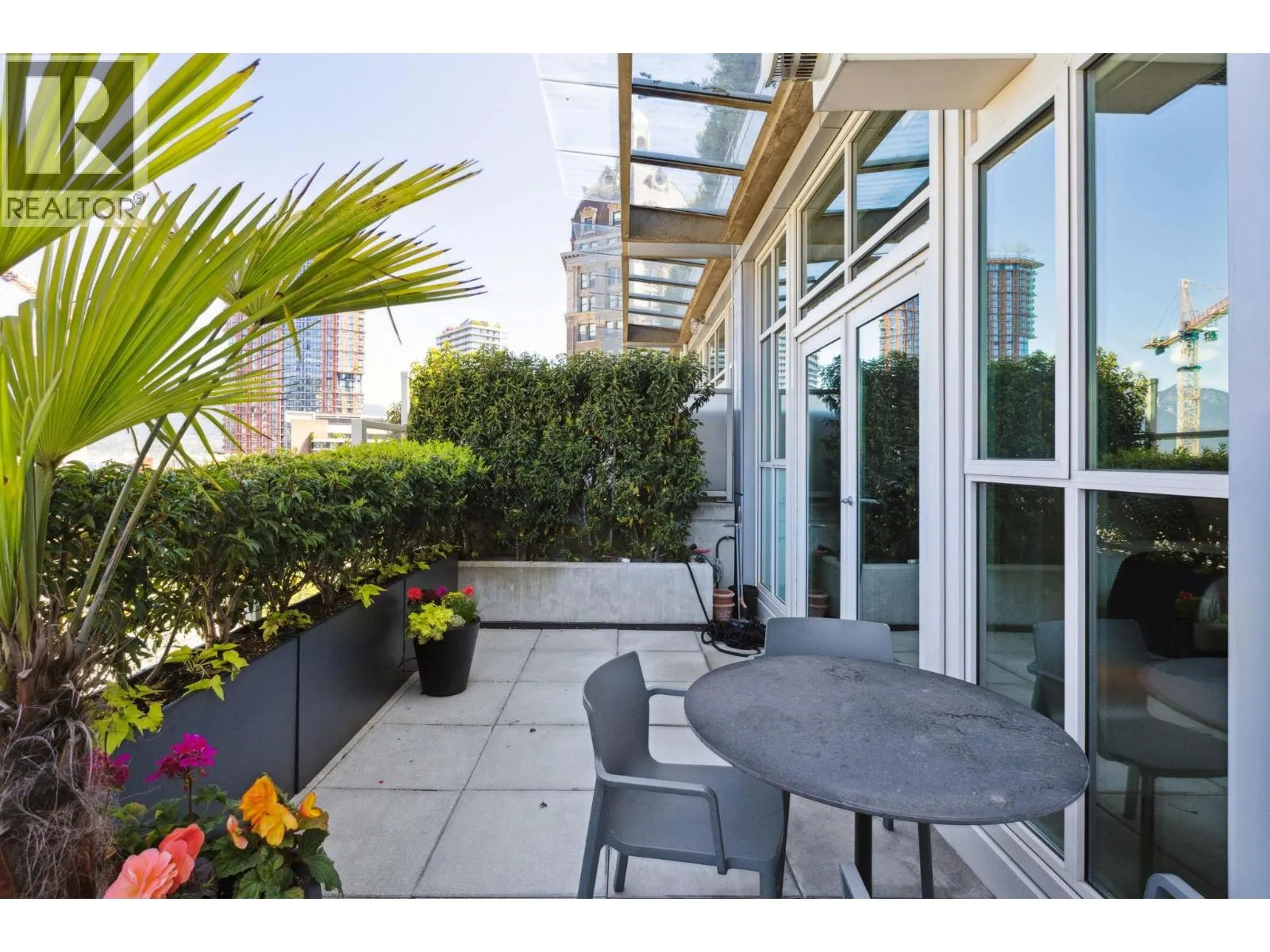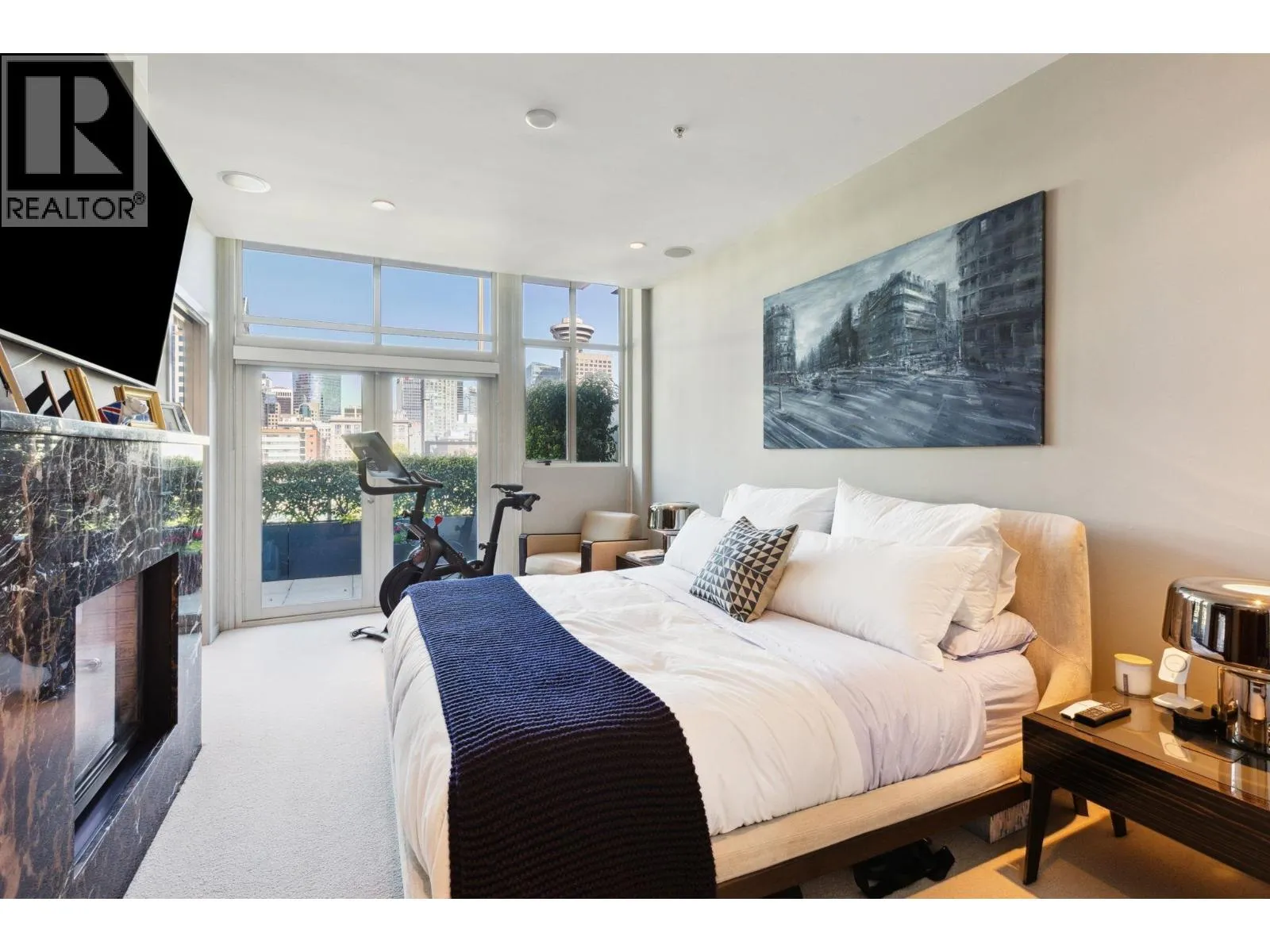 Experience elevated indoor-outdoor living at The Crane. This renovated sanctuary features a gourmet kitchen with Gaggenau/Subzero appliances, custom cabinetry, granite counters, and a wine fridge. A garage-style door opens to 300+ square ft of patio space. Inside, herringbone oak floors and a Murphy bed offer style and flexibility. The second bath includes a steam shower, while the spacious primary boasts a marble fireplace and spa-like ensuite with soaker tub and marble finishes. The 600+ square ft rooftop patio offers stunning North Shore and downtown views. (id:27476)