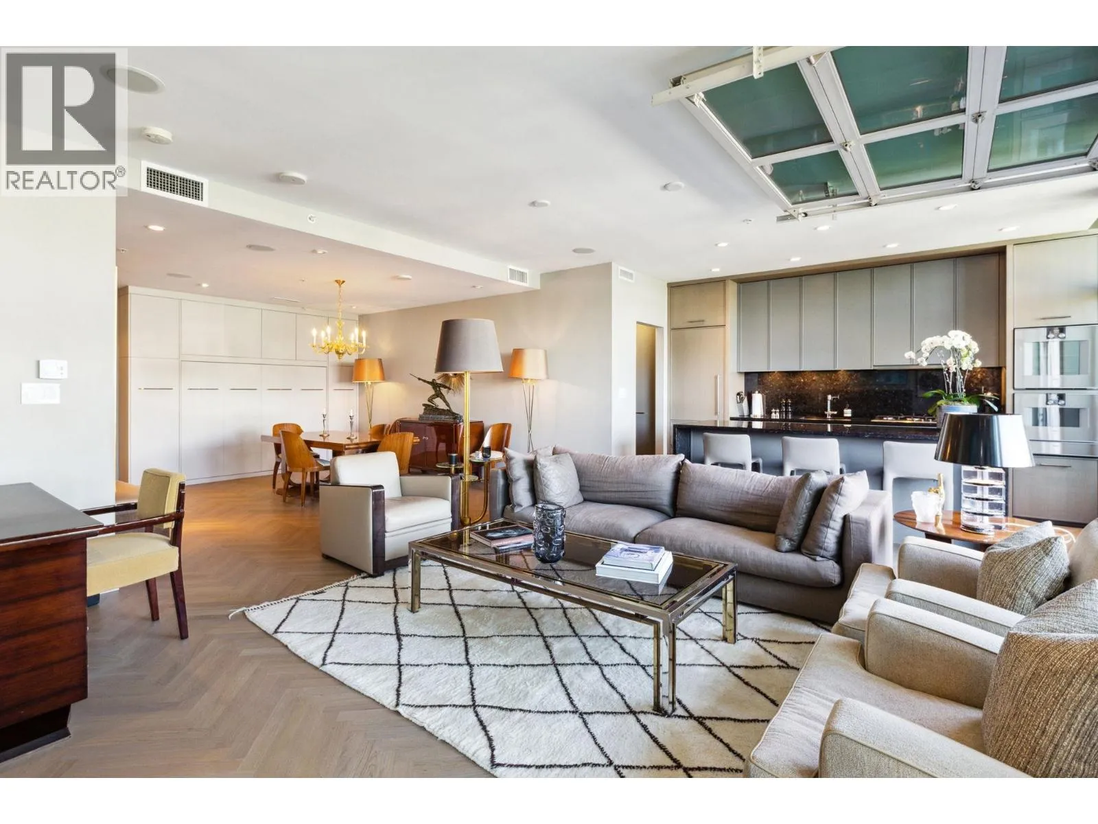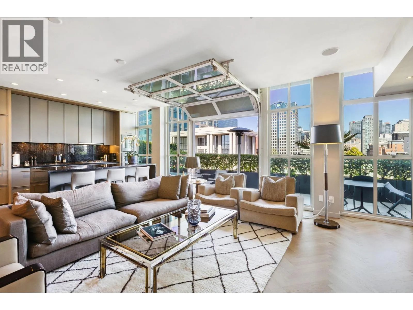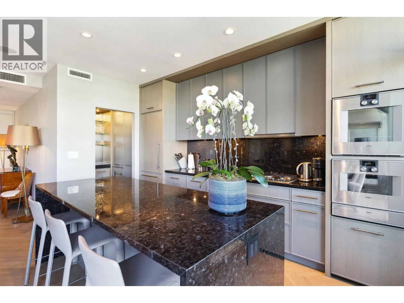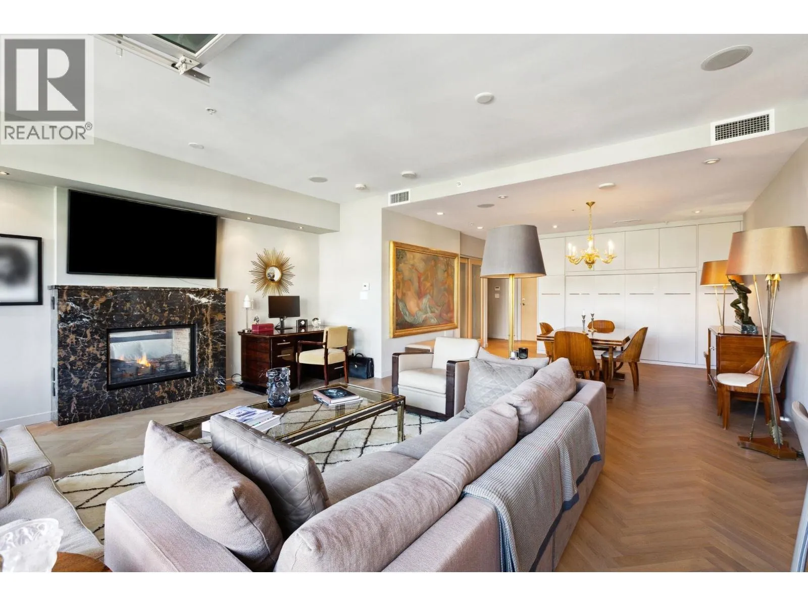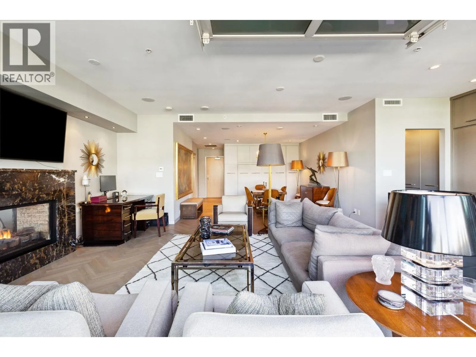 Experience elevated indoor-outdoor living at The Crane. This renovated sanctuary features a gourmet kitchen with Gaggenau/Subzero appliances, custom cabinetry, granite counters, and a wine fridge. A garage-style door opens to 300+ square ft of patio space. Inside, herringbone oak floors and a Murphy bed offer style and flexibility. The second bath includes a steam shower, while the spacious primary boasts a marble fireplace and spa-like ensuite with soaker tub and marble finishes. The 600+ square ft rooftop patio offers stunning North Shore and downtown views. (id:27476)