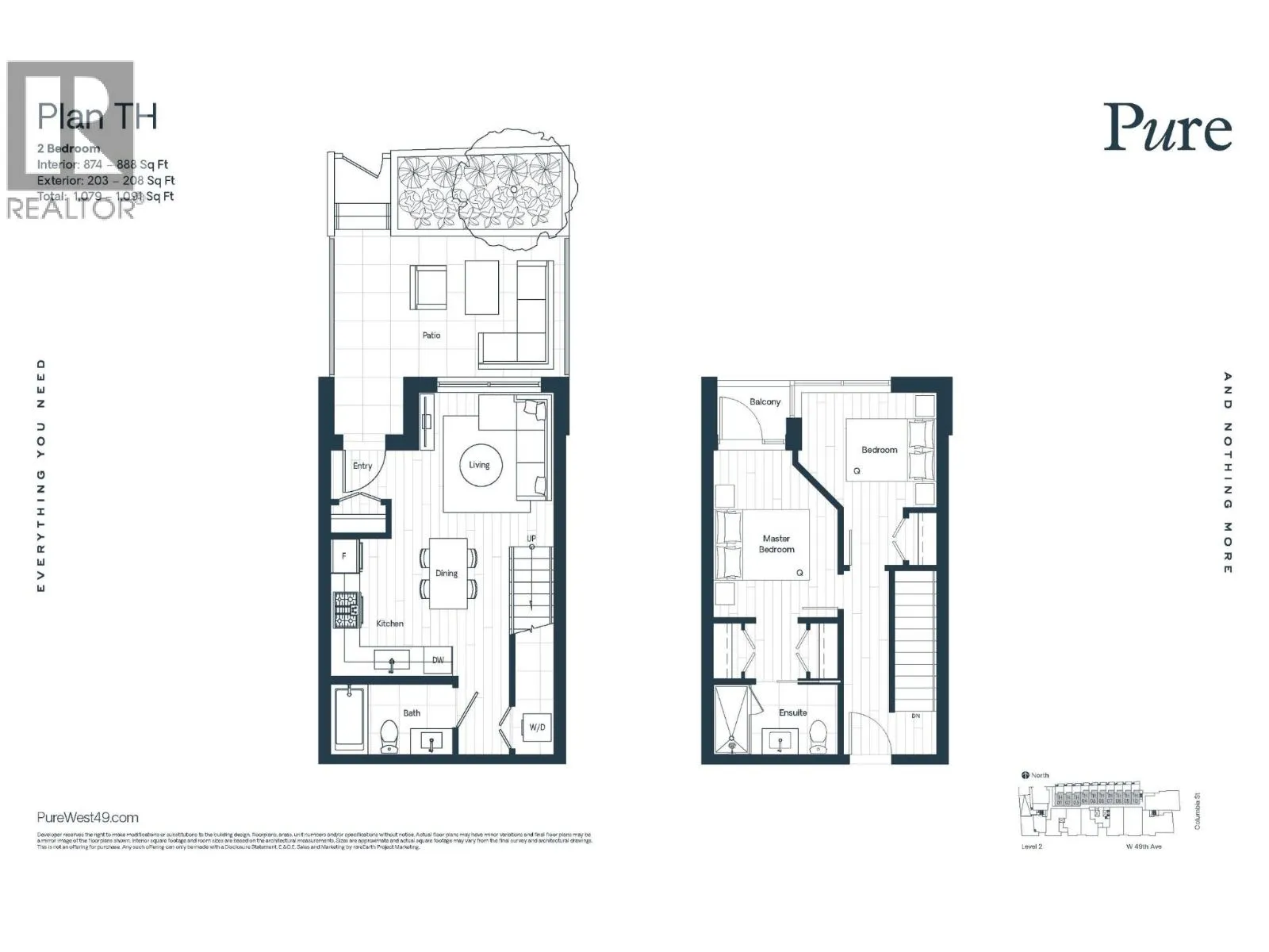 Introducing Pure, a 'biophilic centered' designed condo development with pure intention. Pure is centrally located at 49th & Columbia, across from the popular Langara Park, in the West Side´s rapidly evolving Cambie corridor. Coming home never felt this good. Comfort and functionality have been prioritized above all else. Our homes offer two nature infused colour palettes inspired by water and earth that give interiors a warm, seamless feel. This concrete Townhome plus EV ready parking features 2bed2bath on 2 levels. Easy access to your storage room which is conveniently located on the same floor. Contact us for our buyer's incentives. Completion Spring 2026 (id:27476)
