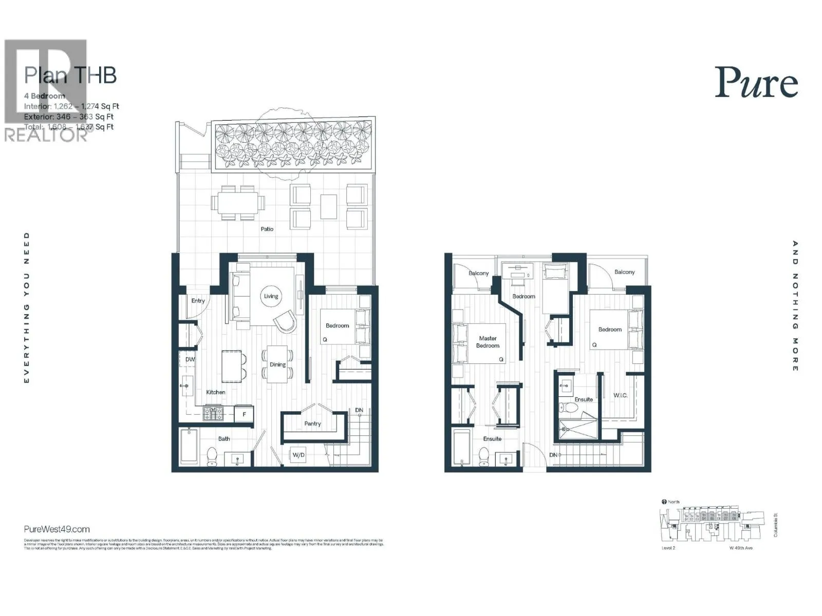 Introducing Pure, a 'biophilic centered' designed condo development with pure intention. Pure is centrally located at 49th & Columbia, across from the popular Langara Park, in the West Side´s rapidly evolving Cambie corridor, steps to the Skytrain and the New Oakridge Mall. Coming home never felt this good. Comfort and functionality have been prioritized above all else. Our homes offer two nature infused colour palettes inspired by water and earth that give interiors a warm, seamless feel. This end unit Townhouse features over 1600sf of spacious living on 2 levels. With 4bed 3bath, 1 EV ready Parking, it's the perfect home for a growing family. Easy access to your storage room which is conveniently located on the same floor. Contact us for our buyer's incentives. Completion Spring 2026. (id:27476)