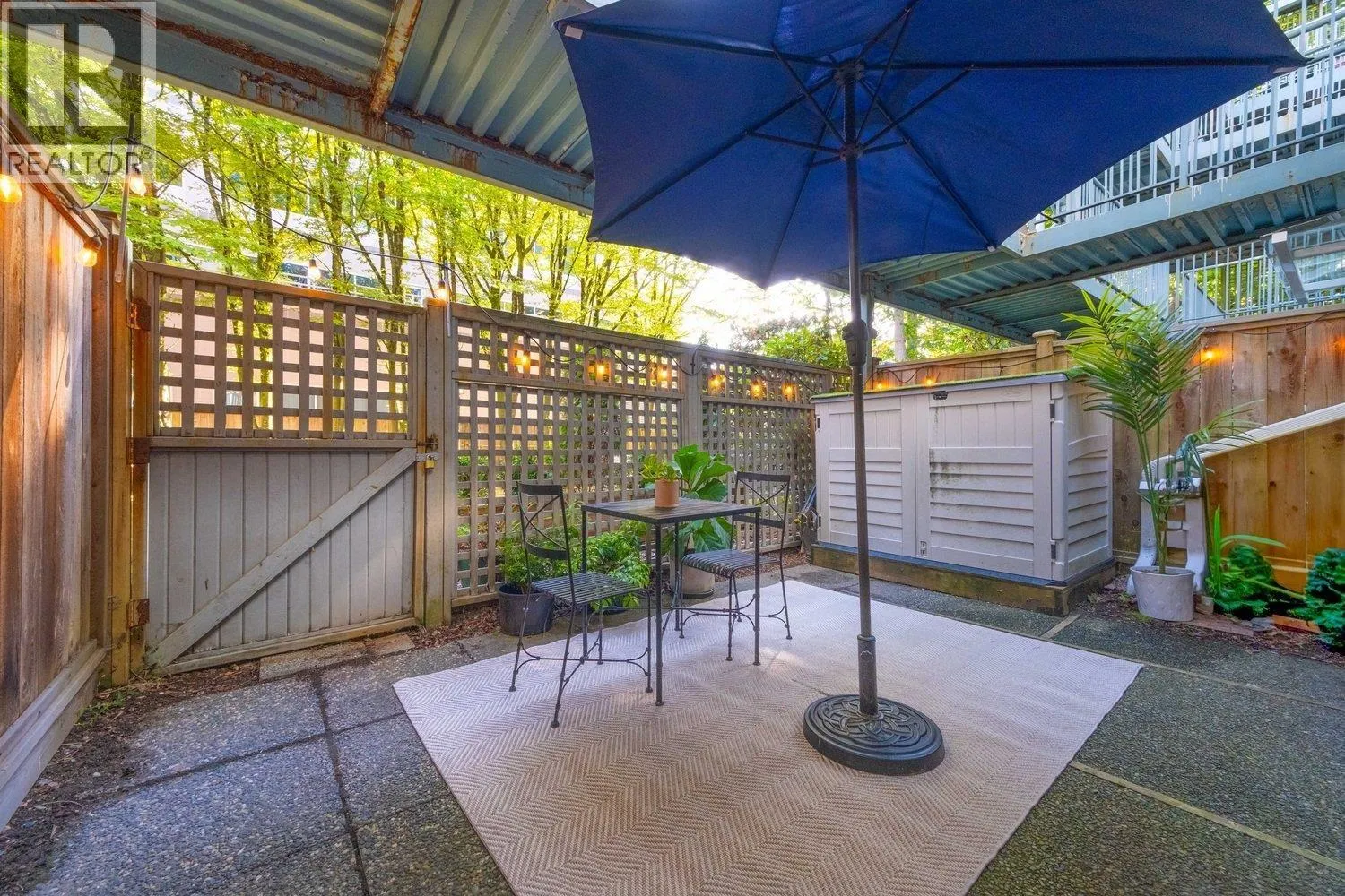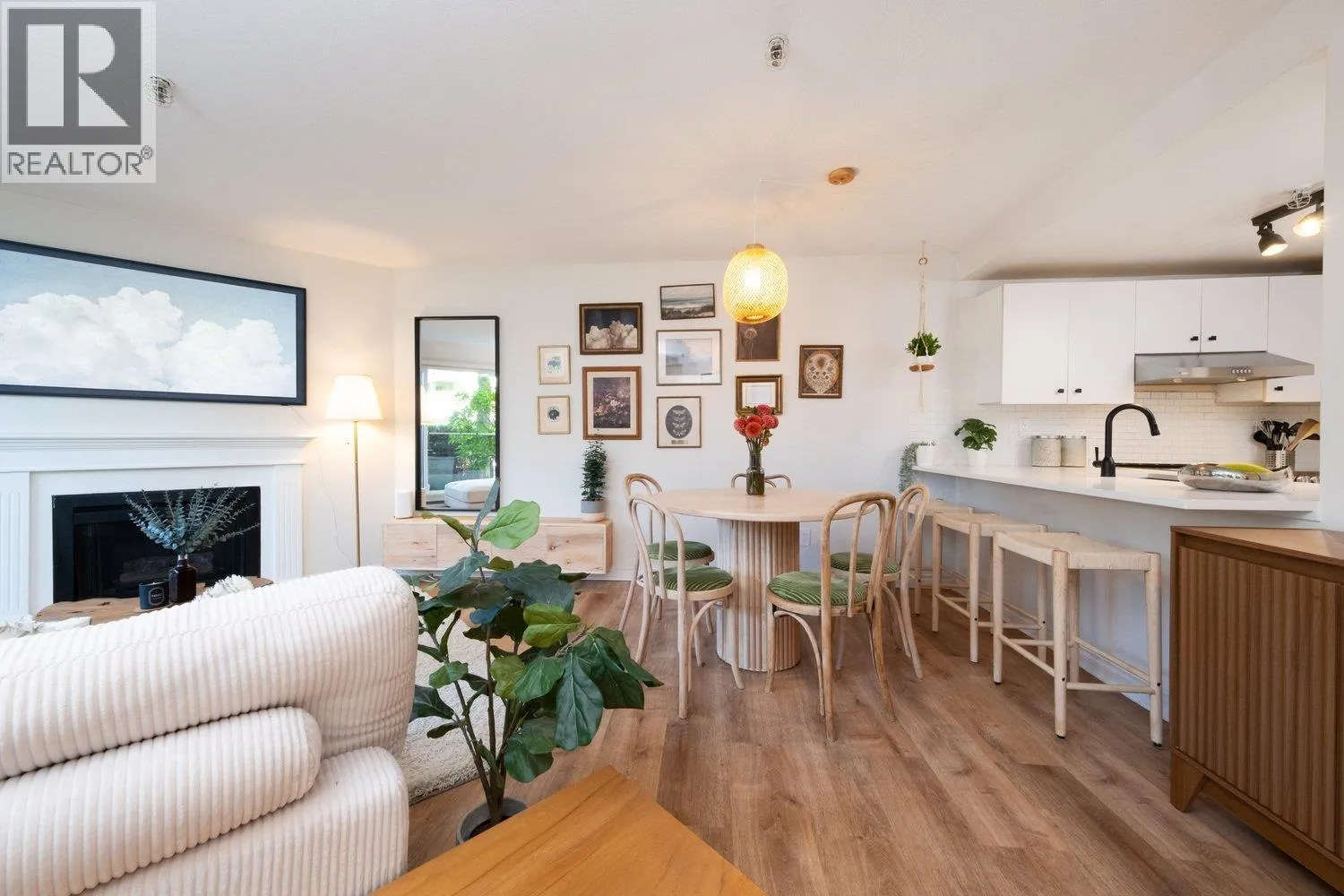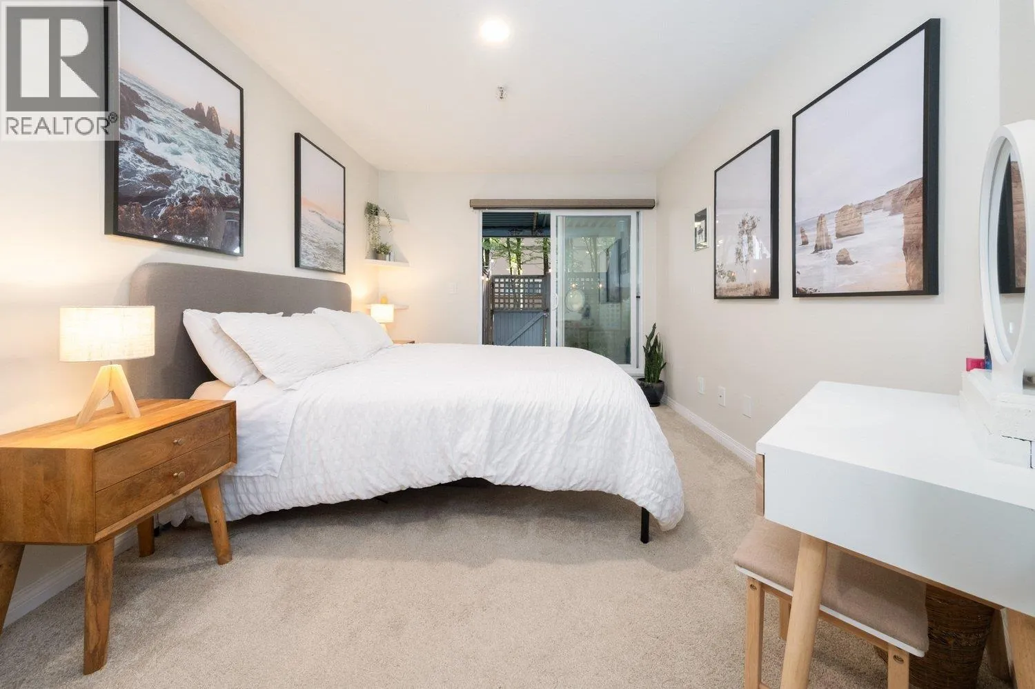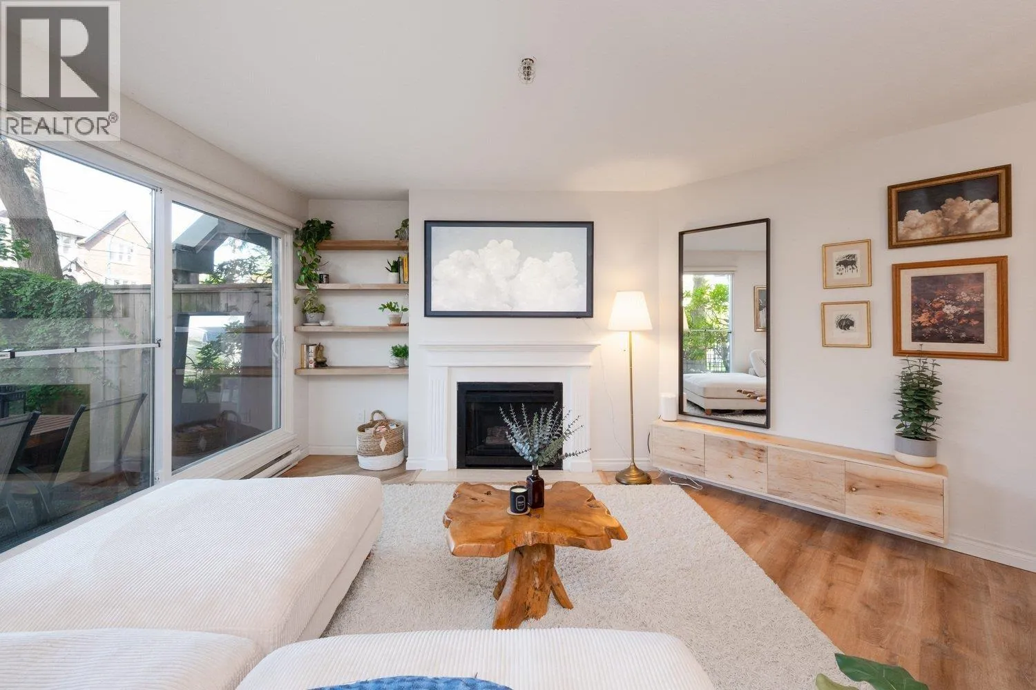 W/ its own private entry, 2-beds, 2-baths, & 2 patios, this ground floor unit boasts a highly functional open-concept layout with 910 sqft of interior space, + 543 sqft of outdoor space. Updated throughout, with wide-plank flooring & sophisticated finishings. The bright kitchen features sleek cabinetry, S/S appliances, & breakfast bar. The living room includes floating shelving, gas F/P, & sliding doors leading to the front patio & providing seamless integration of indoor/outdoor living. The generous primary bed offers a walk-through closet, spa-like ensuite, & sliding doors to rear S-facing patio. The secondary bed & bath are similarly well appointed. Includes ample in-suite storage, in-suite laundry, patio storage shed & U/G parking. OPEN HOUSE: WED. NOV. 19 @ 5-6pm & SAT. NOV. 22 @ 2-4pm (id:27476)