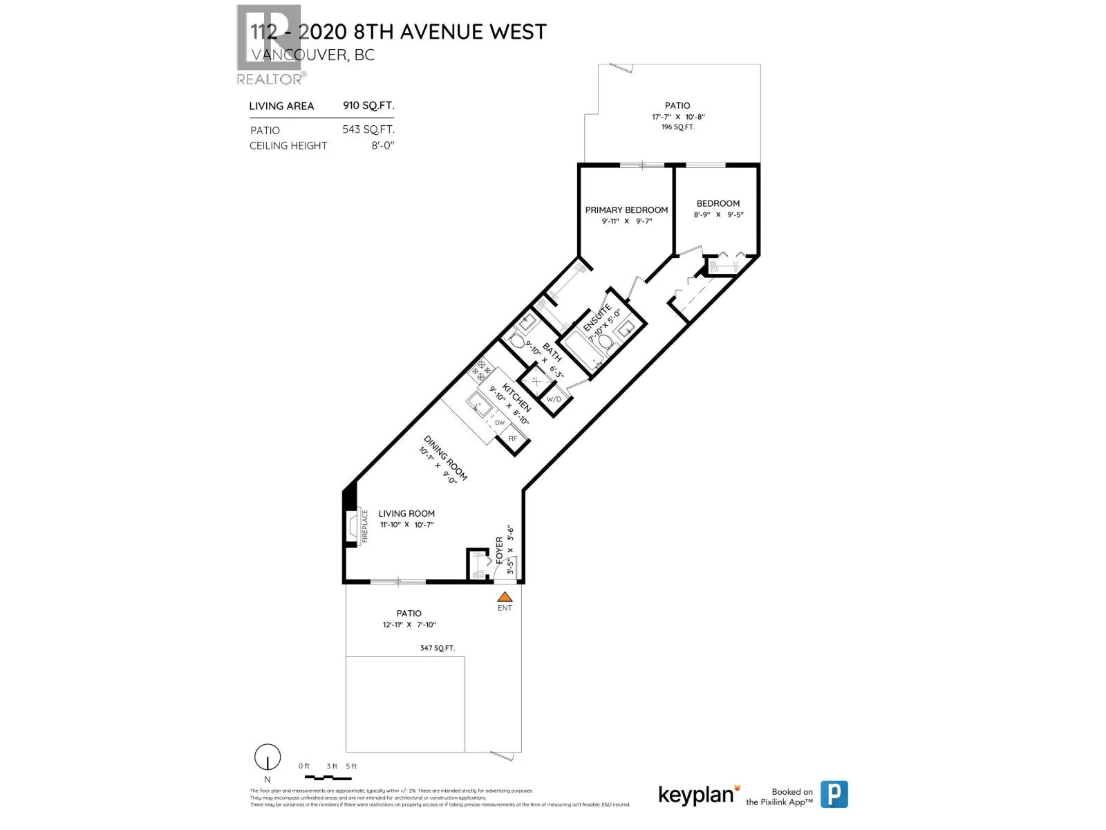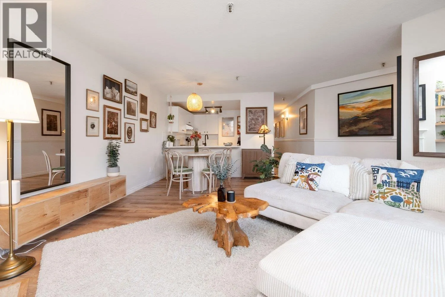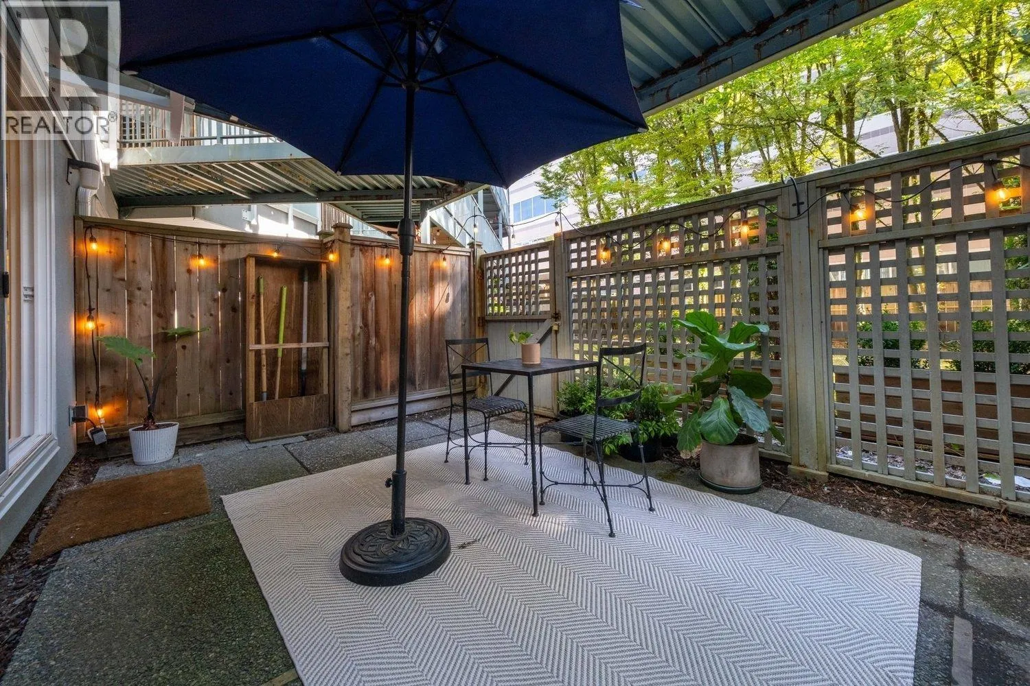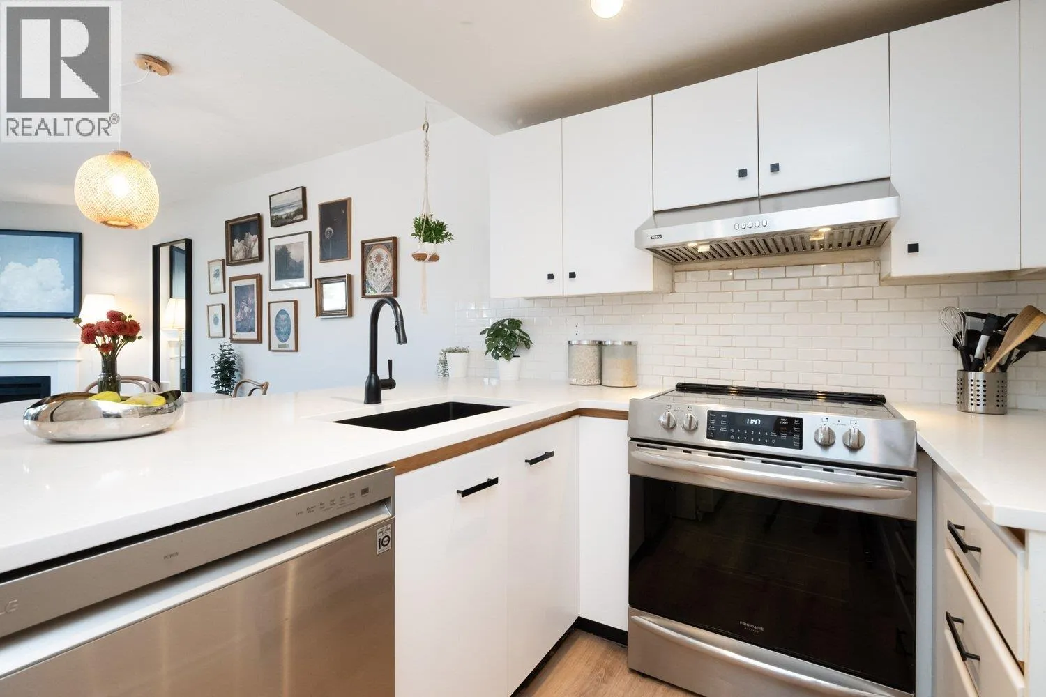 W/ its own private entry, 2-beds, 2-baths, & 2 patios, this ground floor unit boasts a highly functional open-concept layout with 910 sqft of interior space, + 543 sqft of outdoor space. Updated throughout, with wide-plank flooring & sophisticated finishings. The bright kitchen features sleek cabinetry, S/S appliances, & breakfast bar. The living room includes floating shelving, gas F/P, & sliding doors leading to the front patio & providing seamless integration of indoor/outdoor living. The generous primary bed offers a walk-through closet, spa-like ensuite, & sliding doors to rear S-facing patio. The secondary bed & bath are similarly well appointed. Includes ample in-suite storage, in-suite laundry, patio storage shed & U/G parking. OPEN HOUSE: WED. NOV. 19 @ 5-6pm & SAT. NOV. 22 @ 2-4pm (id:27476)