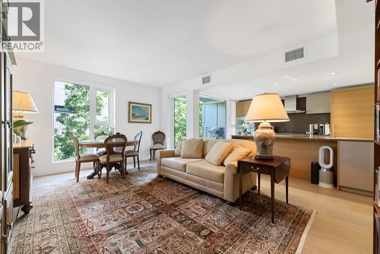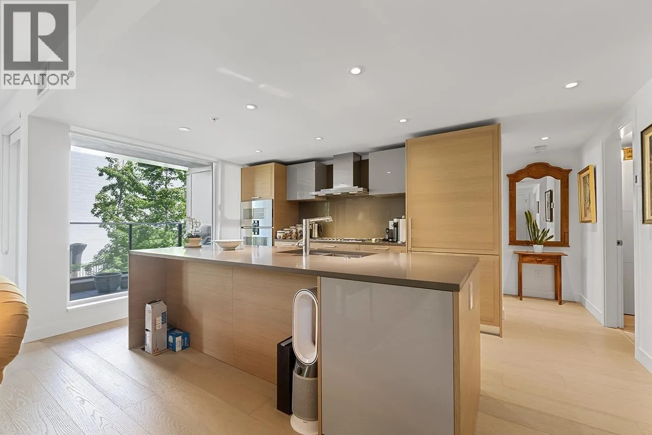 Welcome to this luxurious apartment in the beautiful Kerrisdale area. This three-bedroom, two-bathroom unit offers a high-end, comfortable living experience, designed by a renowned designer. The entire apartment features hardwood floors and top-of-the-line Gaggenau appliances. The bright open-plan kitchen creates a cozy living atmosphere. The flex room has been transformed into a third room, providing additional living space. Located on a quiet inner street, it offers a very peaceful and comfortable environment. Amenities include 7 days concierge, exercise centre, garden, and outdoor swimming pool. 15 minutes drive to downtown and 10 minutes drive to Richmond. A MUST-SEE! (id:27476)