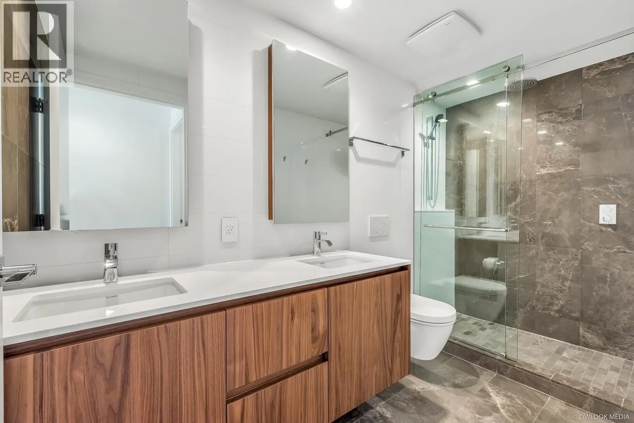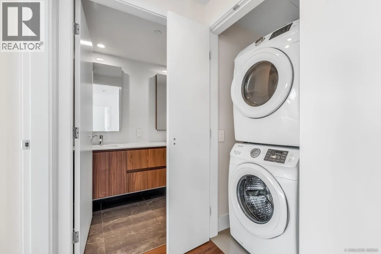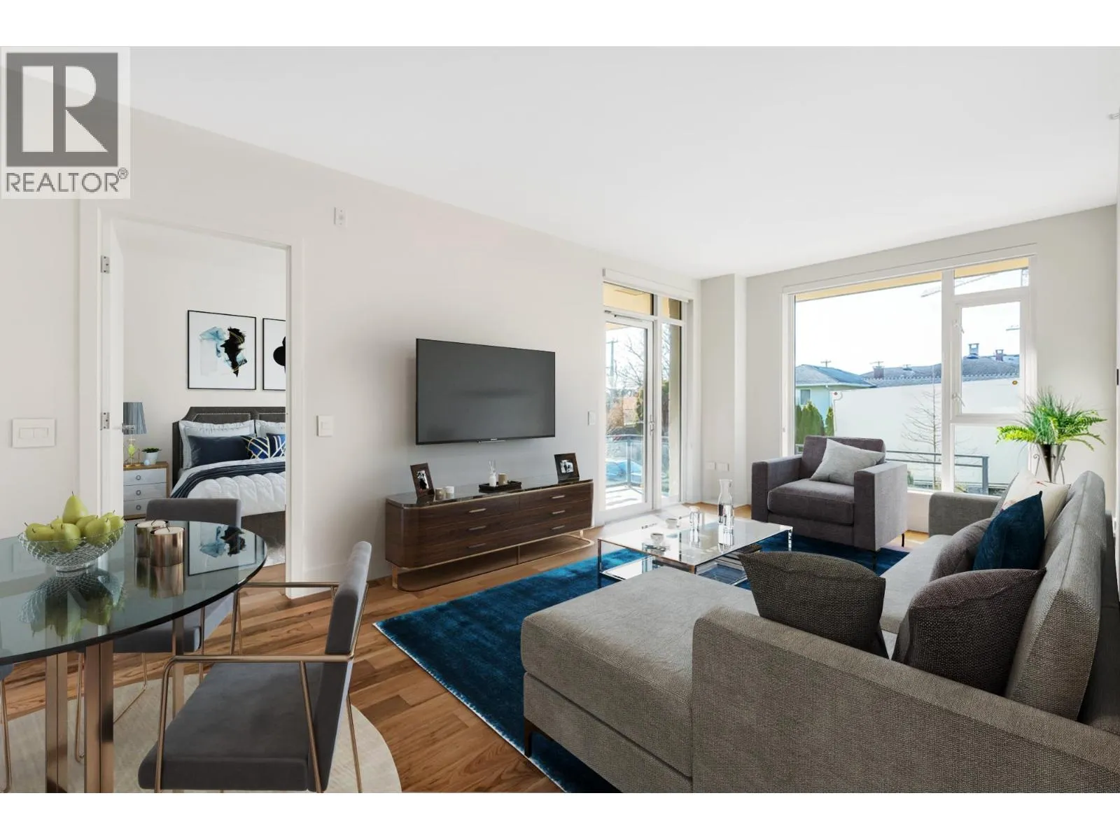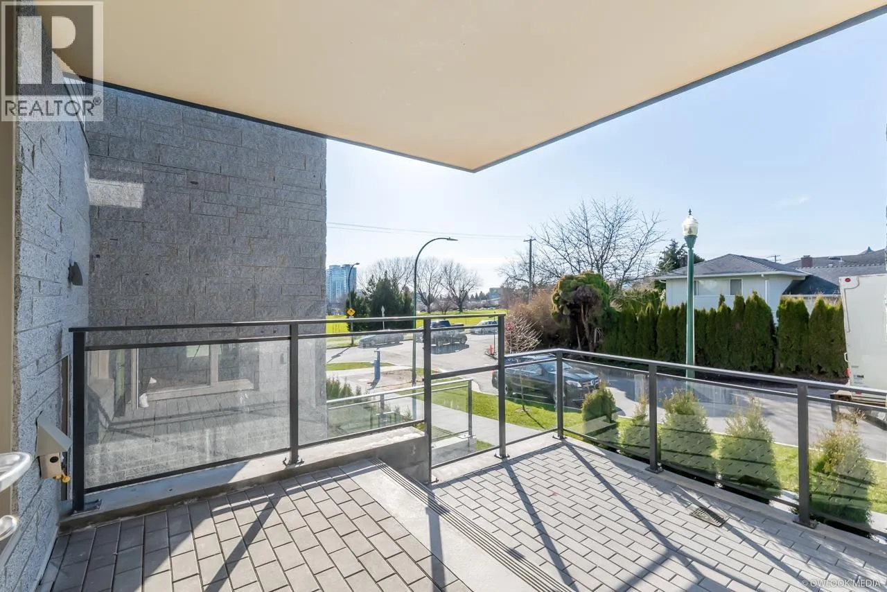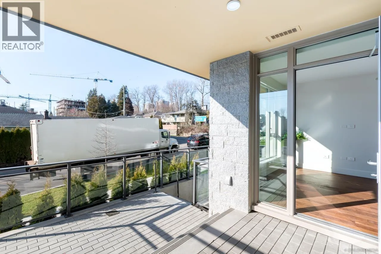 Belpark by Intracorp - a luxury concrete development located in Westside Vancouver, steps to Langara Golf Course. This nearly 1100 SF 2 Bed, 2 Bath + Den is a rare find, featuring a 222 SF west-facing PATIO & offering a walk-up TOWNHOUSE feel with its own private entrance or thru the building. Excellent layout, no wasted space. Bdrm's are situated on opposite ends for privacy. Italian-inspired kitchen features imported Italian cabinets, Gaggenau Appl, steam oven, wall oven, full-height wine cooler & 5-burner GAS cooktop. Spa bath complete w/marble accent walls, heated marble floors, wall-hung toilet, Dornbracht fixtures, deep soaker tub & rainshower fixtures. Equipped with A/C climate control for that perfect year-round temperature & HW flooring thru-out. Includes HUGE EV Parking & Locker (id:27476)