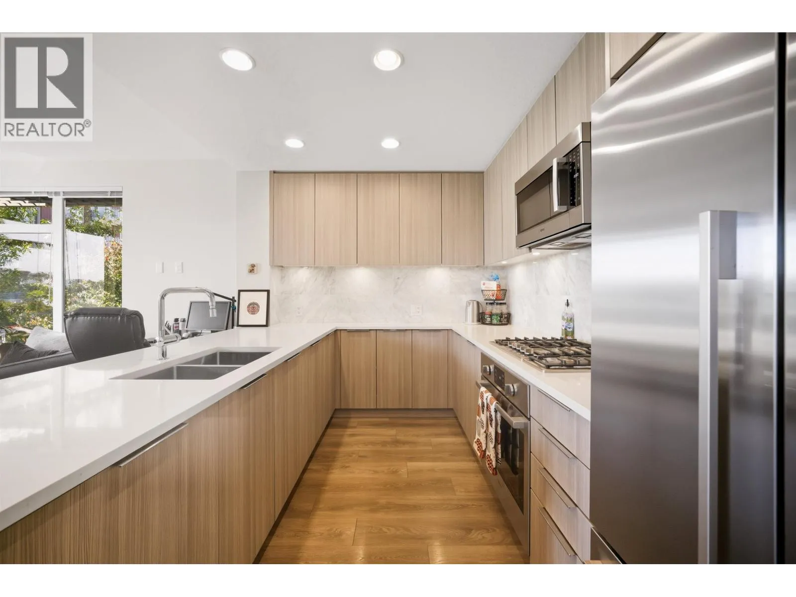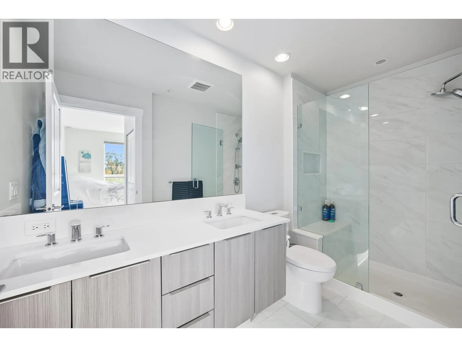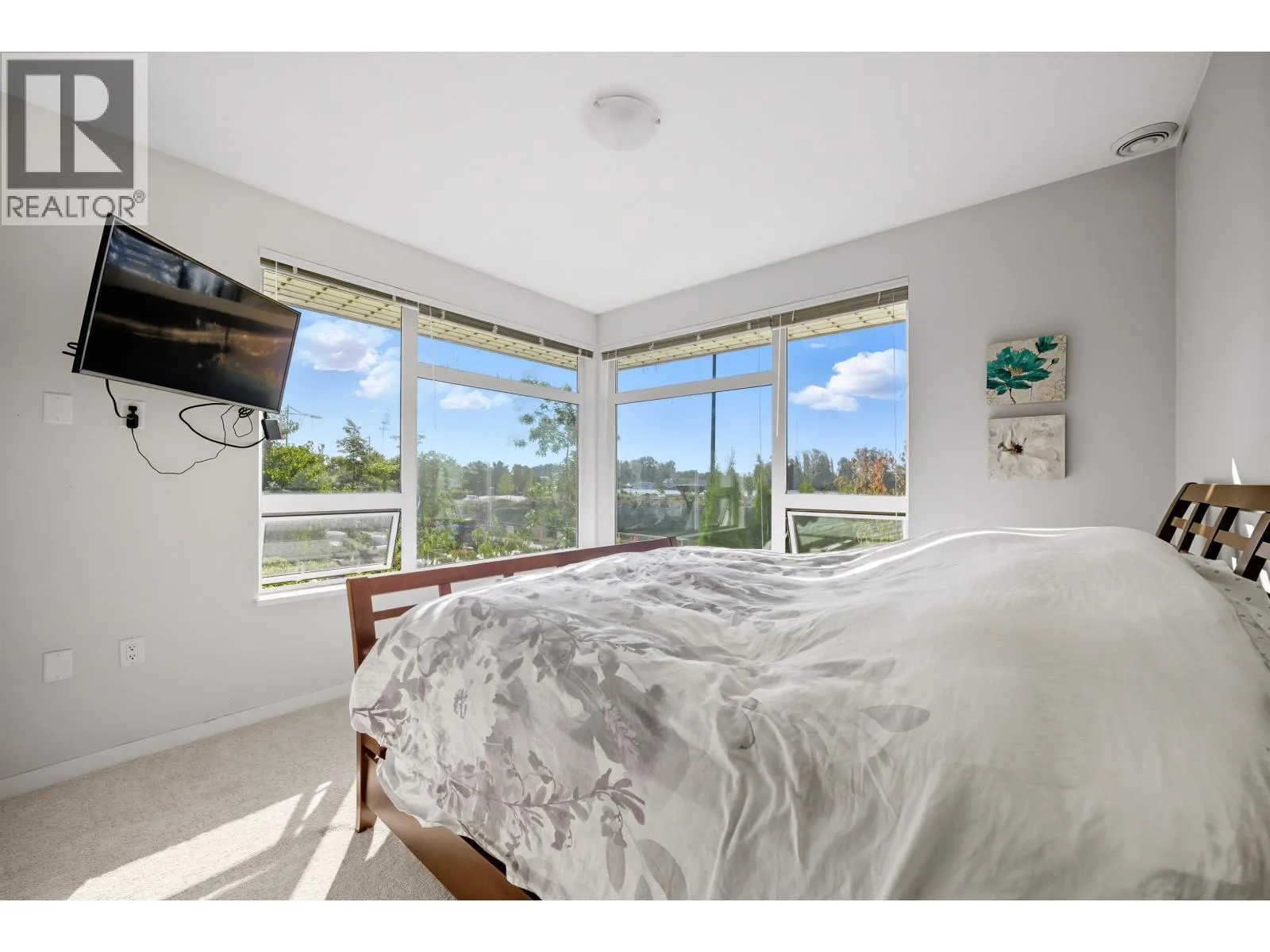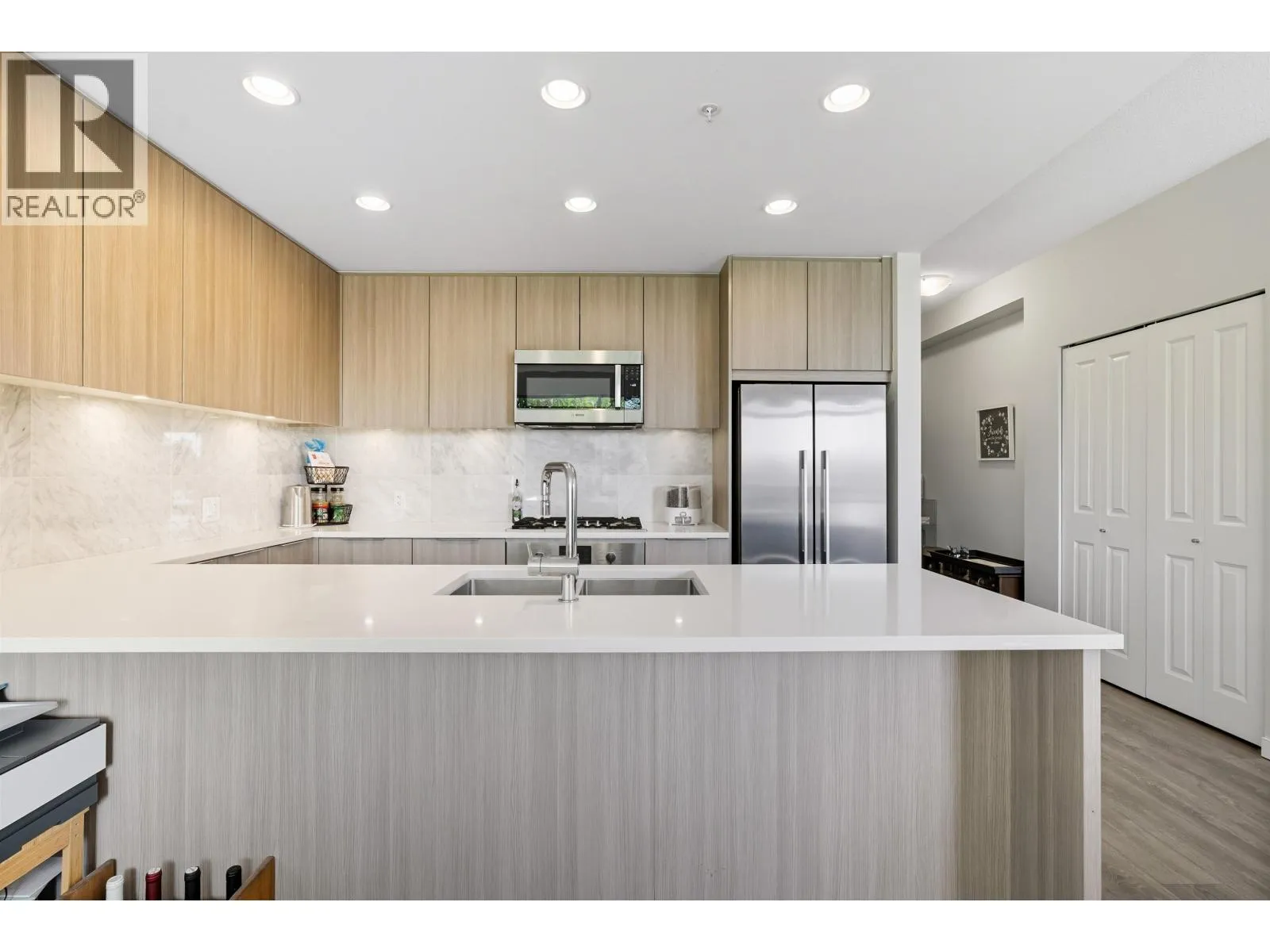 Welcome to R&R by Polygon built in 2018 in the River District. This modern, open concept CORNER UNIT is over 1,000 sqft with 2 bed & 2-bath PLUS a den/flex room/pantry & features floor to ceiling windows. The home has an open layout, in-floor radiant heating, & laminate flooring throughout. The gourmet kitchen features stainless steel appliances, gas range & quartz countertops with an island which is great for entertaining. The primary bedroom fits a king-sized bed & has a walk-in closet & a spa-like ensuite with double vanities. The pet-friendly building offers a fully equipped fitness center & 1 parking stall. It is located within a master-planned community with a future elementary school and community center and is steps from scenic trails, parks, a grocery store, restaurants. (id:27476)