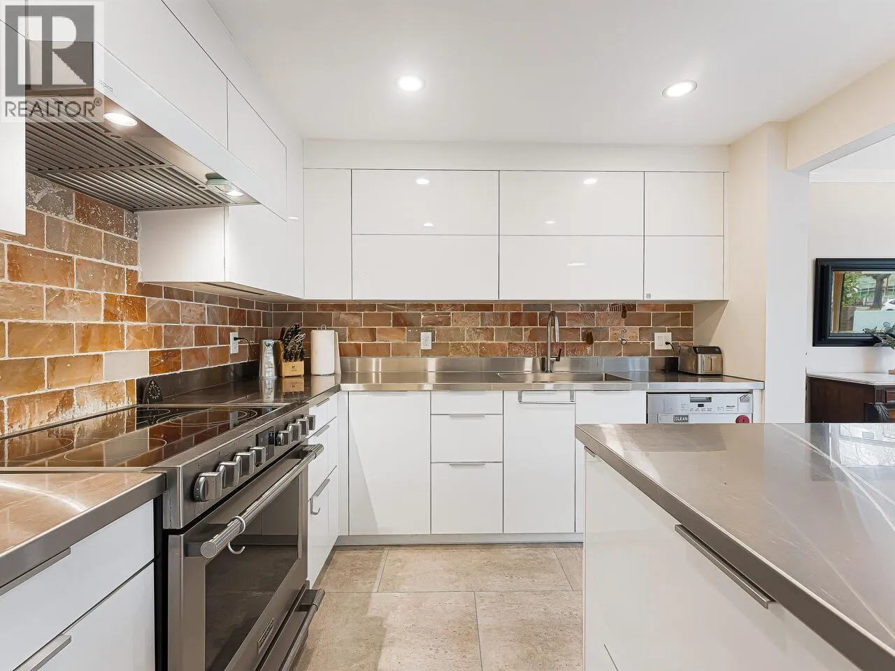 AIR-CONDITIONED massive townhouse, in the heart of Fairview. With almost 2000sf of living space & 844sf of outdoor space, this home is a 1 min walk to City Square Mall, 5 minute walk to Broadway City Hall Station, 8 min walk to VGH & 9 min walk to Viji's Restaurant. The location can not be beat. Renovated with high end features, like push to open Leicht cabinetry, Miele appliances, integrated fridge & freezer drawers and soft/surround lighting, which induce calmness & tranquility. The love & attention to detail can be seen all over the home. Front & back (private) outdoor space, as well as 2 balconies give plenty of options for enjoying beautiful summer days & evenings. As well, the private double car garage with plug-in EV charging capabilities keep your car(s) & equipment safe & sound. The A/C units also provide heat in the winter & with units in each room & the living space, you'll feel comfort all year long. Book an appointment & come see for yourself! (id:27476)