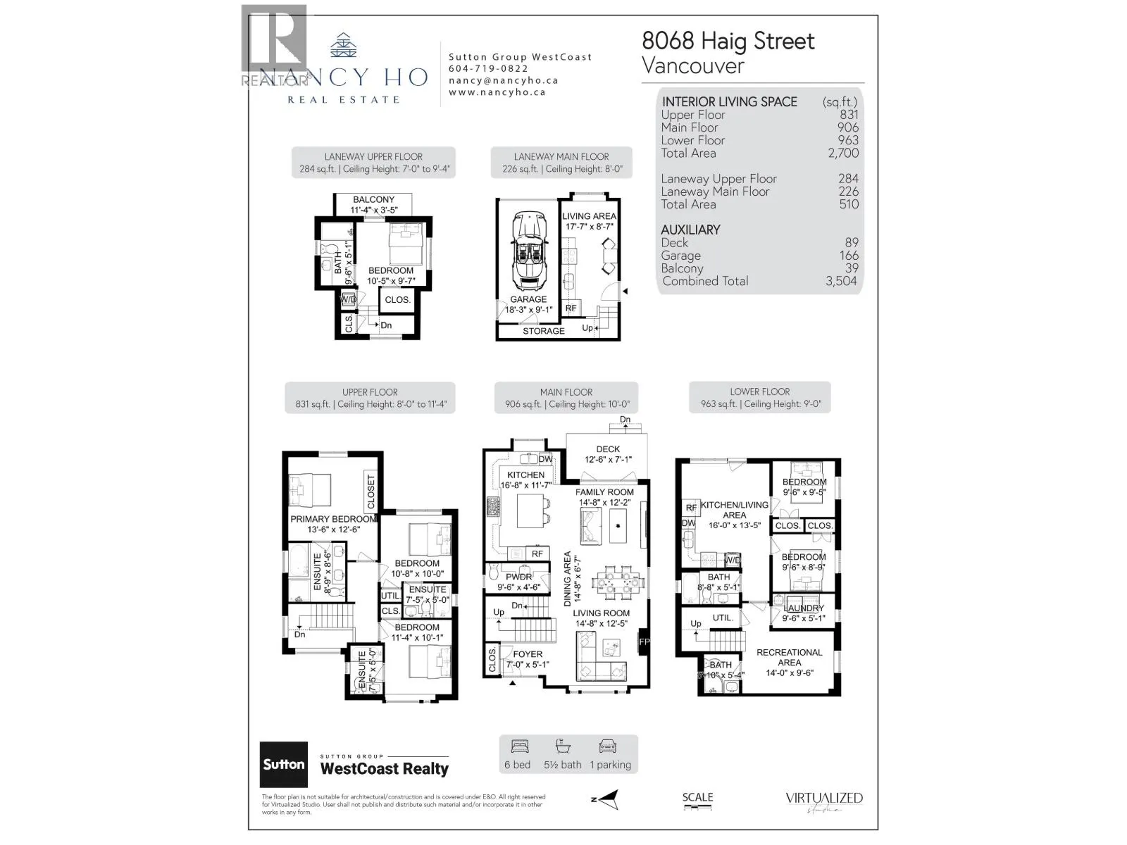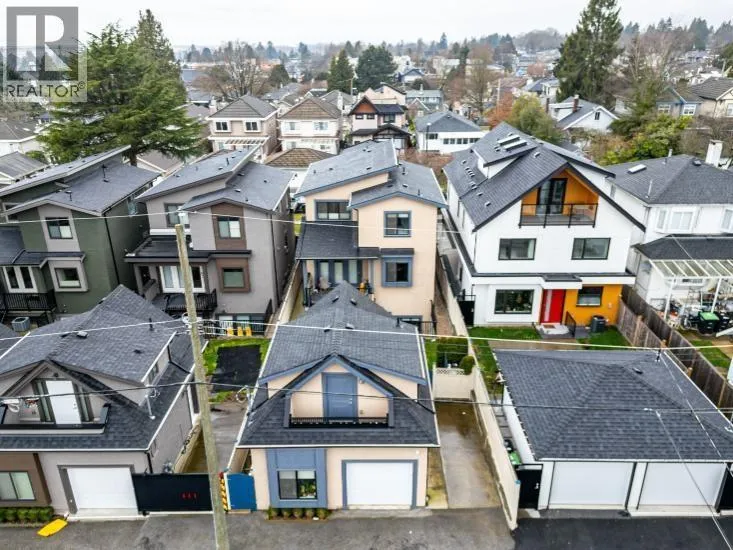 This luxurious Westside home offers modern living and convenience with 10' ceilings, an open-concept layout, and a gourmet chef´s kitchen with high-end appliances and ample storage. Expansive accordion doors open to a rear deck, perfect for entertaining. Upstairs features three spacious ensuite bedrooms, including a spa-inspired primary ensuite with a steam shawer. The basement includes a recreation room, full bath, and laundry, plus a legal two-bedroom suite. A one-bedroom laneway house adds even more rental potential. Designed for efficiency and comfort, the home includes air conditioning, HRV, a high-efficiency furnace, and hot water tank, plus the remainder of the new home warranty for peace of mind. Parking includes a single-car garage and an open space. Located near David Lloyd George Elementary, Churchill Secondary, Marpole´s Shopping District, transit, parks, top private schools, UBC, YVR, and Richmond Malls, this home is a perfect blend of luxury and location. (id:27476)
