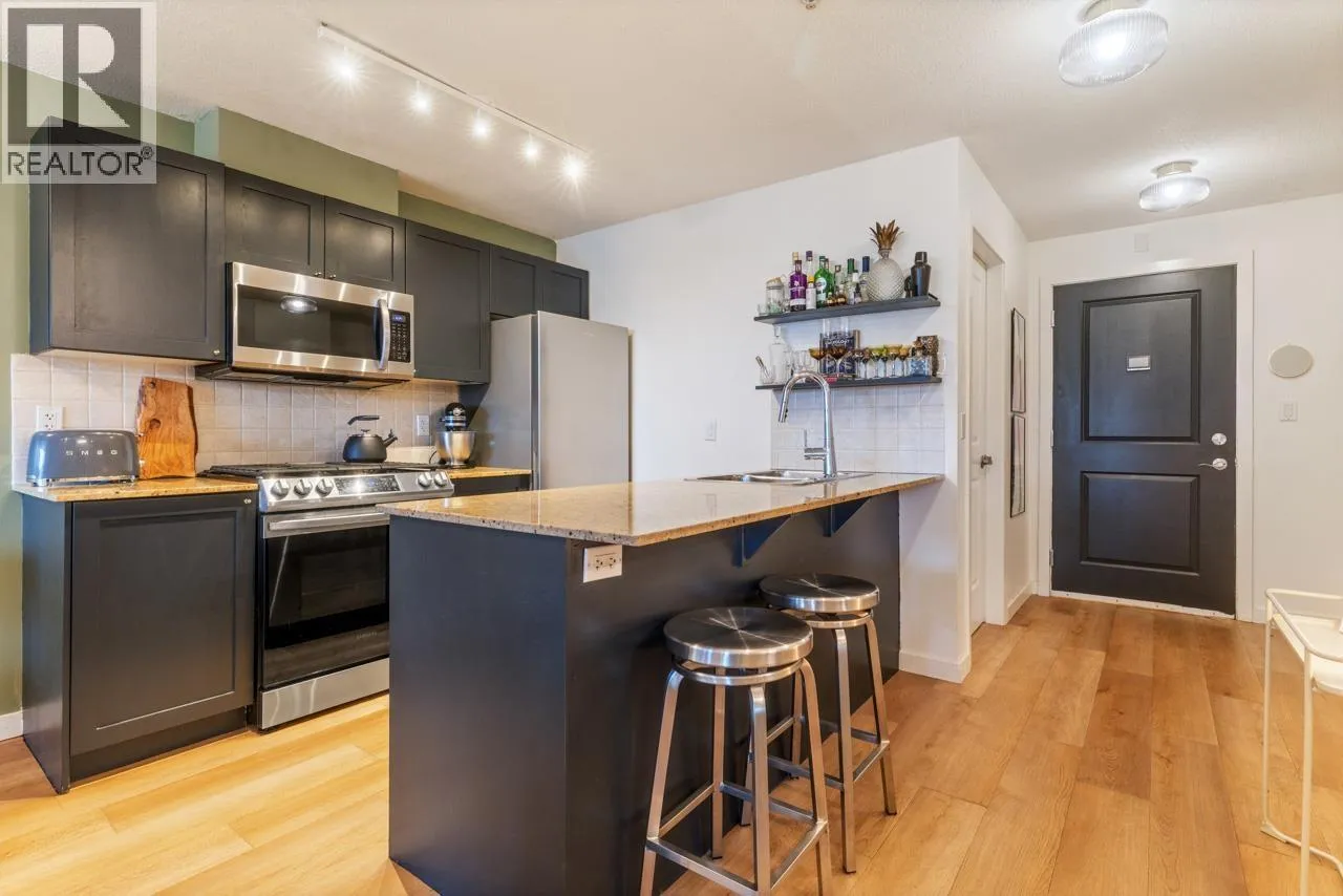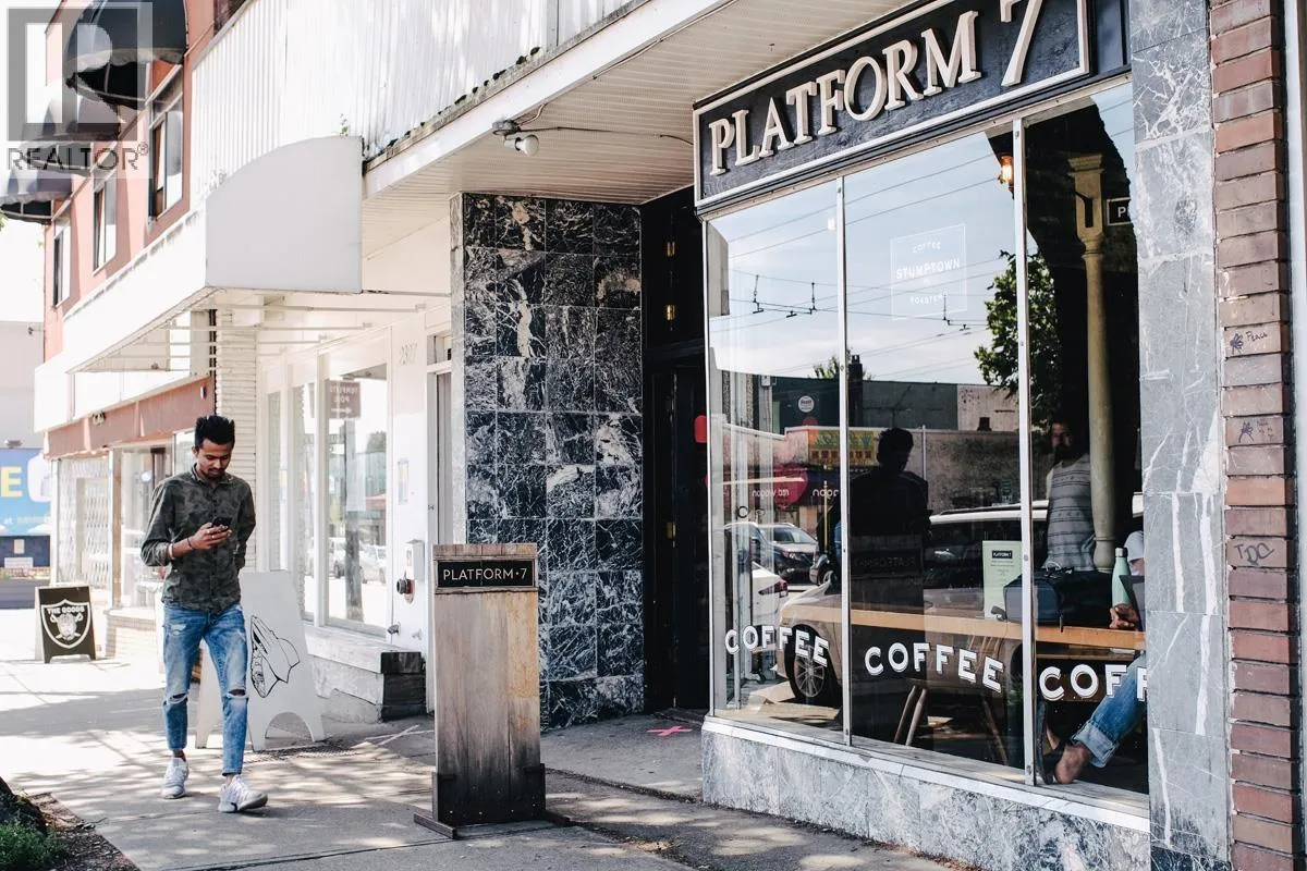 This stylish & functional concrete apartment with incredible storage is nestled peacefully above the treetops, in one of East Van's most vibrant locations! The tastefully upgraded, south-facing layout shines bright with an open plan, glass walls, private balcony & views to the vintage homes surrounded in lush trees beyond. The spacious entry foyer with flex room & charming solarium/office are appreciated by all. Chef's kitchen with granite counters, formal dining space & vibey living room are perfect for parties & relaxing alike. The gorgeous wide-plank floors, designer lighting, newer appliances, in-suite laundry & ensuite bath compliment this unique & luxurious space. +2 MASSIVE STORAGE LOCKERS! Great building in prime, booming location near shopping, parks, transit, beach & PNE events! (id:27476)