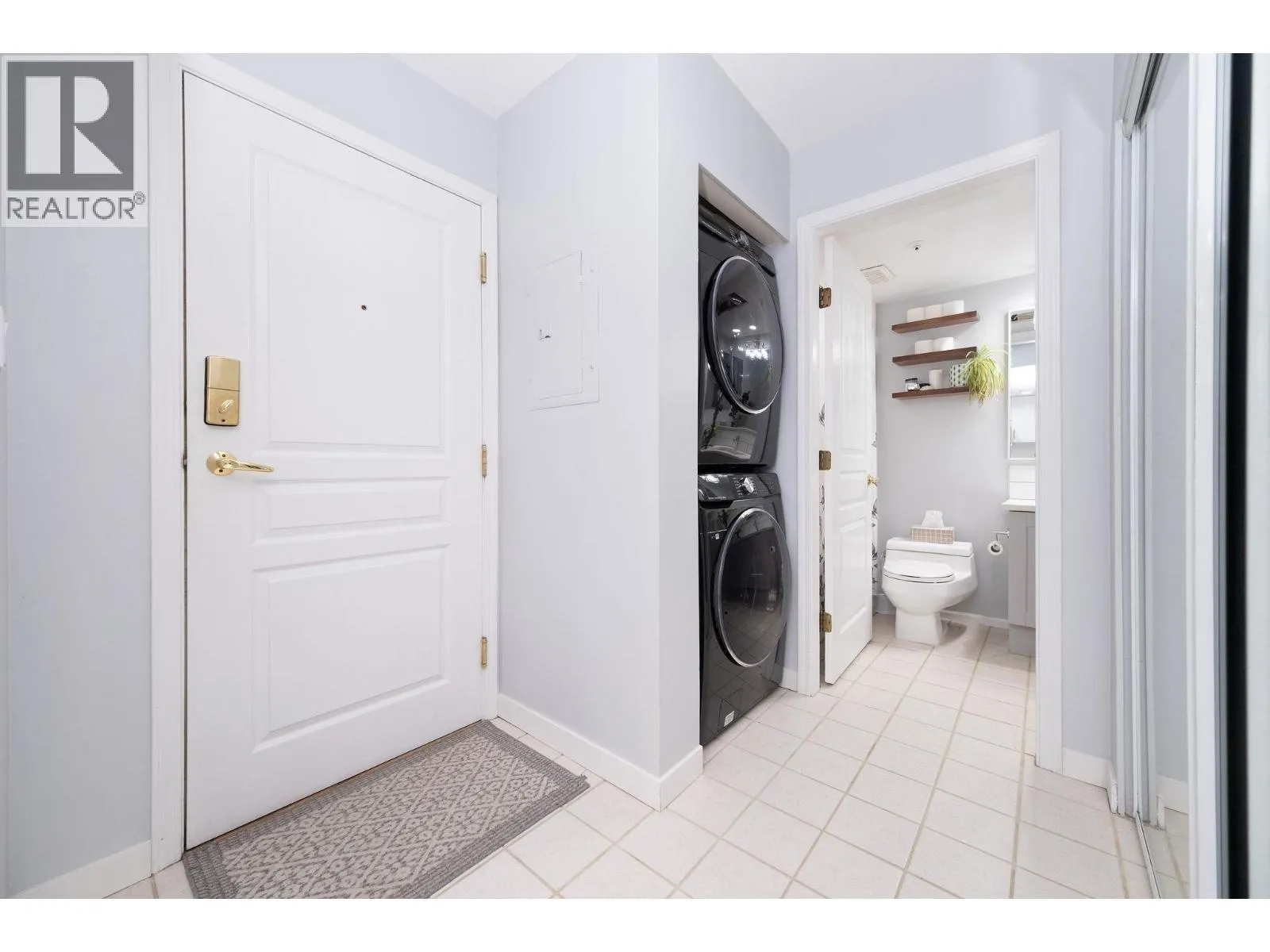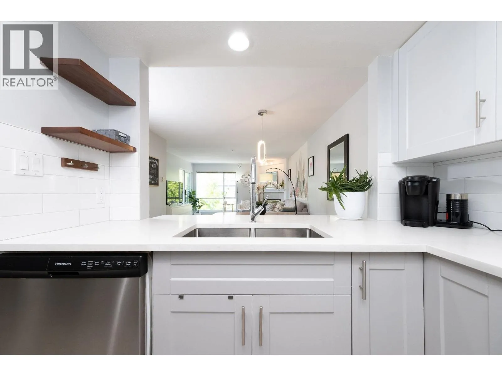 Located on the QUIET side of the complex, Sixteen Willows! North facing into the tree-lined courtyard is this very spacious updated move-in ready suite. Renovated open kitchen with stainless steel appliances is great for cooking & conversation. Relax on the peaceful balcony to watch the sunset sky. Massive bedroom allows for a king-sized bed + work space. New flooring/carpet. Heated bathroom floor is a bonus on colder days! Secure parking & large locker included. Amazing Walk Score 95 & Bike Score 99! Have your Agent call in advance for a private showing. (id:27476)