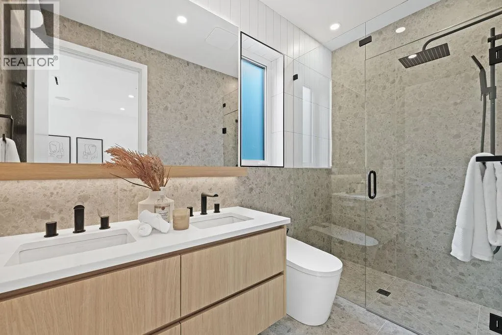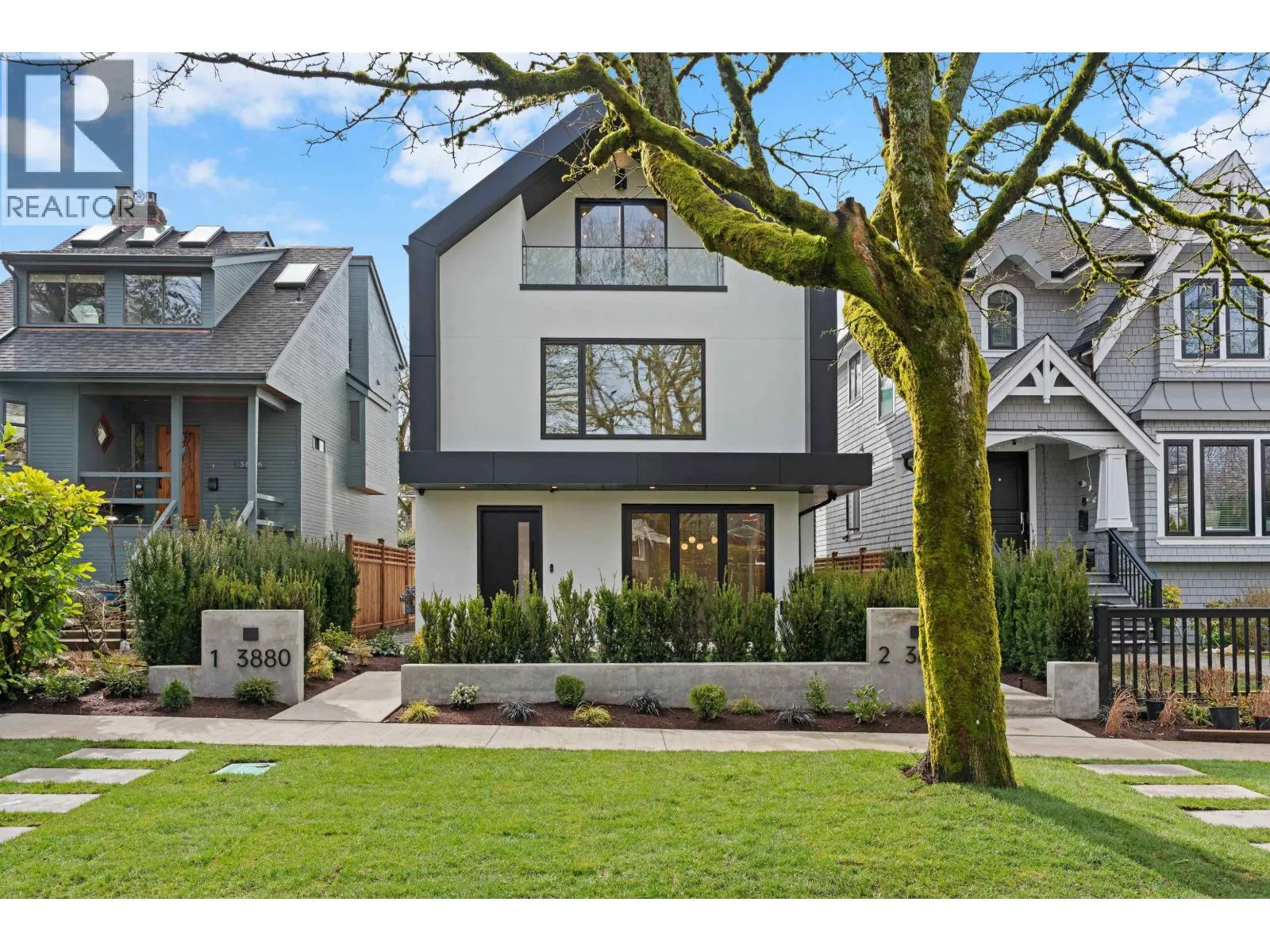 Welcome to this exquisite front 1/2 duplex in the heart of Dunbar, built by renowned Westside builder Mann Bros Construction. Offering almost 1600sq.ft of living space across 3 levels, this home is a masterpiece of design & craftsmanship with no detail spared & only the best materials used. The main floor boasts an expansive, open-concept layout that seamlessly connects the living, dining & kitchen areas. Large eclipse doors open to a lovely front yard. Upstairs, you'll find 3 generously sized bdrms, each with its own luxurious ensuite & custom cabinetry. The top floor is a versatile space, ideal as a bdrm, home office or rec room & it includes its own private balcony. Additional features include a one car garage, in-floor radiant heat , A/C & a security system. (id:27476)