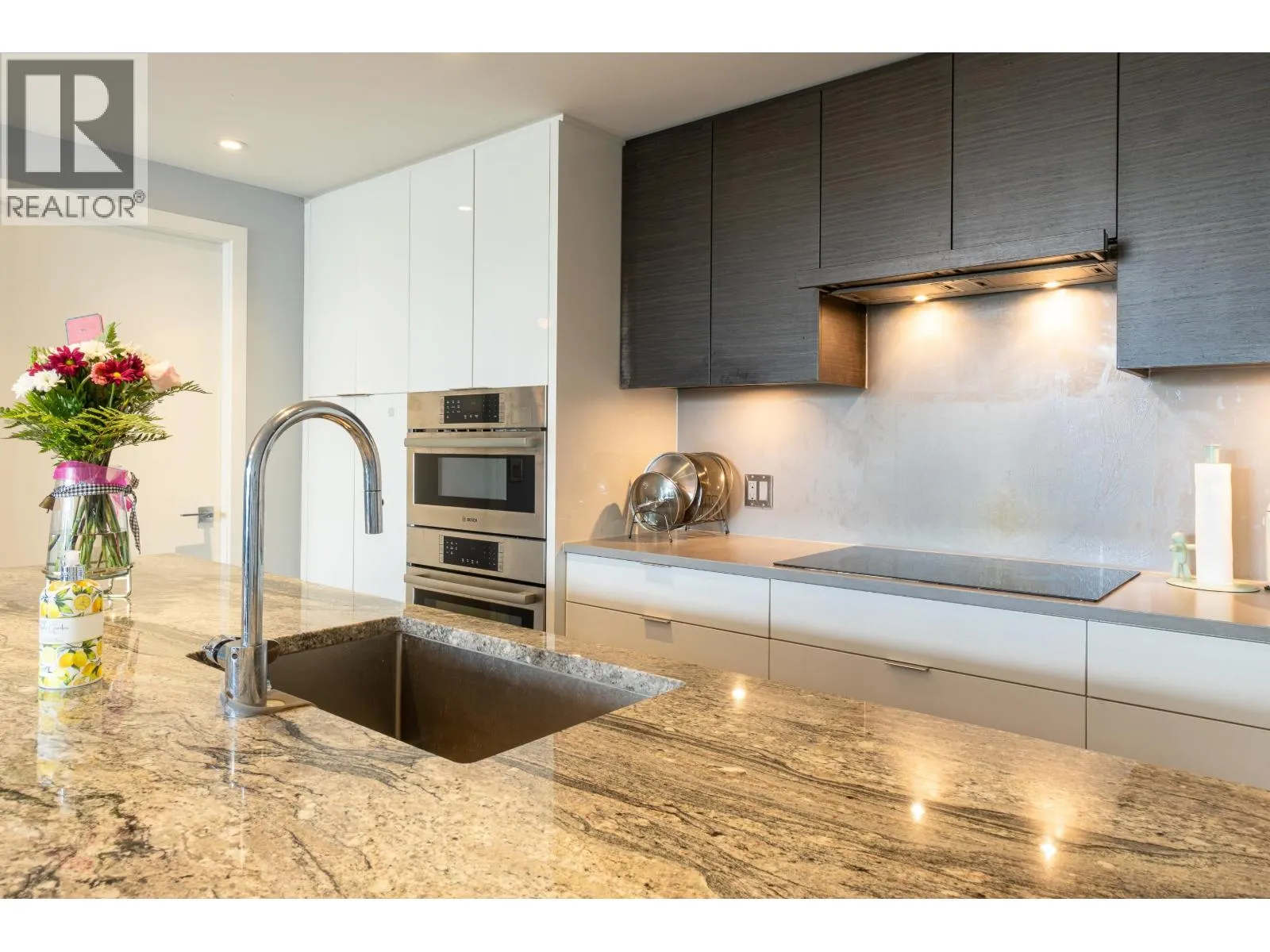 Navio South Tower developed by award winning Concert Properties! Enjoy unobstructed water views of False Creek, mountains, downtown overlooking an expansive 6-acre park. This 1,200 sqft. unit features 2 spacious bedrooms w/ensuites, large living area with sliding doors that open up to a 200+ sqft covered patio for indoor/outdoor living. Beautiful large quartz slab waterfall island, engineer hardwood flooring, spa-like bath, air-conditioning. This building boasts amenities such as a fitness centre, full-time concierge, rooftop garden & lounge. Steps from the vibrant Olympic Village neighbourhood,seawall,shops, restaurants at your doorstep.Open House: Sat&Sun, Oct 11&12@2-4pm. (id:27476)
