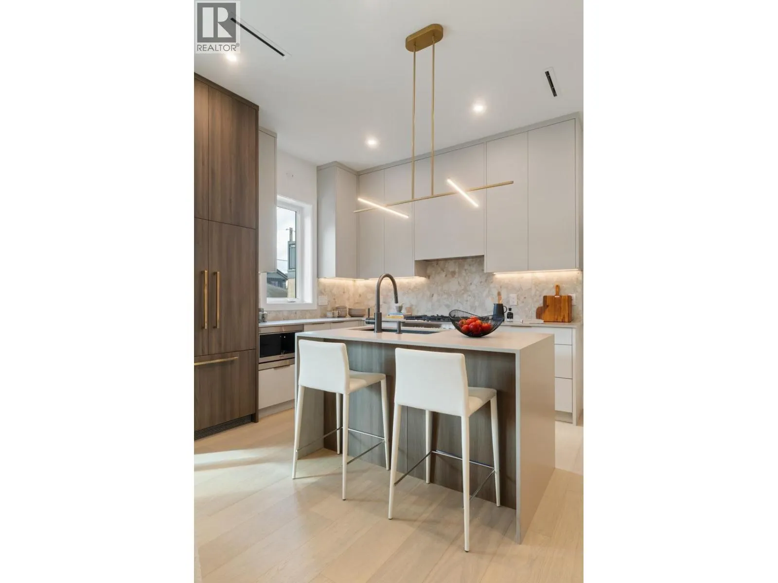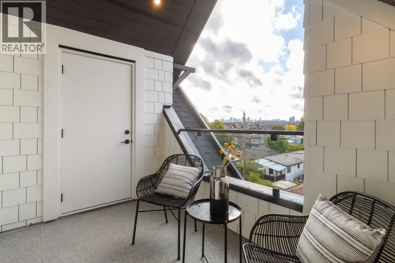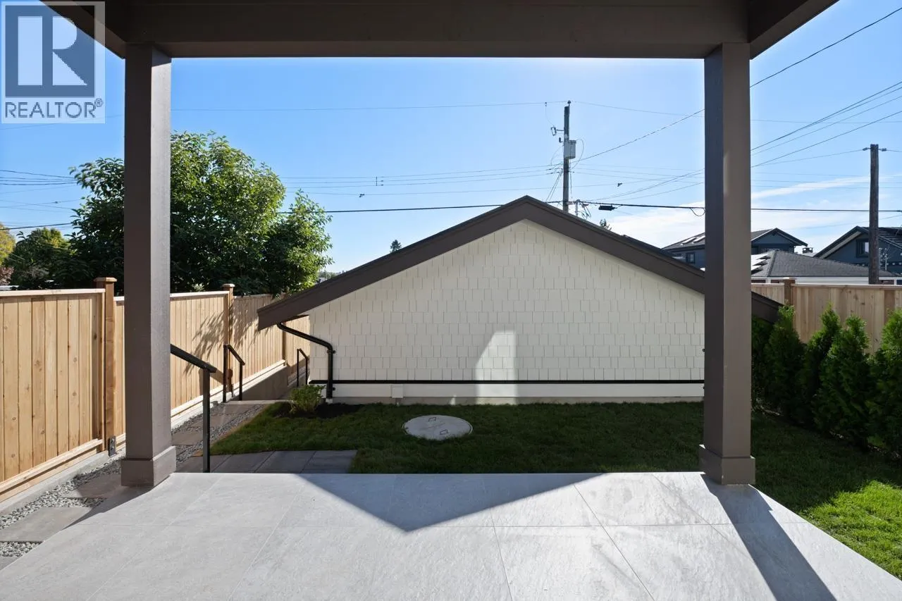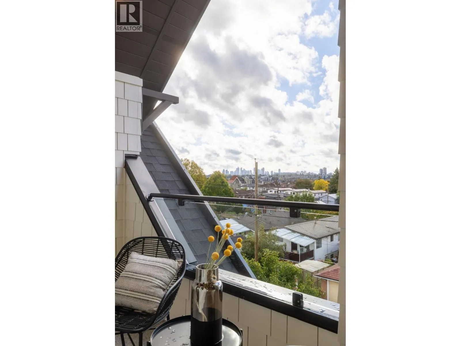 This exceptionally well-built back half duplex offers combines thoughtful design with stunning outdoor living. The bright & open main floor boasts 10' ceilings with spacious living area, dedicated dining space, loads of custom millwork and extends through Eclipse doors to a private South facing backyard with large covered patio. The gourmet kitchen has integrated Fisher & Paykel appliances, gas range & large island with breakfast bar, perfect for entertaining. Upstairs has 3 bedrooms & 2 bathrooms including a primary with ensuite. The top floor is a versatile retreat with spa-like ensuite, room for reading nook or office + a covered balcony with sweeping city views. Centrally located on a nice East Van street, this home offers the ultimate blend of style, function & community. (id:27476)