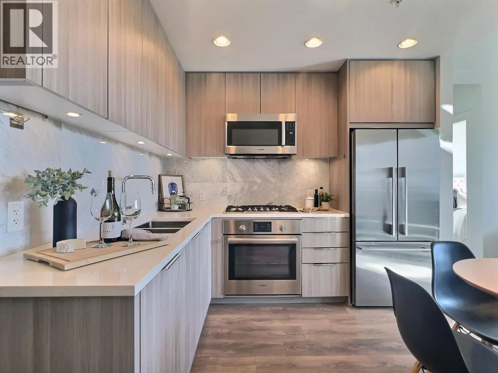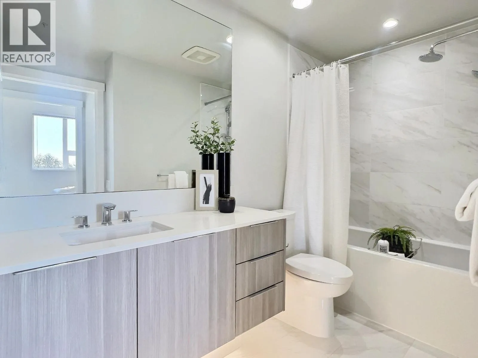 Rarely available 1 bed starter home with unobstructed water views for a first time homebuyer or investor at R+R by Polygon in the desirable River District community. This is an exciting urban lifestyle set in a quiet enclave of South Vancouver with walkable/bikable amenities minutes away! This home features a highly functional open floor plan with 9 ft ceilings, well appointed kitchen, walk-in-closet is ready for you. Pet friendly (2 dogs/cats or 1 of each), lots of visitor parking, comes with 1 parking & locker, dog wash station, outdoor party area and playground, full gym, heat & hot water are included in your strata fee and balance of the 2-5-10 warranty ensures peace of mind! On the quiet side with no commercial spaces downstairs but minutes to waterfront trail/bike path, lunch at Romer's, Shoppers Drug Mart, Save-On-Foods, Starbucks, Banks, Dining + Retail & more! BE PART OF THIS DEVELOPING MASTERPLAN COMMUNITY! SAT NOV 15th 12-2pm (id:27476)