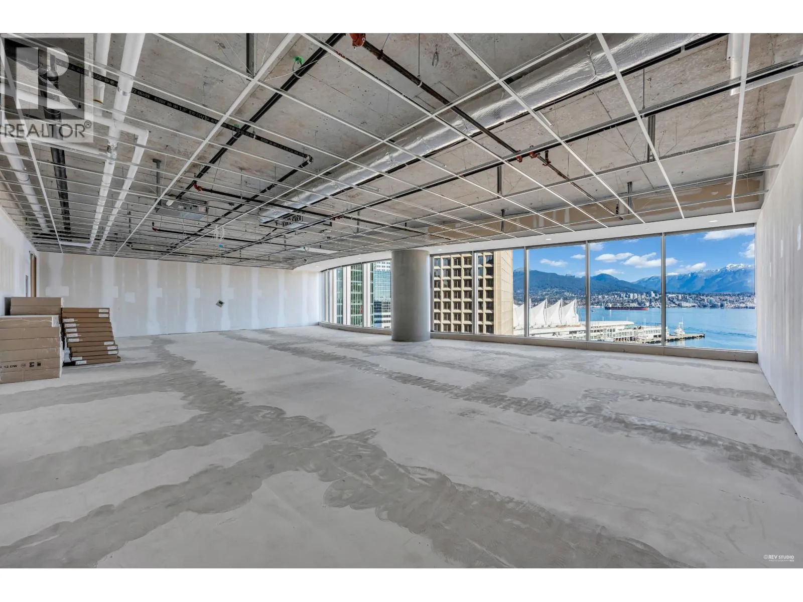 Brand new office unit at Bosa Waterfront Centre is located in the heart of Vancouver's Central Business District. Situated with an unobstructed northern exposure, the unit offers panoramic views of the North Shore mountains and the waterfront, providing a breathtaking vista that leaves nothing to the imagination. Approx. 1,637 SF leasable office area features exposed concrete floors, open ceilings, paint ready drywall, perforated roller blinds on exterior glazing and washroom facilities on each floor. The top amenities include: 8 smart elevators & 2 dedicated parking elevators; fully equipped bookable boardrooms for 12 or 20 people and social lounge, dedicated loading dock; wellness club with yoga room, aerobic exercise equipment & change rooms and showers; secured bike storage with locker; full time concierge and much more. Now is the moment to bring your dream office to life! (id:27476)