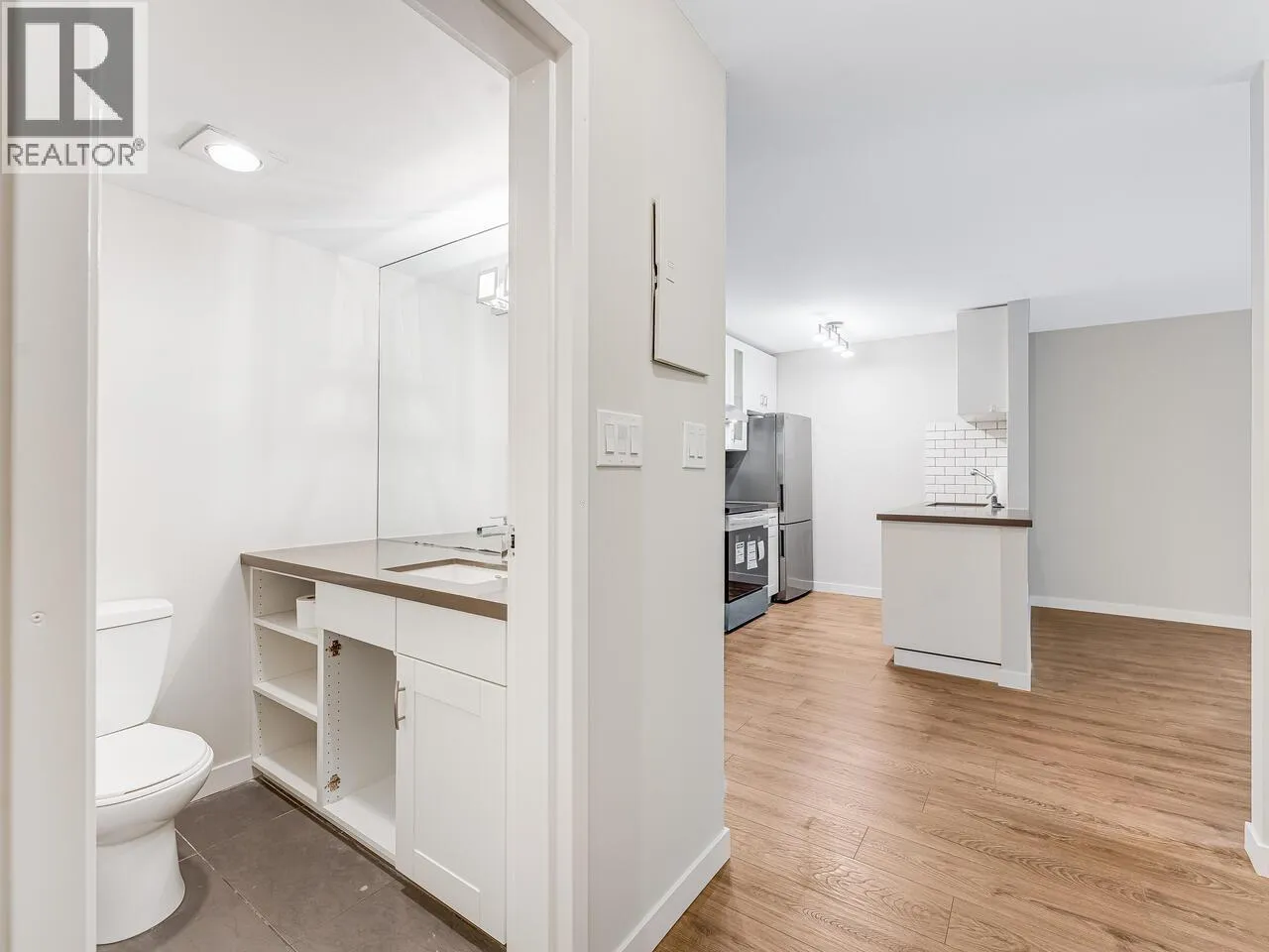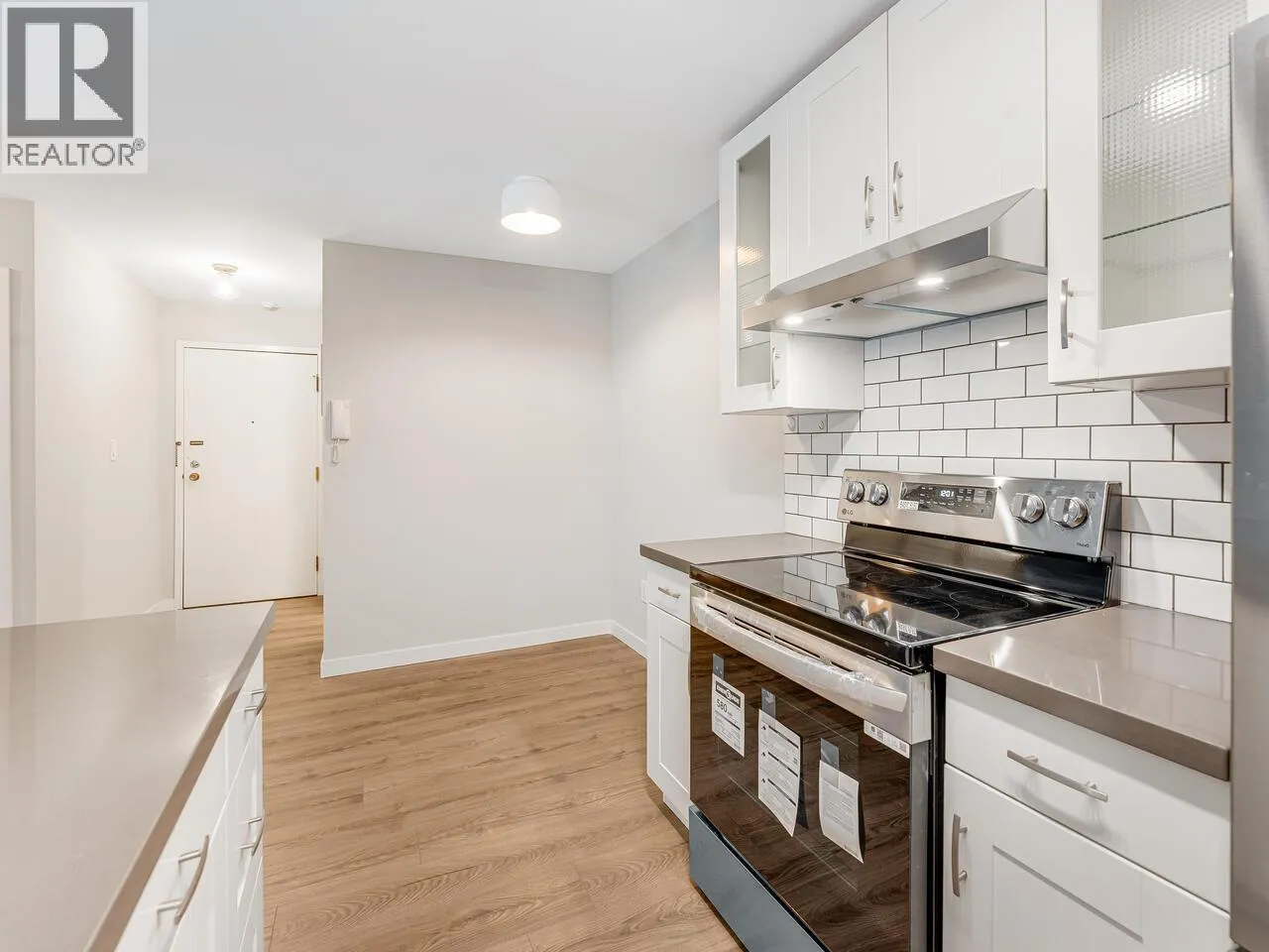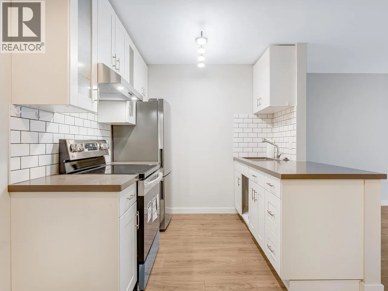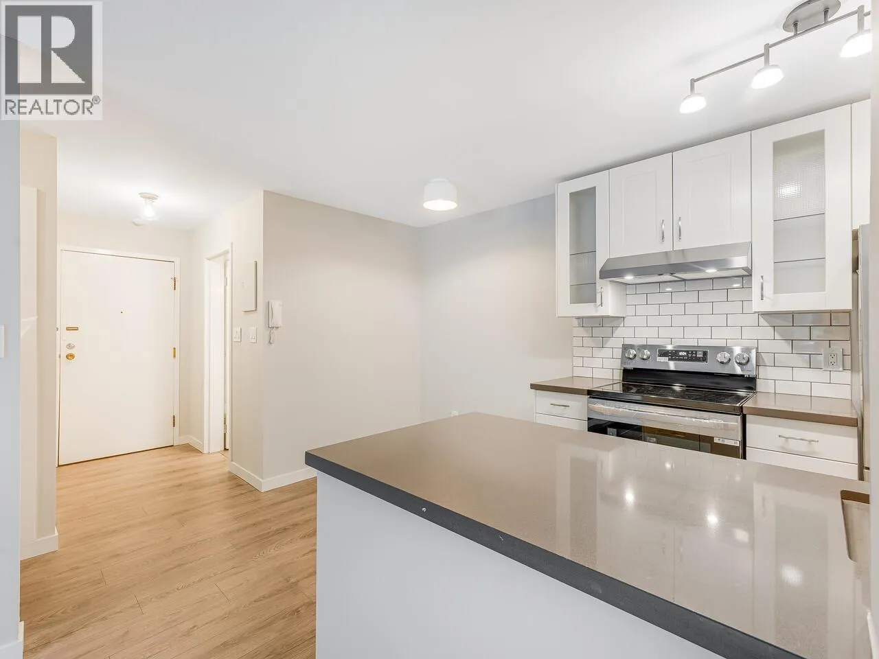 Fantastic LOCATION! This fully updated 1 bed/1 bath 620 sf home is move-in ready. Renovations include new laminate floors, retiled bathroom floors, fresh paint, and a beautifully redone kitchen with new appliances, backsplash, lighting, and hood fan. Maintenance fees cover heat & hot water. Comes with 1 oversized parking stall, a large storage locker, and access to shared laundry. Perfect for first-time Buyers. By Appointment. (id:27476)