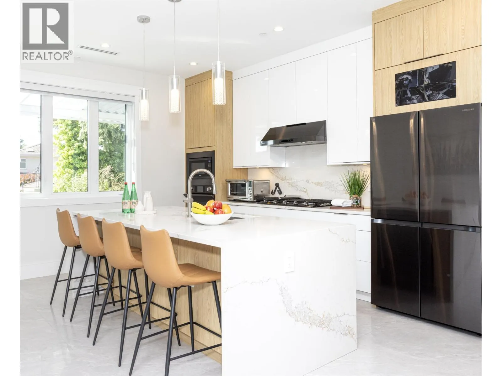 Exquisite 1/2 duplex situated in the desirable South Granville offering spacious and functional layout on all floors. Chef´s kitchen featuring a beautiful waterfall island and high quality appliances. Upstairs boasts 3 spacious bedrooms with ensuites! A/C, HRV, radiant in floor heating, tile/engineered hardwood flooring throughout main floors. Central location and easy commute to everything. Walk to community centre, parks, schools and more! Bonus: a 2 bed legal suite mortgage helper or for extended family. Book your private showing today! Video Link: https://youtu.be/MtzAUPQd1w8?si=qMR_4g0N8jPpvBUJ. Open House Oct 11 & 12 2-4pm (id:27476)