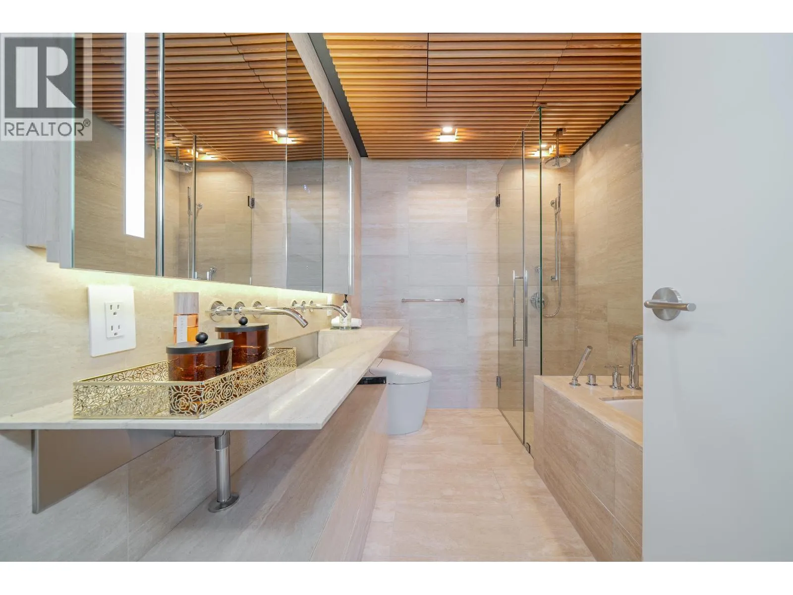 Welcome to Alberni by Kengo Kuma, an architectural icon in downtown Vancouver. This brand-new 2-bdrms + 2 bathrooms residence offers 1,657 sqft of total living space. Enjoy breathtaking, unobstructed views of Coal Harbour, Stanley Park, and the city skyline through full-height windows and 10-foot ceilings. Thoughtfully designed with curved wood walls, integrated Miele appliances, travertine spa bathrooms, and central A/C, this home blends natural elegance with modern luxury. Includes 2 side-by-side parking stalls, a storage locker, and wine storage. Residents enjoy world-class amenities: 24-hour concierge, Japanese moss garden, wine tasting room, fitness centre, 25m indoor pool, and private art gallery. (id:27476)