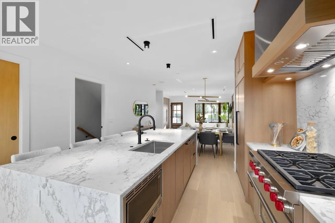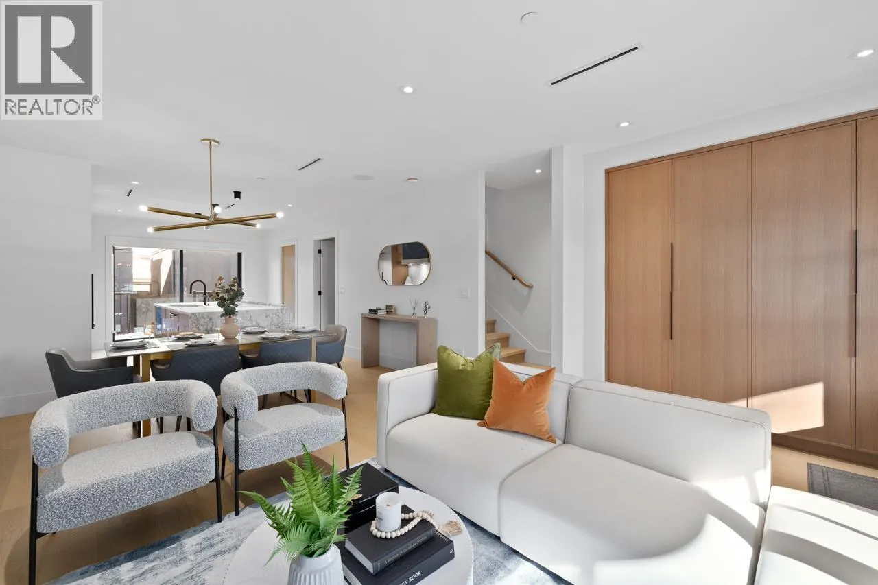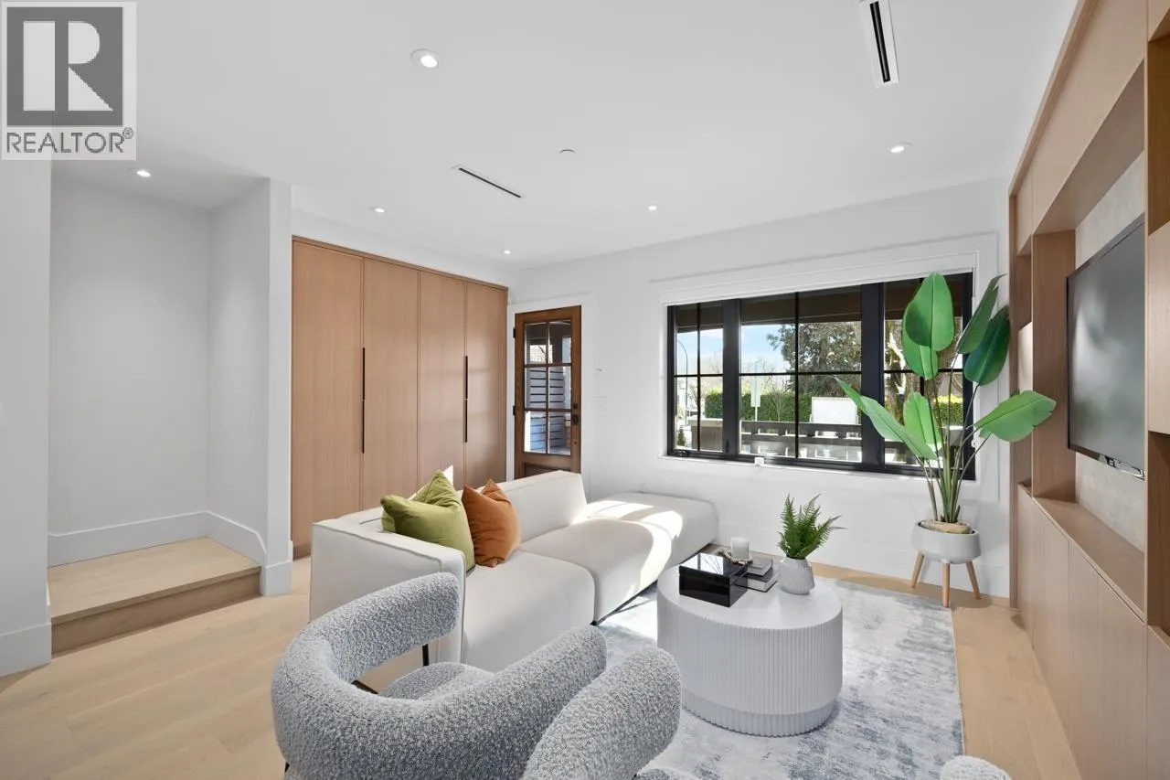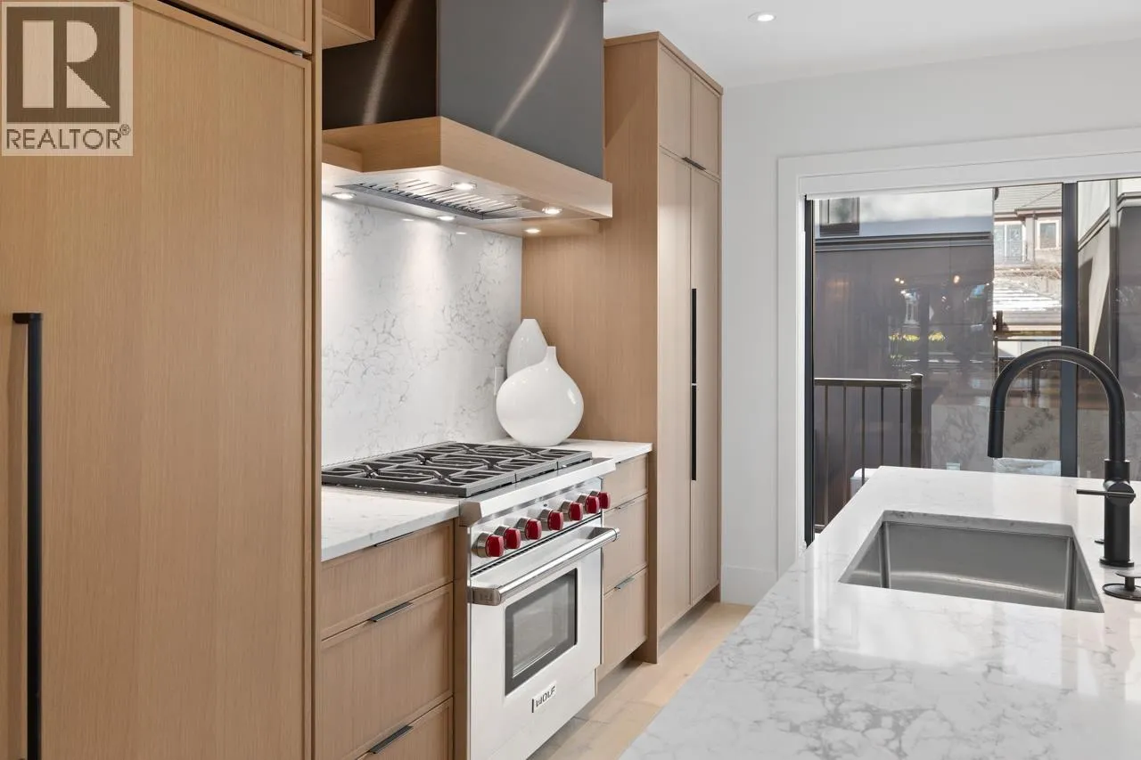 "The Heights" by Crossmark Projects offers this 3-bed+Den, 3.5-bath residence spanning 3 thoughtfully designed levels. The main floor boasts a spacious living room, a dining area perfect for family gatherings, and a gourmet kitchen with a 4'x10' island, custom oak cabinetry, integrated Sub-Zero fridge, Wolf 6-burner stove, and a large pantry. The upper level is a family retreat with 3 beds+ a primary suite with hotel-inspired ensuite. The versatile lower level includes a cozy theater/rec room, bedroom/office, and flexible gym space and exterior entry. Enjoy large front and back yards, parking, ample storage, and unbeatable walkability to all of Kerrisdale's amenities. Open House Nov 15th/16th Sat/Sun 2-4pm (id:27476)