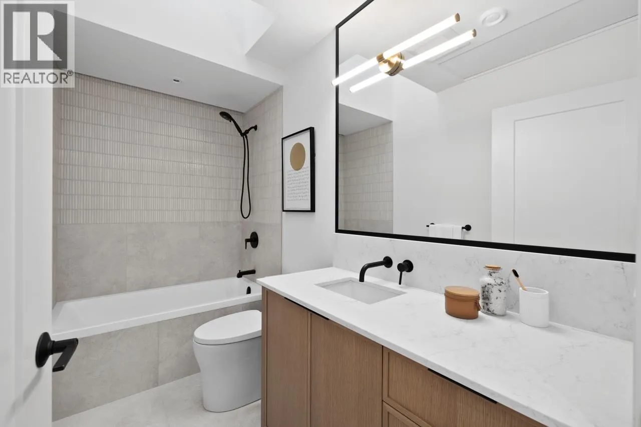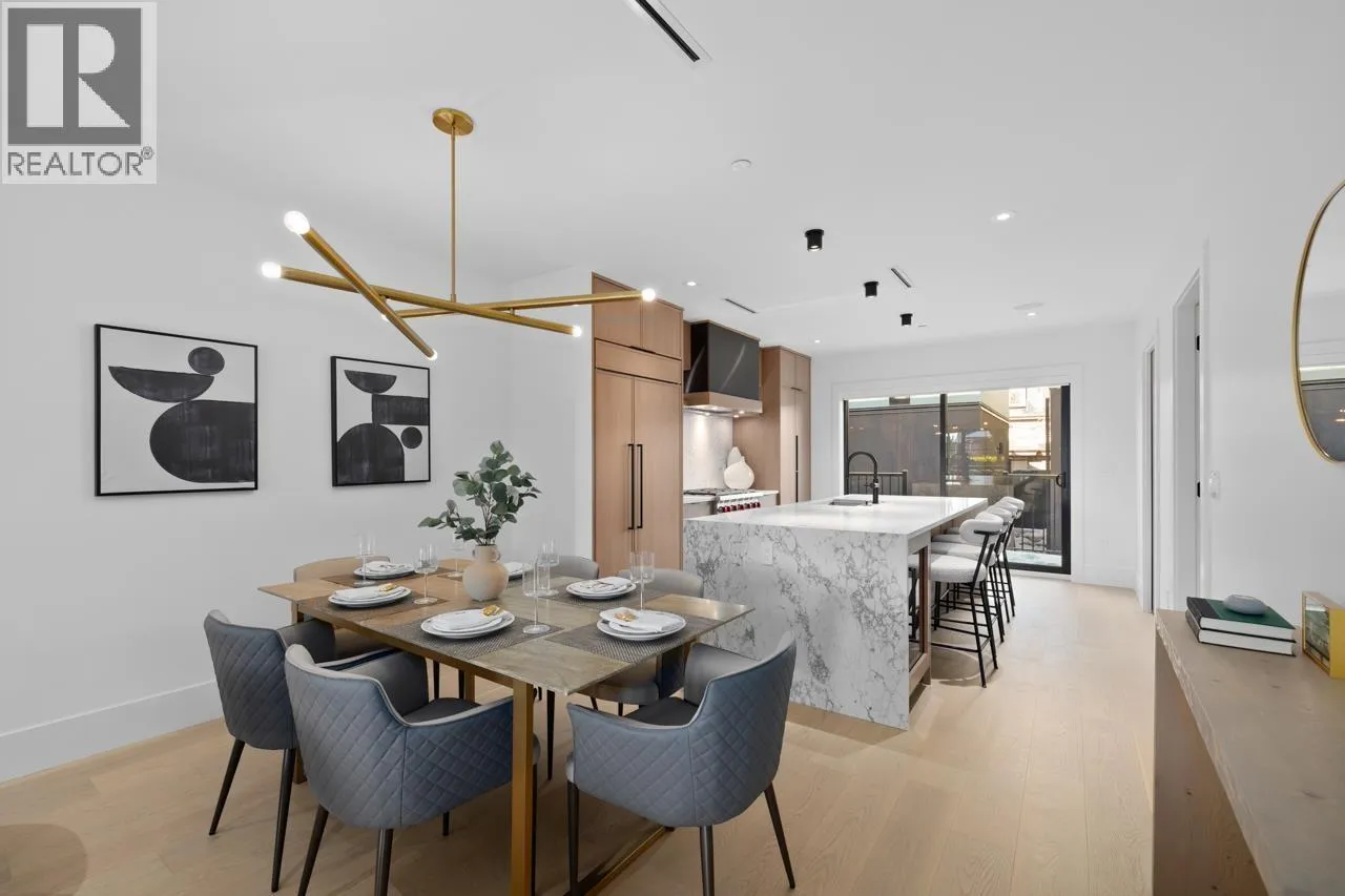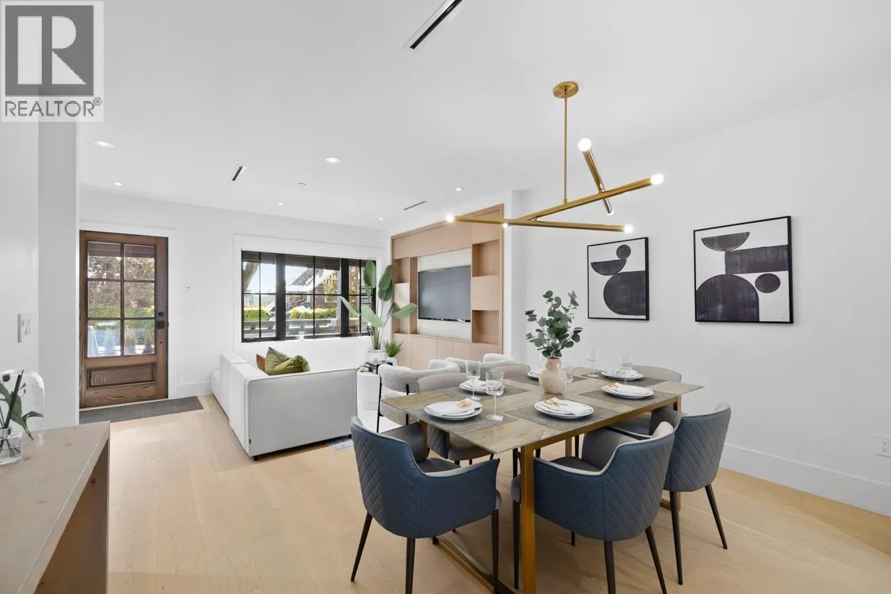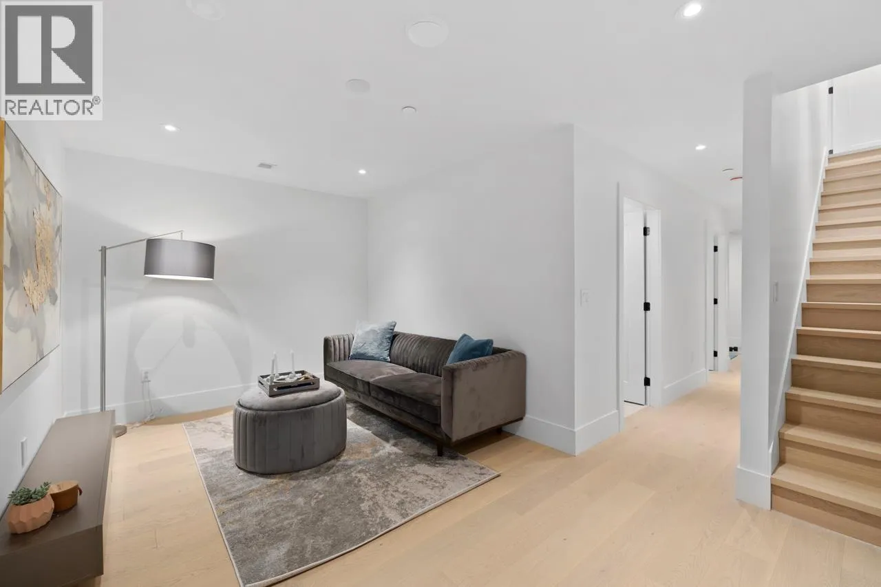 "The Heights" by Crossmark Projects offers this 3-bed+Den, 3.5-bath residence spanning 3 thoughtfully designed levels. The main floor boasts a spacious living room, a dining area perfect for family gatherings, and a gourmet kitchen with a 4'x10' island, custom oak cabinetry, integrated Sub-Zero fridge, Wolf 6-burner stove, and a large pantry. The upper level is a family retreat with 3 beds+ a primary suite with hotel-inspired ensuite. The versatile lower level includes a cozy theater/rec room, bedroom/office, and flexible gym space and exterior entry. Enjoy large front and back yards, parking, ample storage, and unbeatable walkability to all of Kerrisdale's amenities. Open House Nov 15th/16th Sat/Sun 2-4pm (id:27476)